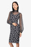 Dolce & Gabbana Black White Silk Puff Sleeve Floral Printed Midi Dress Size 36