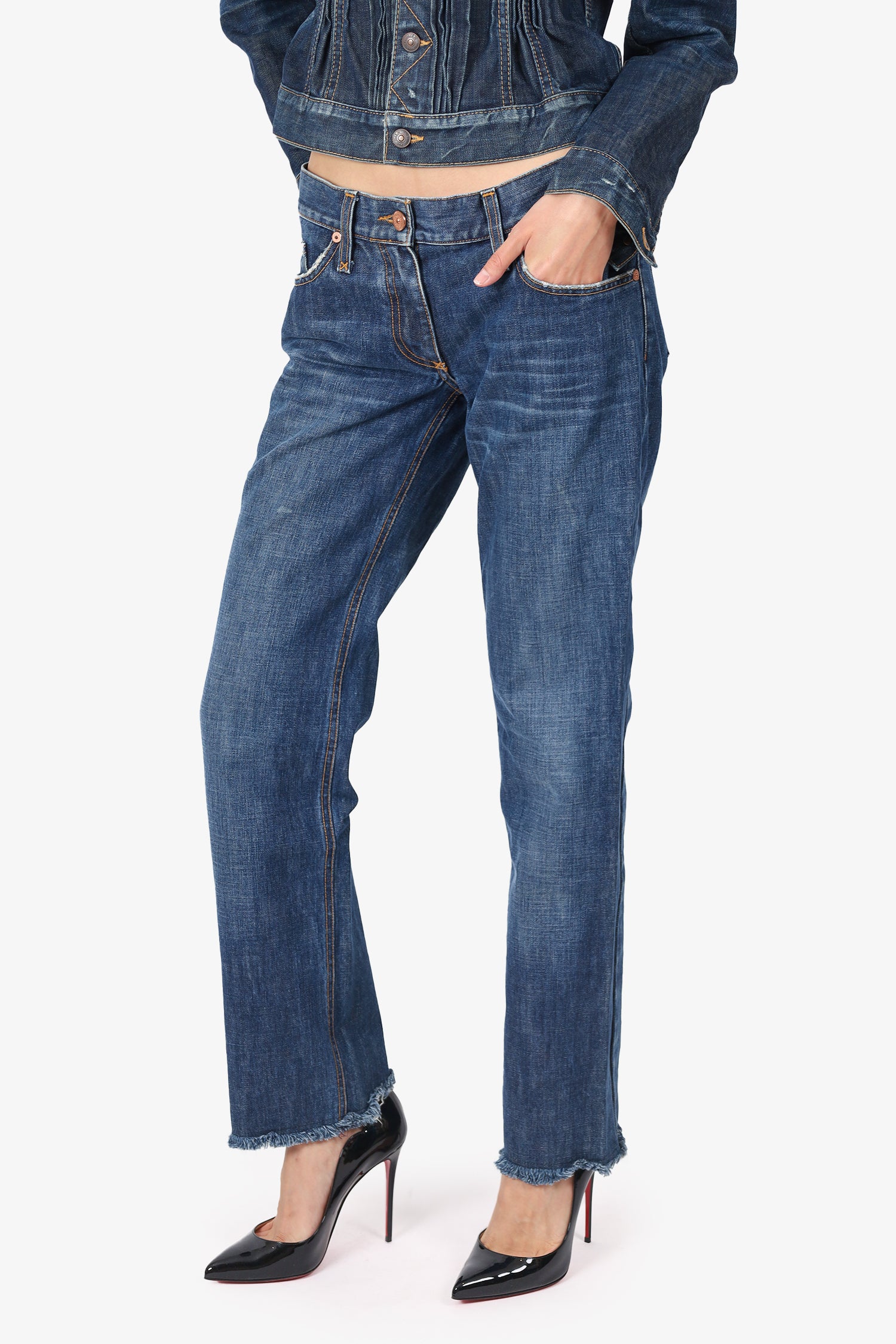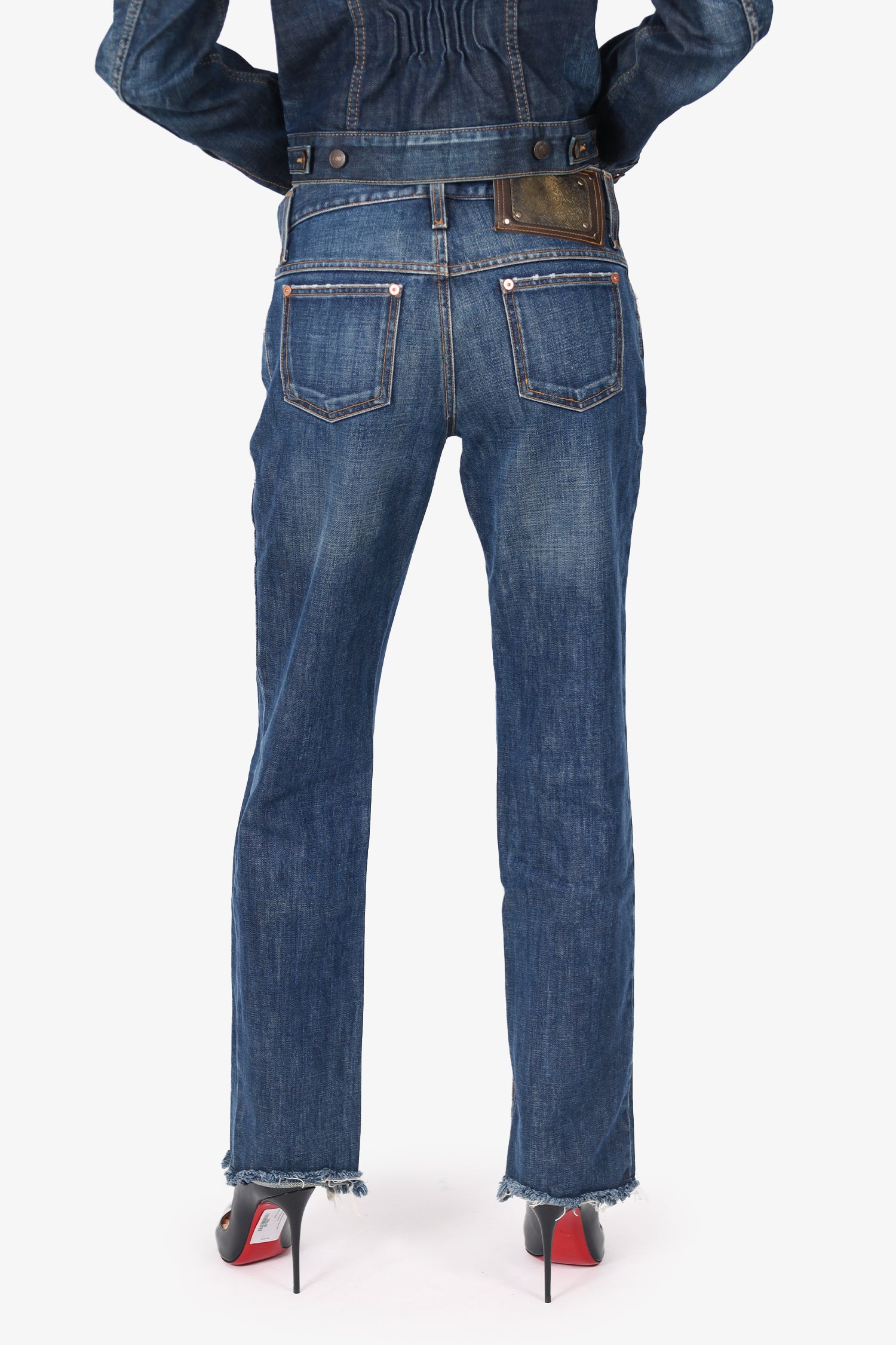 Dolce & Gabbana Blue Denim Distressed Pony Hair Pocket Jeans Size 40