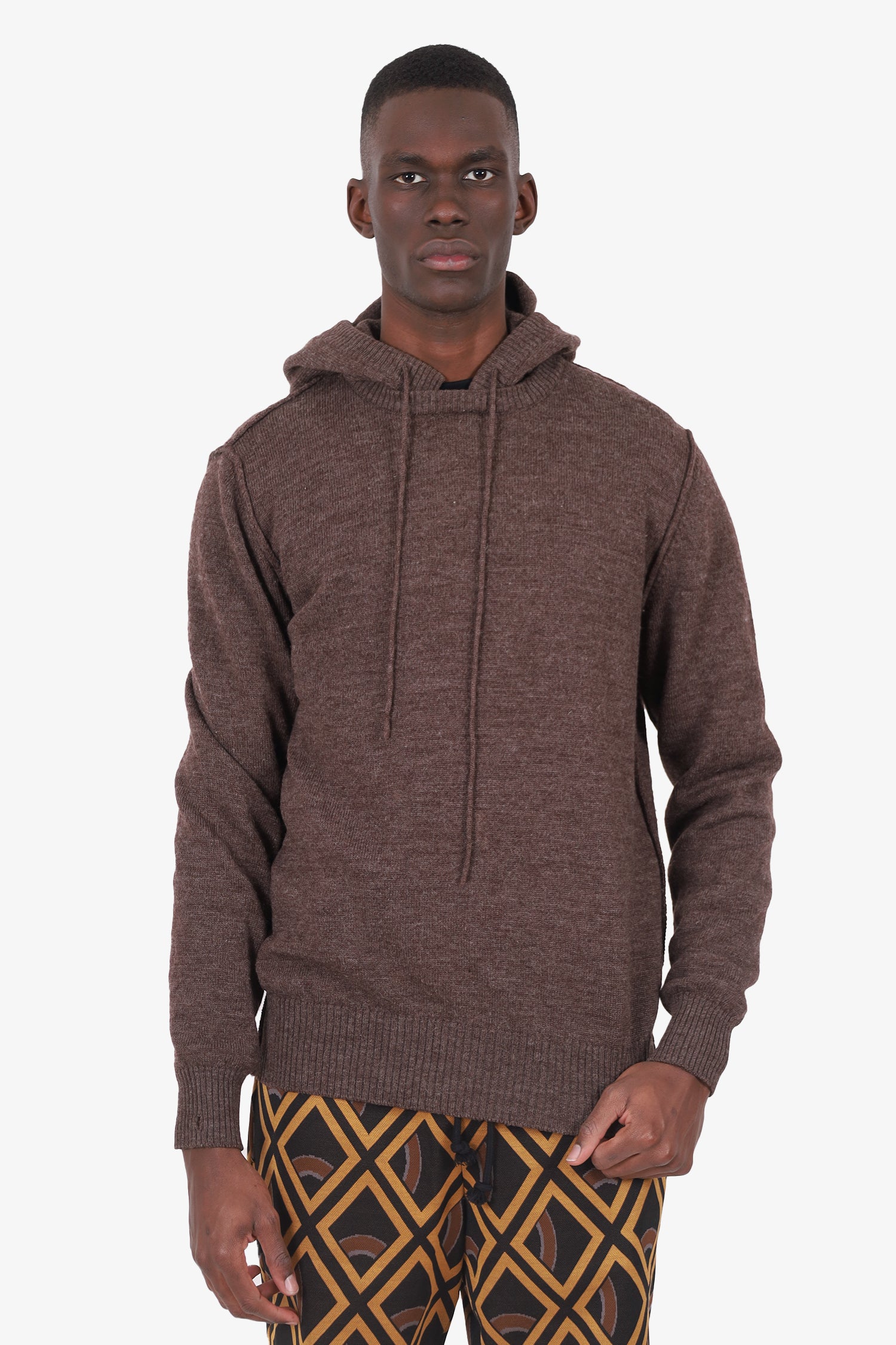 Refresh availabilityDolce & Gabbana Brown Wool Hooded Knit Sweater. Pull-on. Hooded neckline with drawstring closure. Tonal stitching.