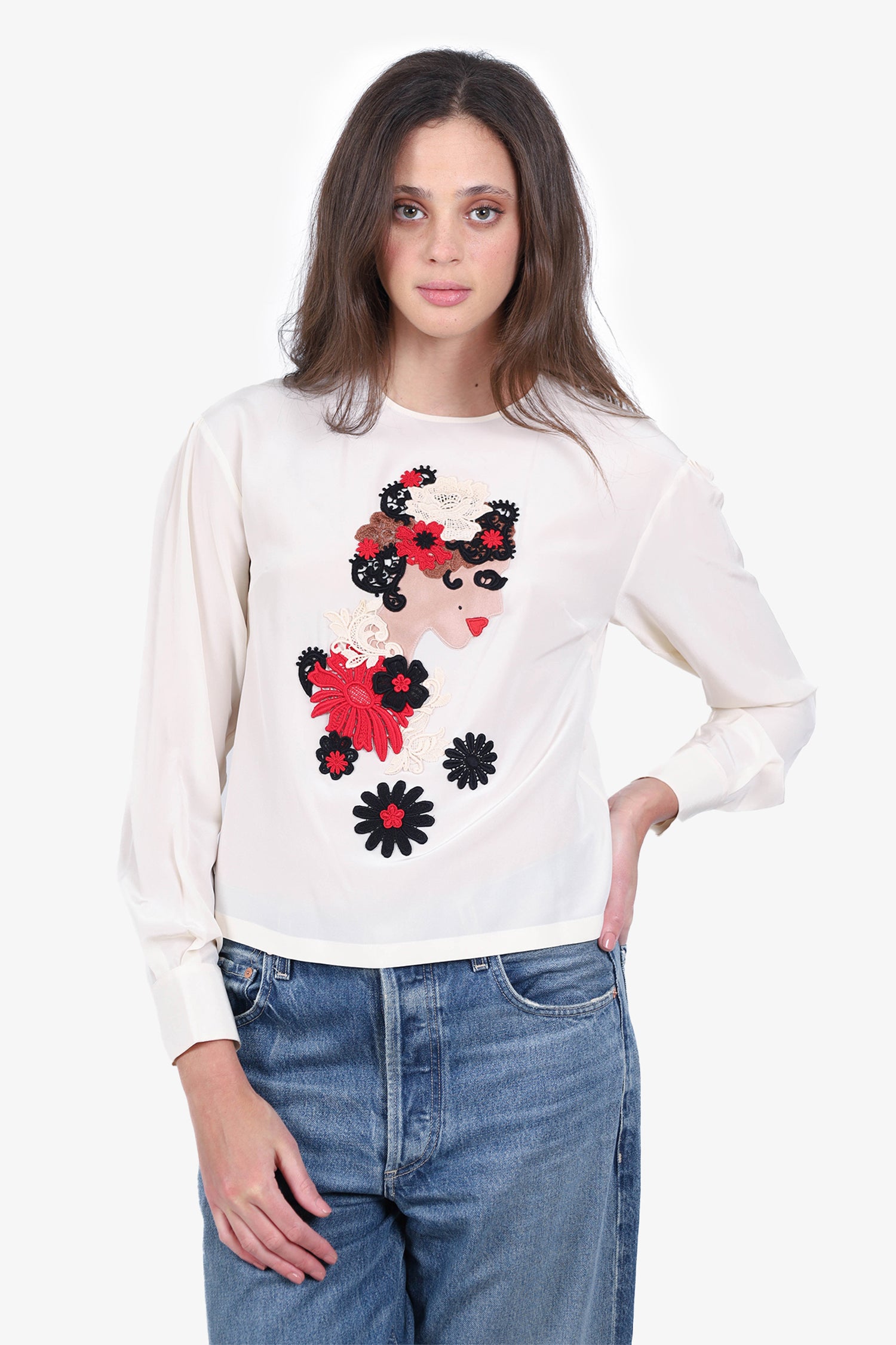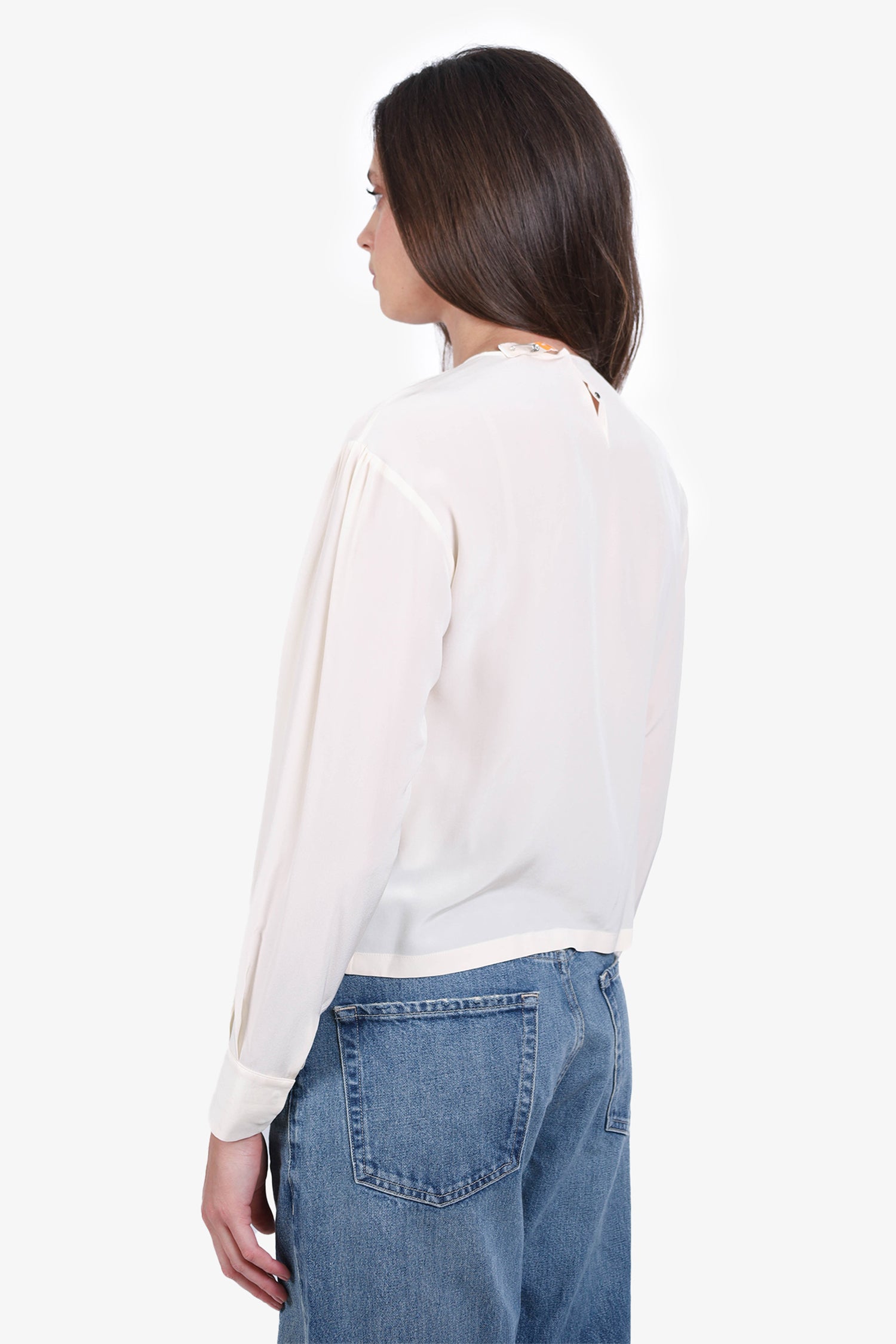 Dolce & Gabbana Cream Silk Embroidered Long-Sleeve Blouse Size 42