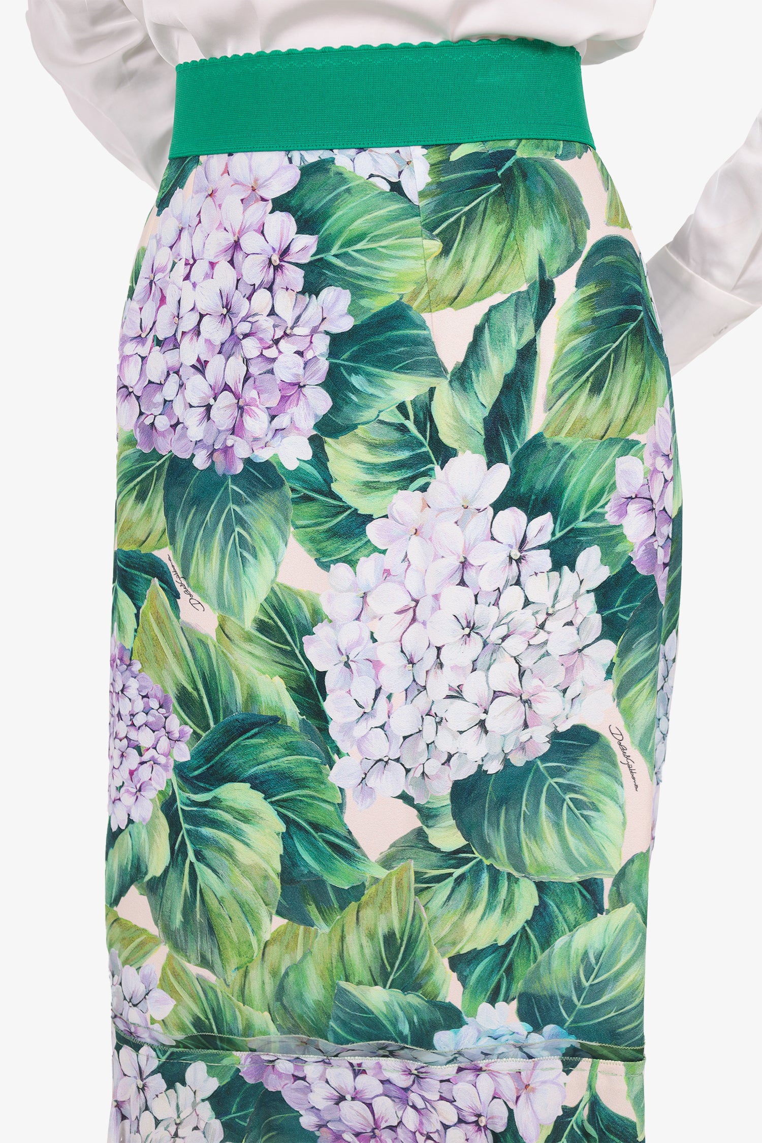 Refresh availabilityDolce & Gabbana Green Floral Print Midi Skirt. Pull-on. Elasticated waistband with rear zip and hook closures. Partial-lined interior. Silver-tone hardware. Tonal stitching.