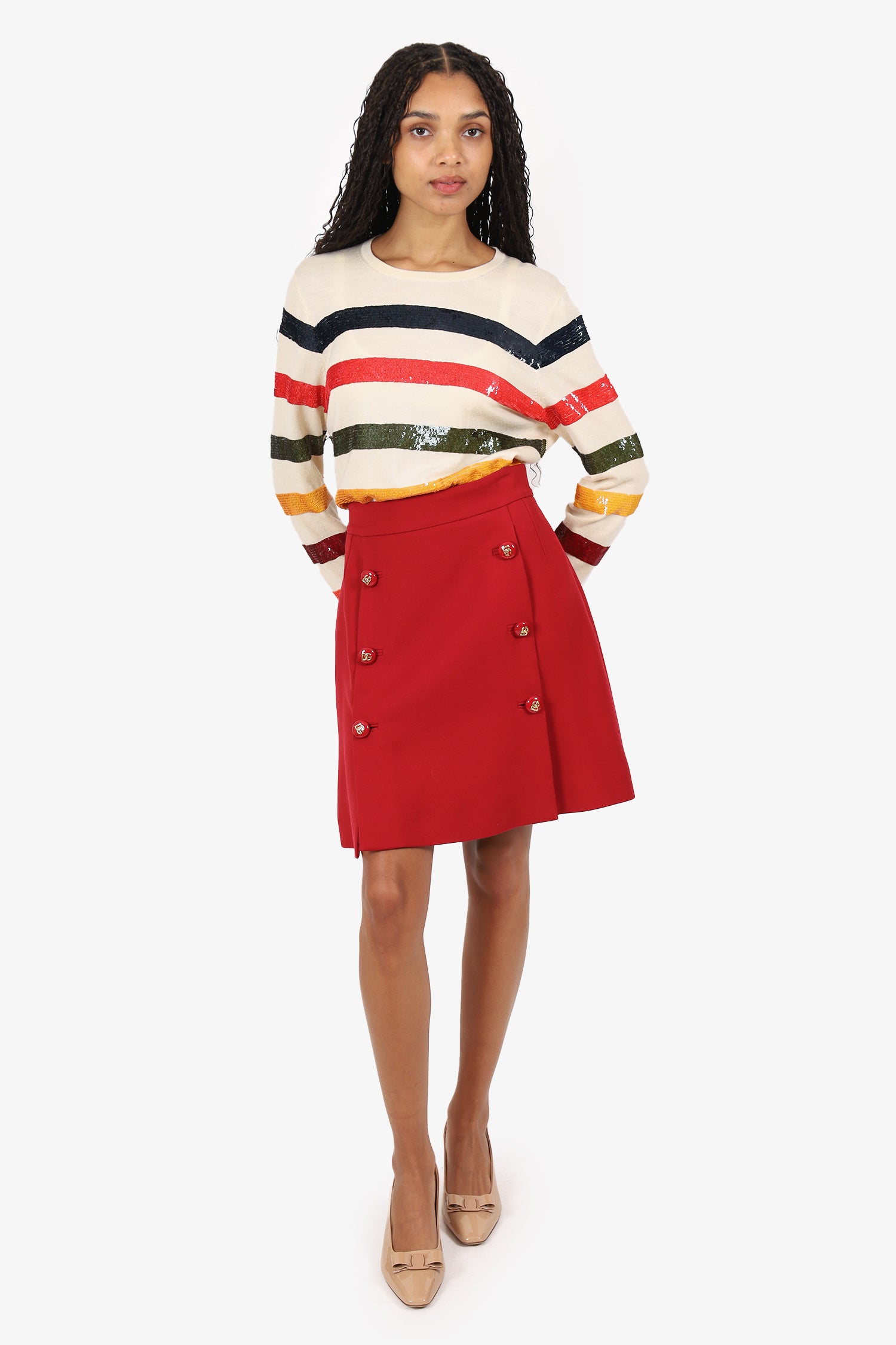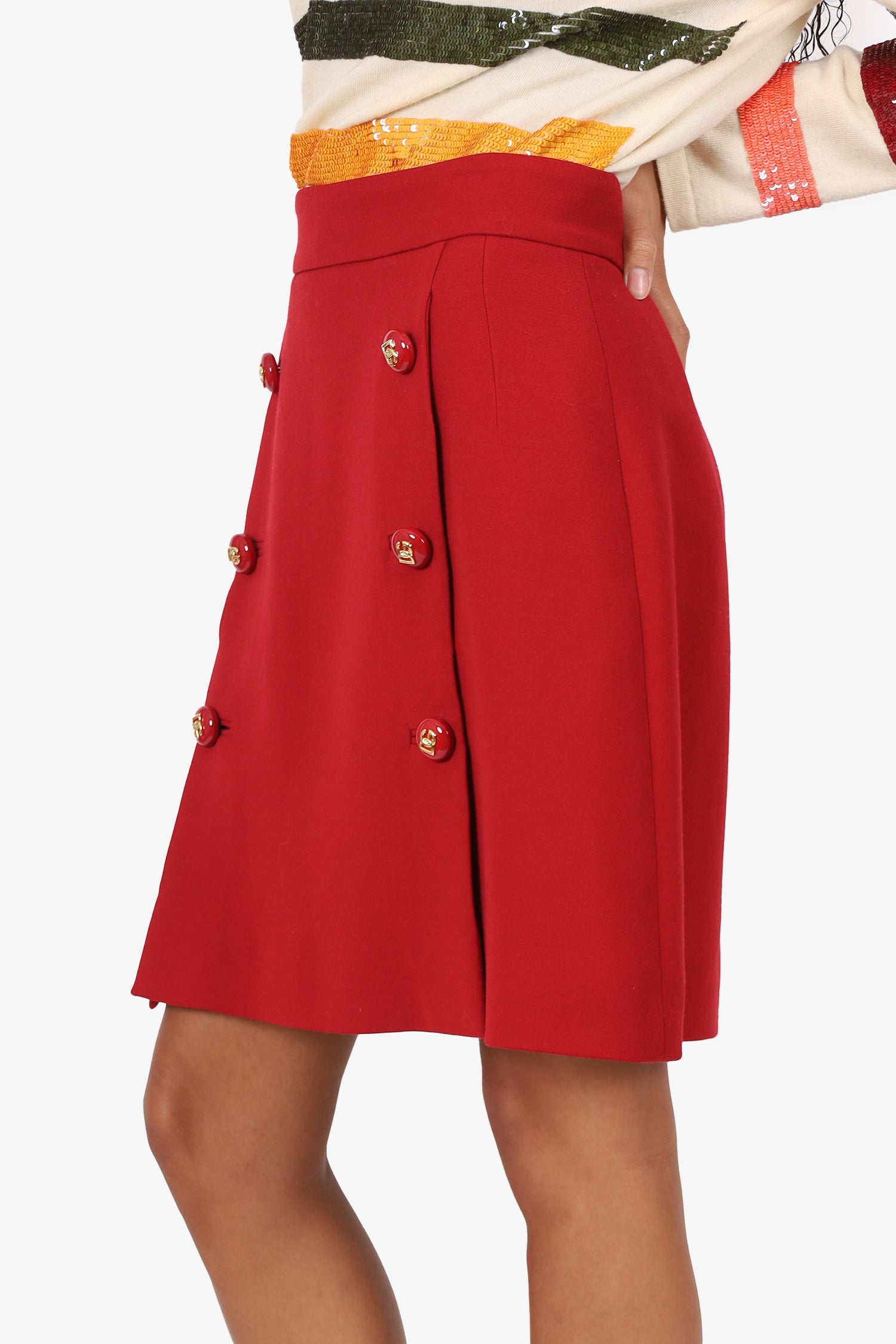 Dolce & Gabbana Red Wool 'DG' Button Skirt Size 44