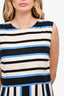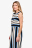 Dolce & Gabbana White/Black/Blue Striped Silk Sleeveless Midi Dress Size 50