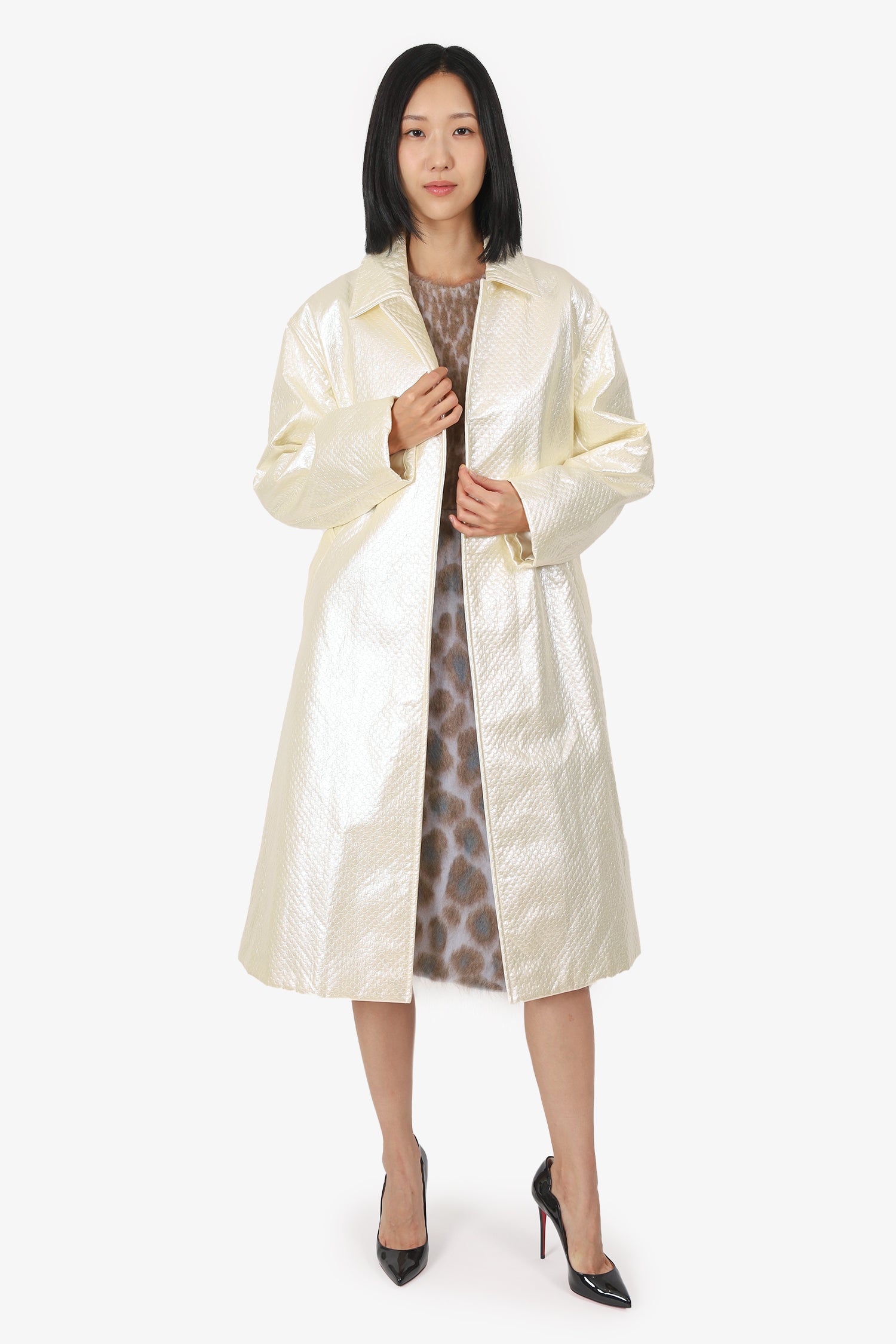 Refresh availabilityDries Van Noten Beige Metallic Belted Coat. Pull-on. Collared-neckline. Removable belt at waistline with tie-up closure. 2 exterior side slip pockets. Lined interior. Tonal stitching.