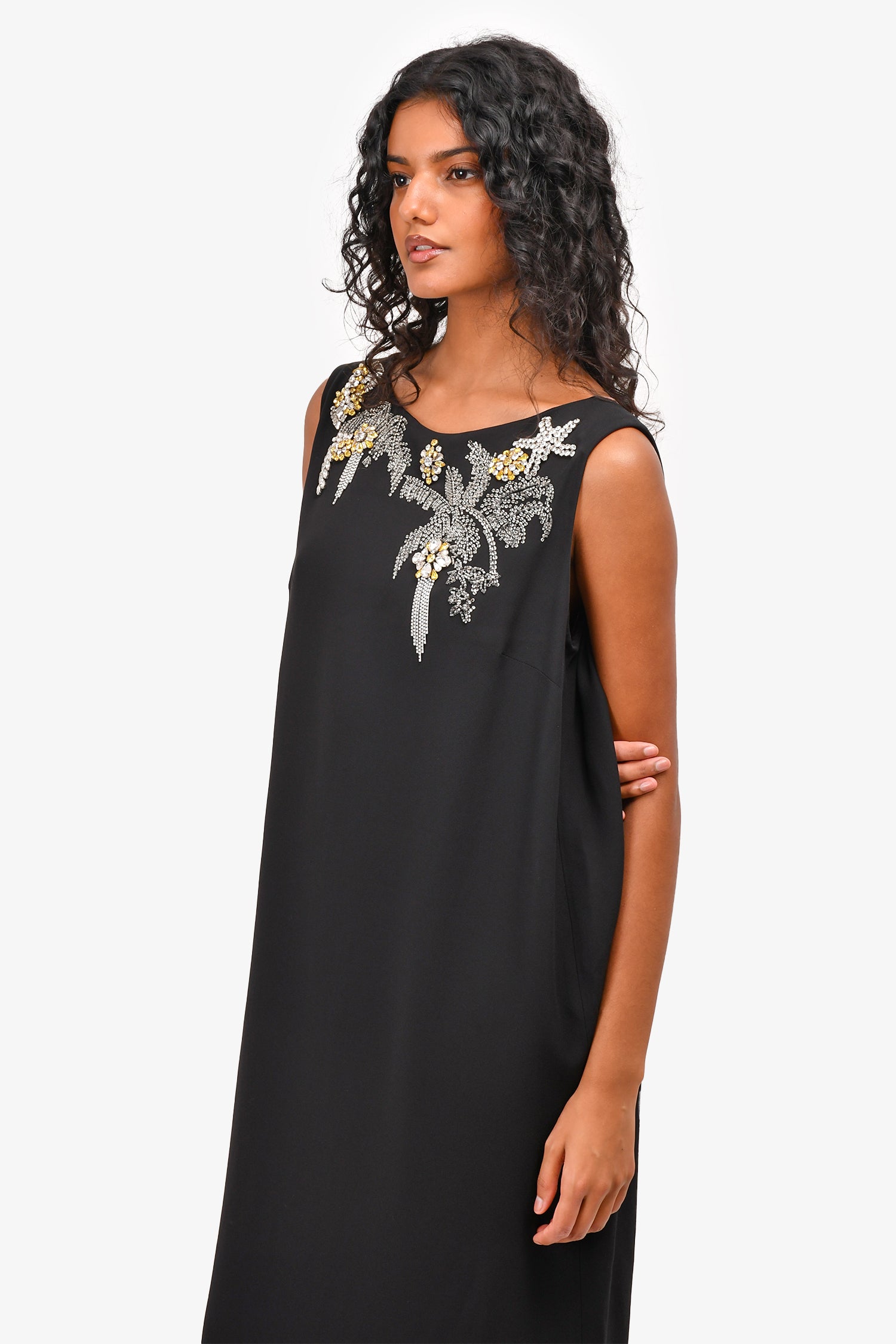 Dries Van Noten Black Crystal Embellished Sleeveless Dress Size 40