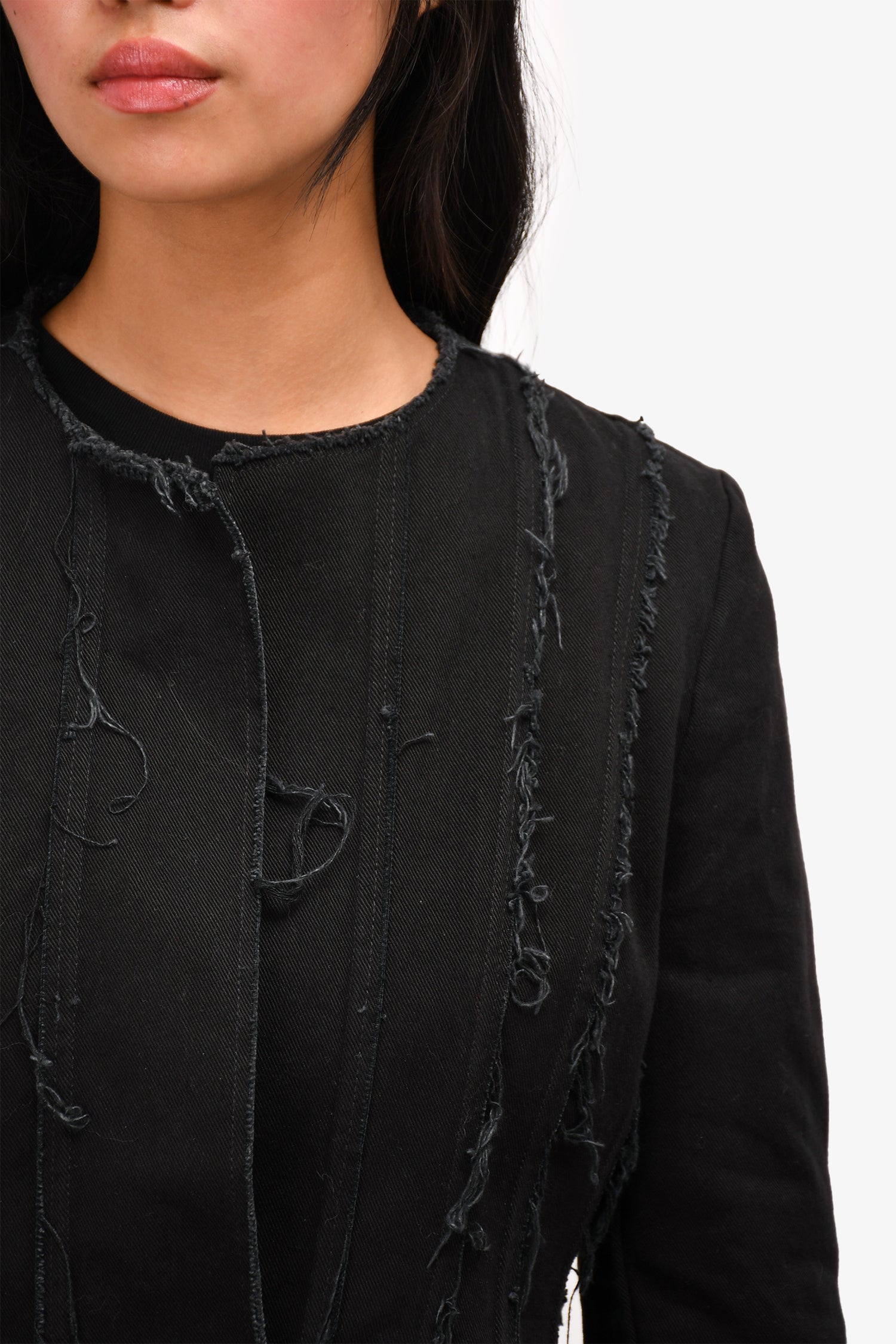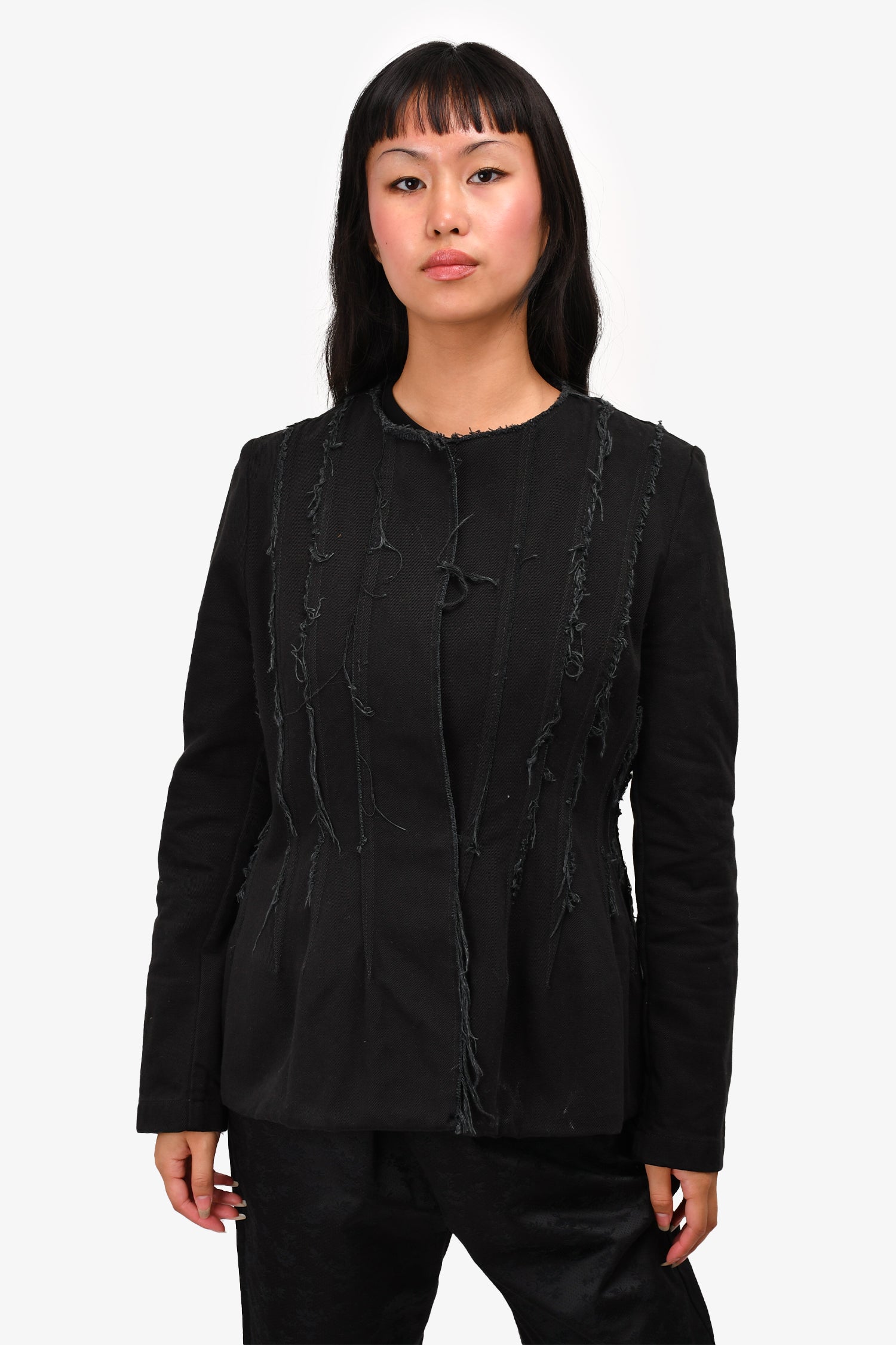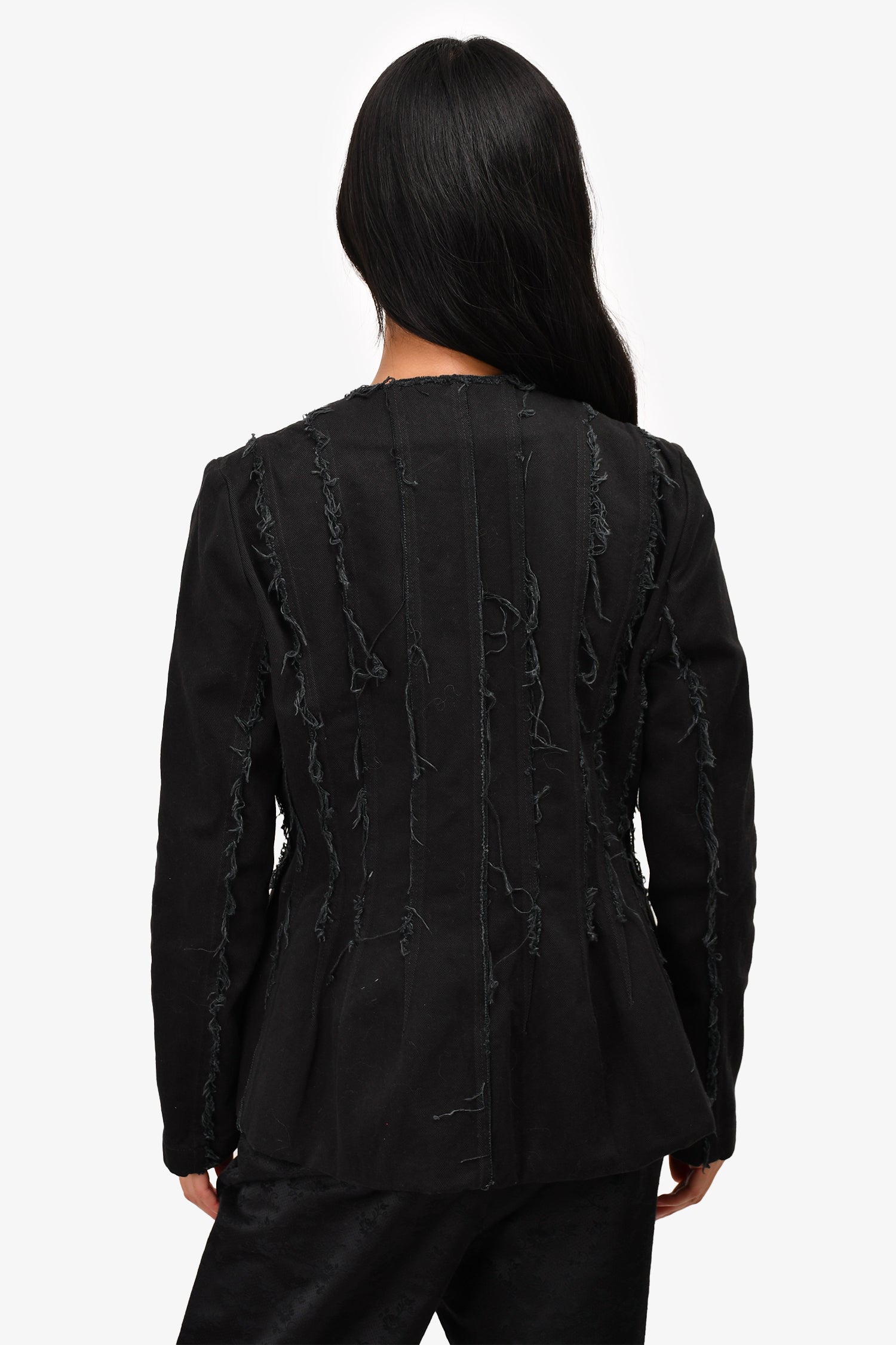 Dries Van Noten Black Denim Frayed Peplum Jacket Size 42