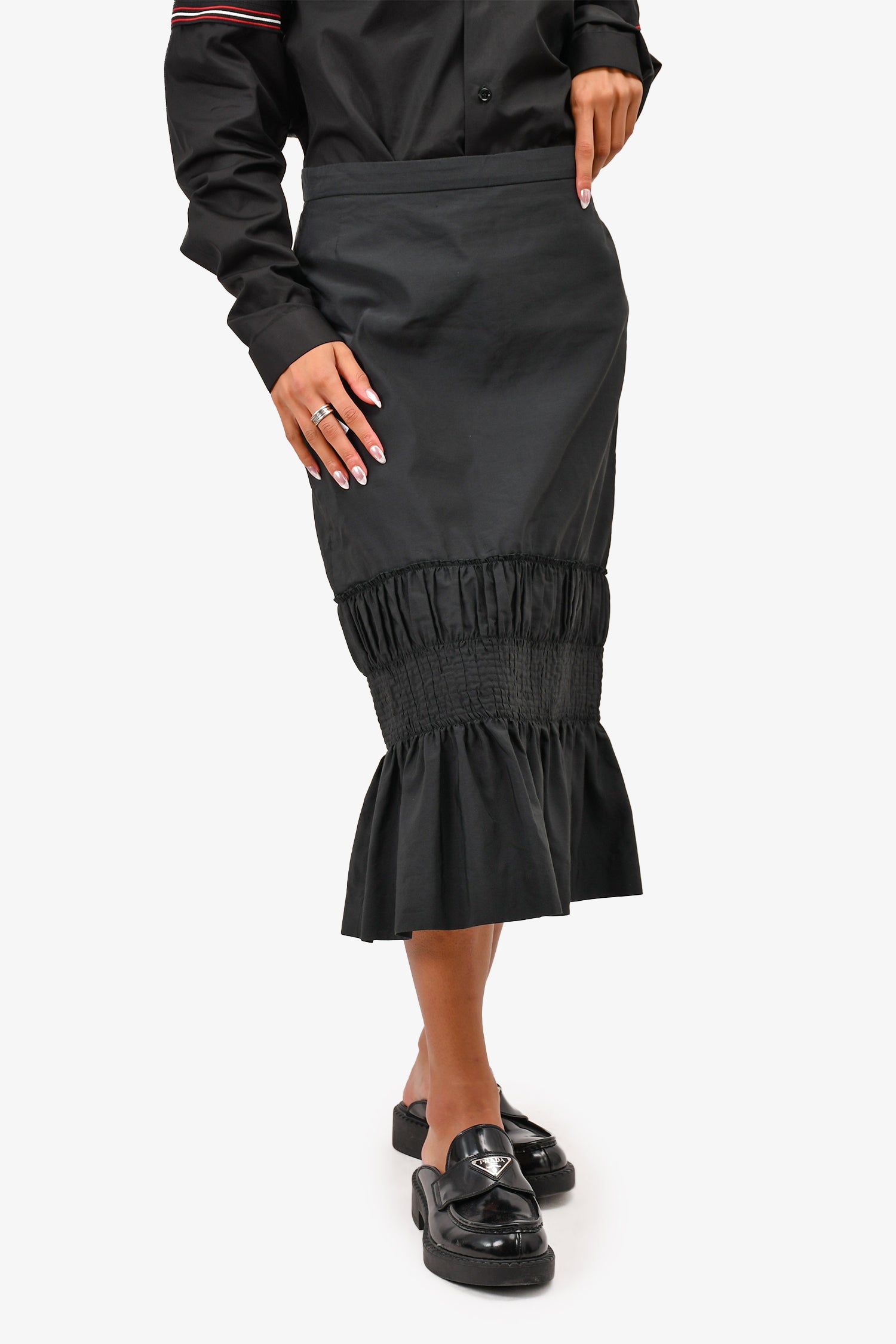 Dries Van Noten Black midi Ruched Peplum Skirt Size 36