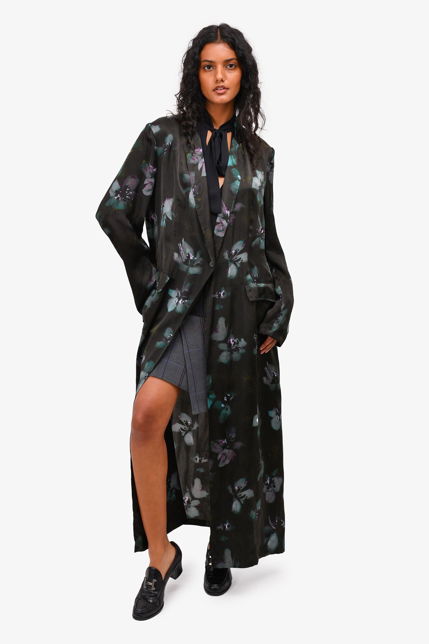 Refresh availabilityDries Van Noten Black/Teal Floral Silk Duster.