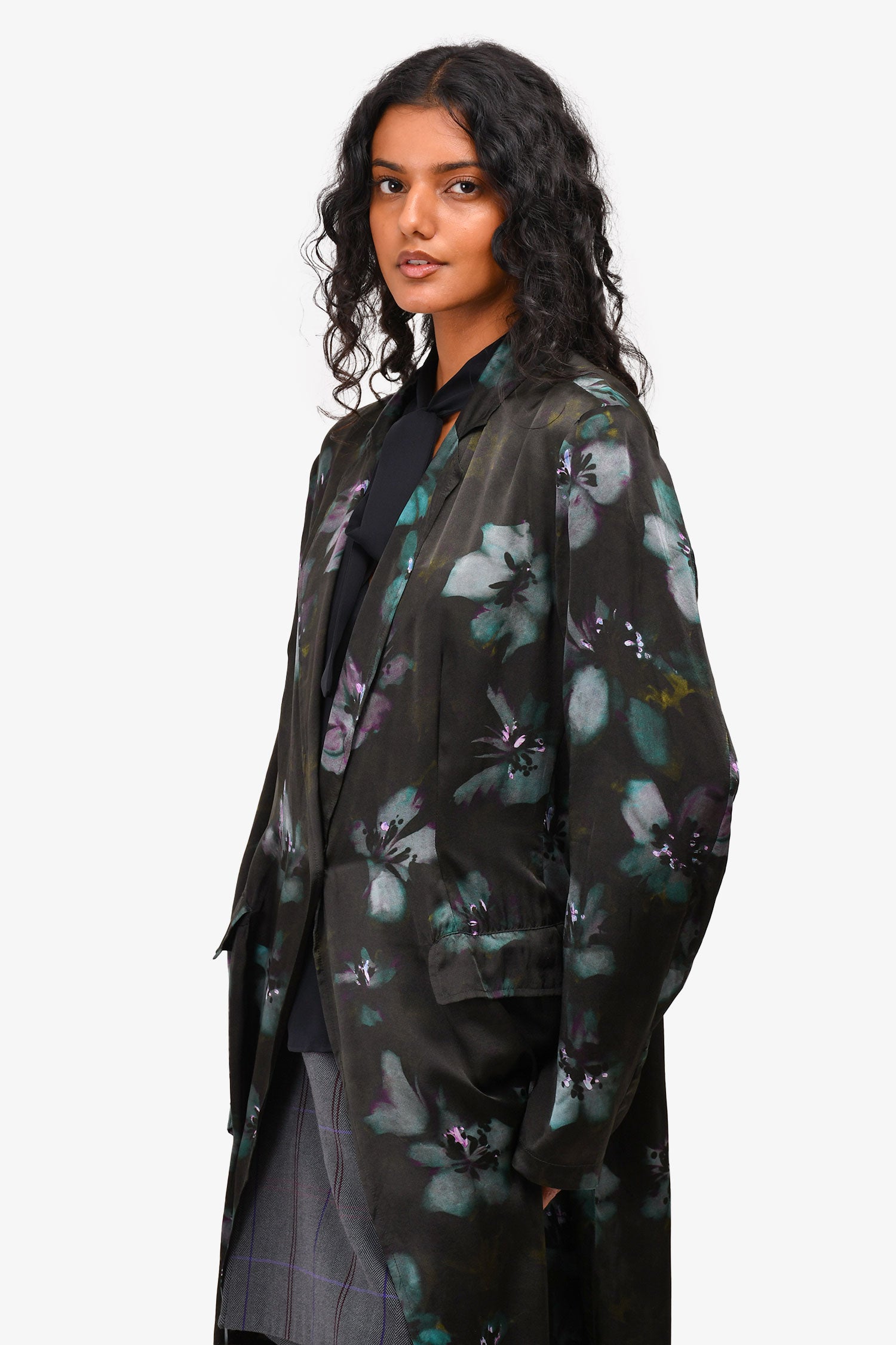 Dries Van Noten Black/Teal Floral Silk Duster Size 40