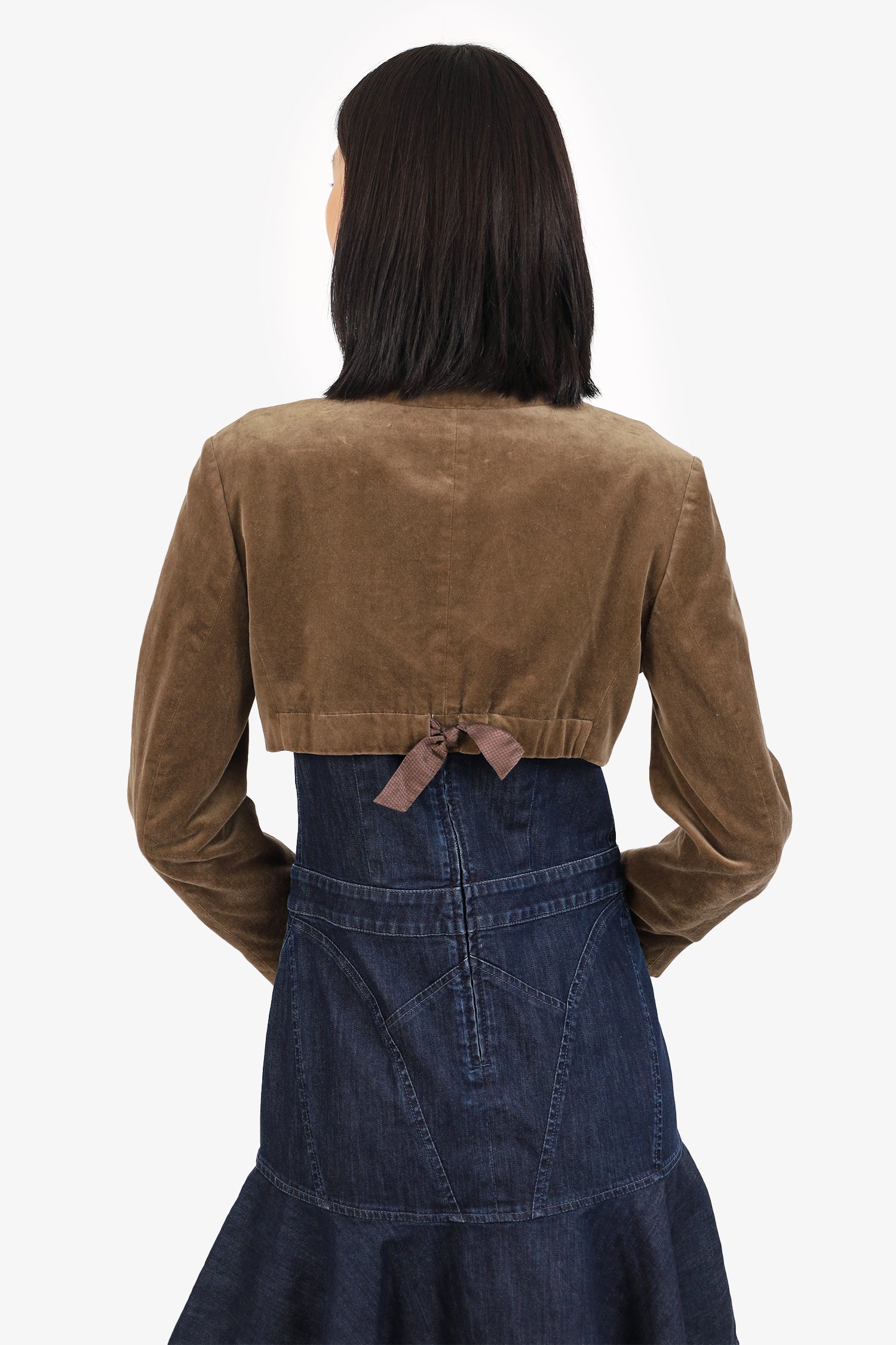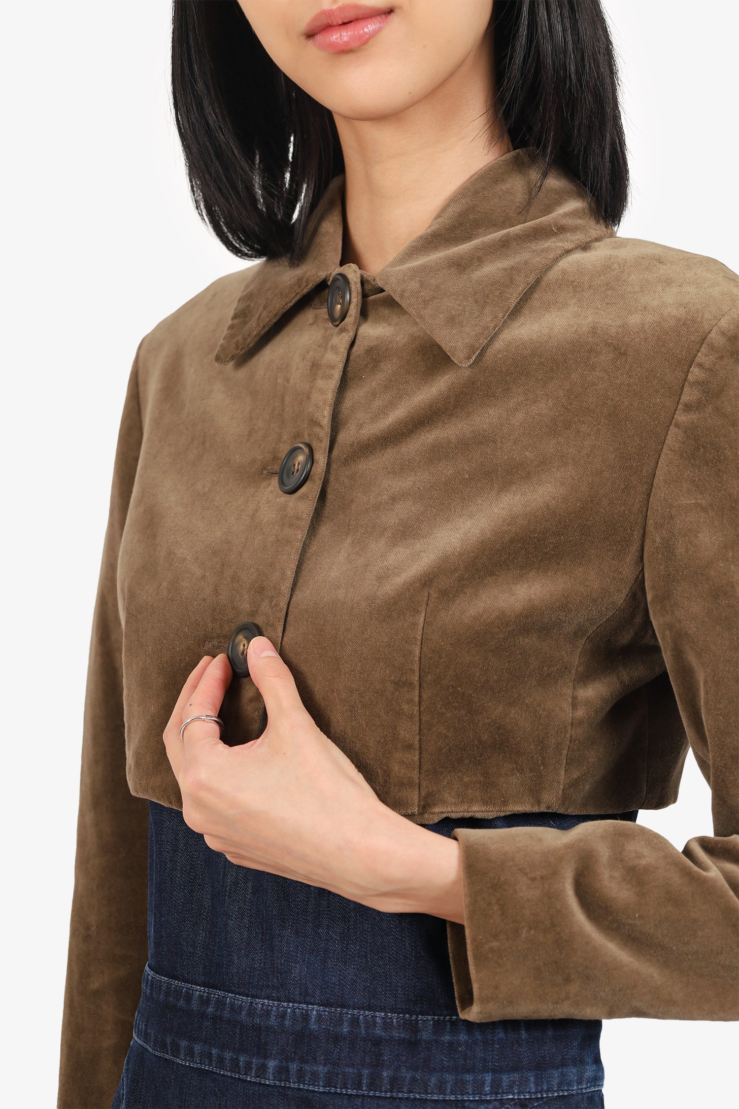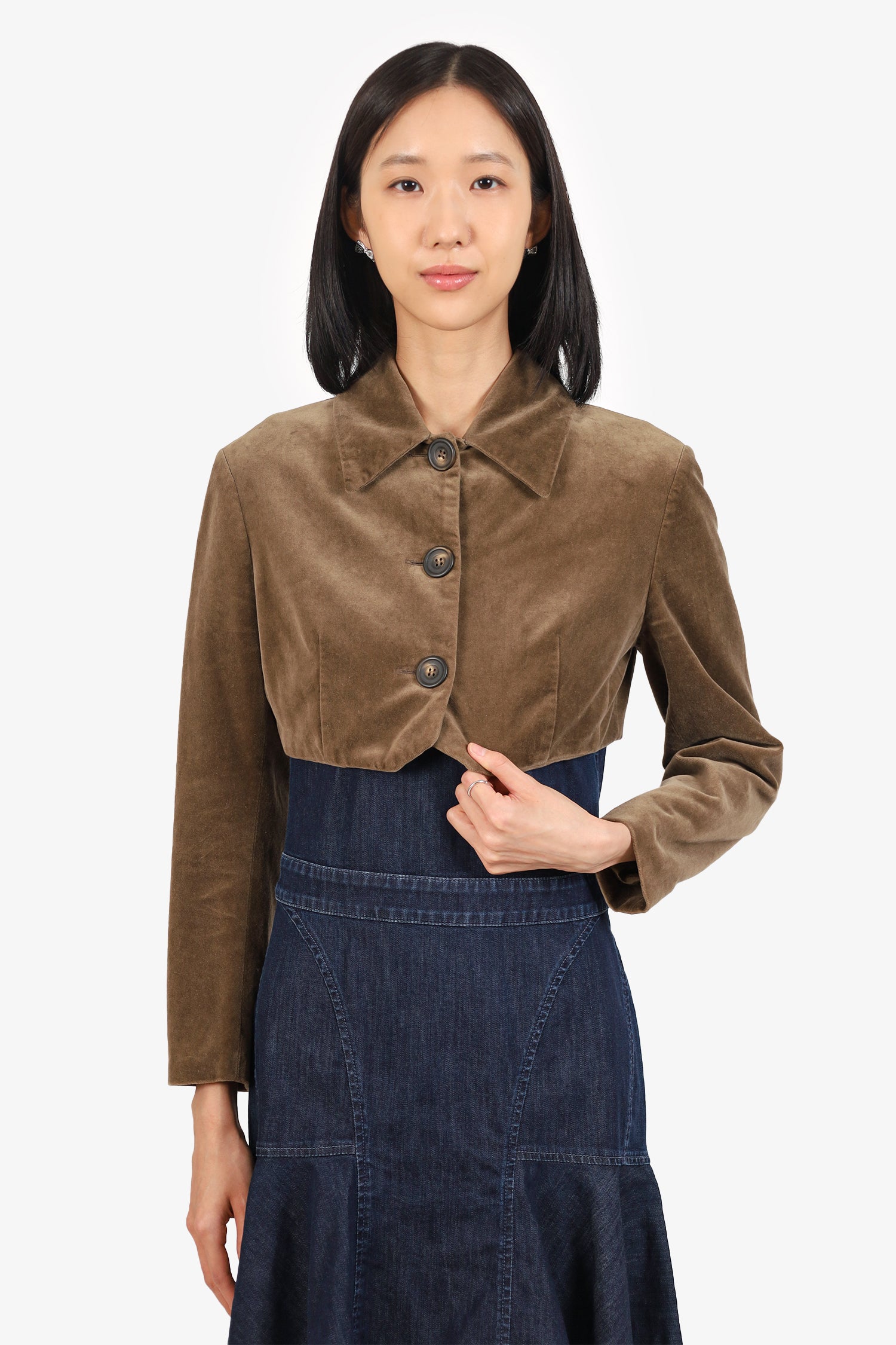 Dries Van Noten Brown Velvet Button Down Cropped Jacket Size 38