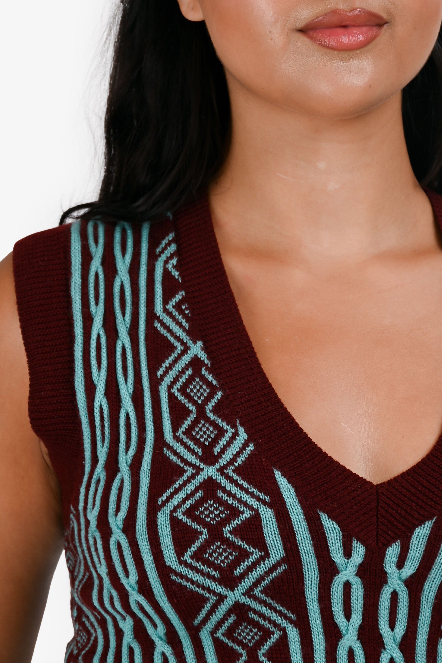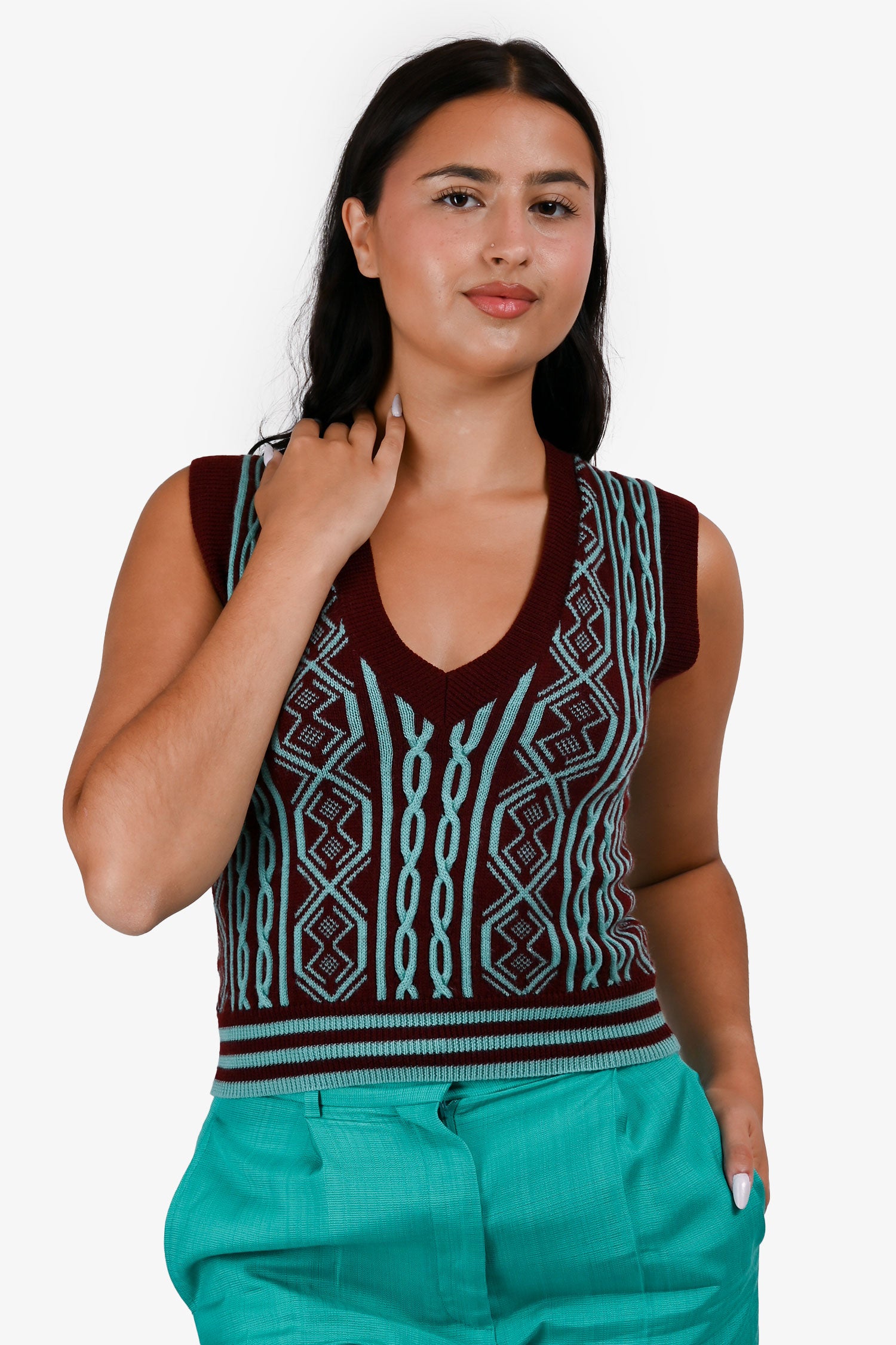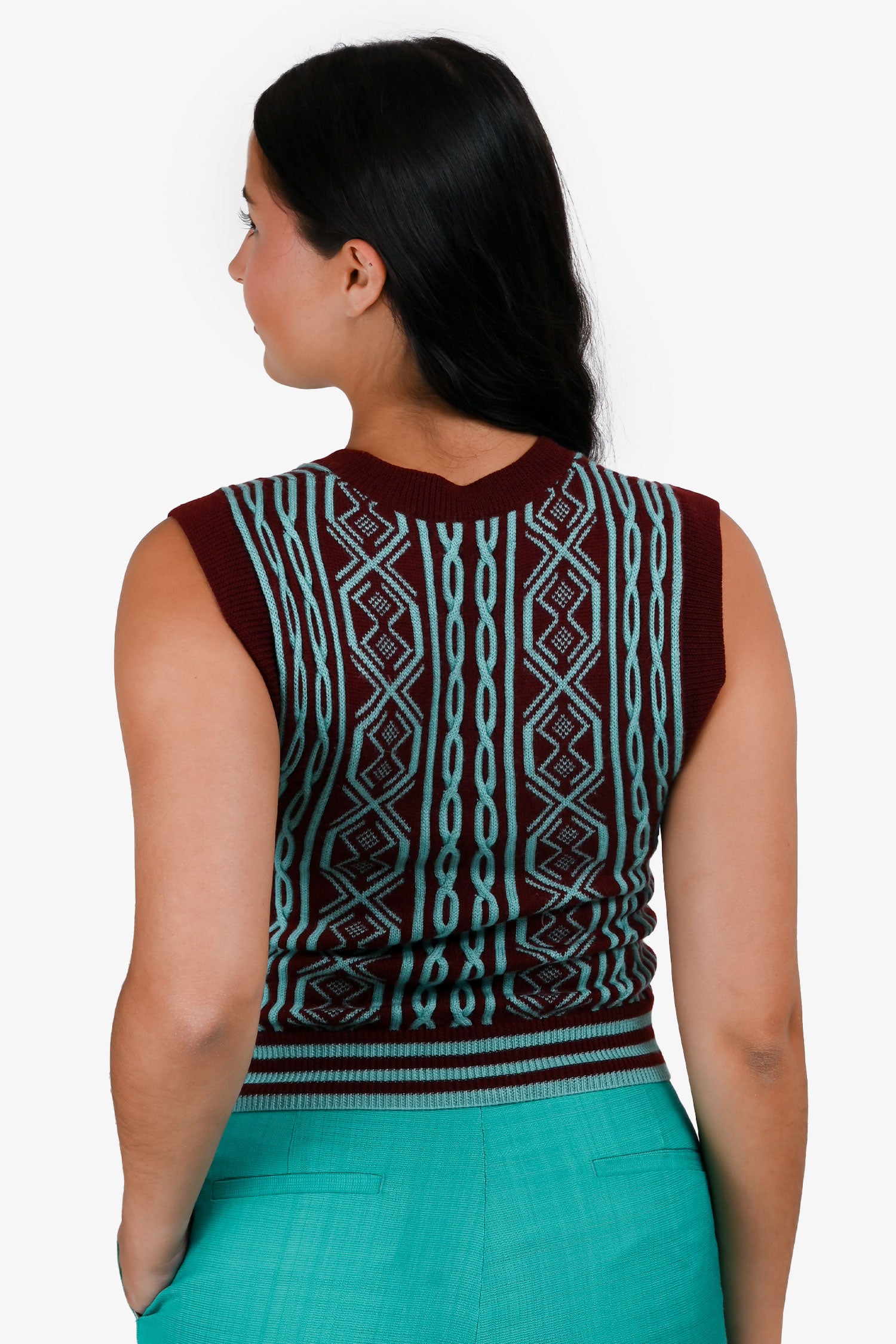 Dries Van Noten Burgundy/Blue Knit Vest Size XS