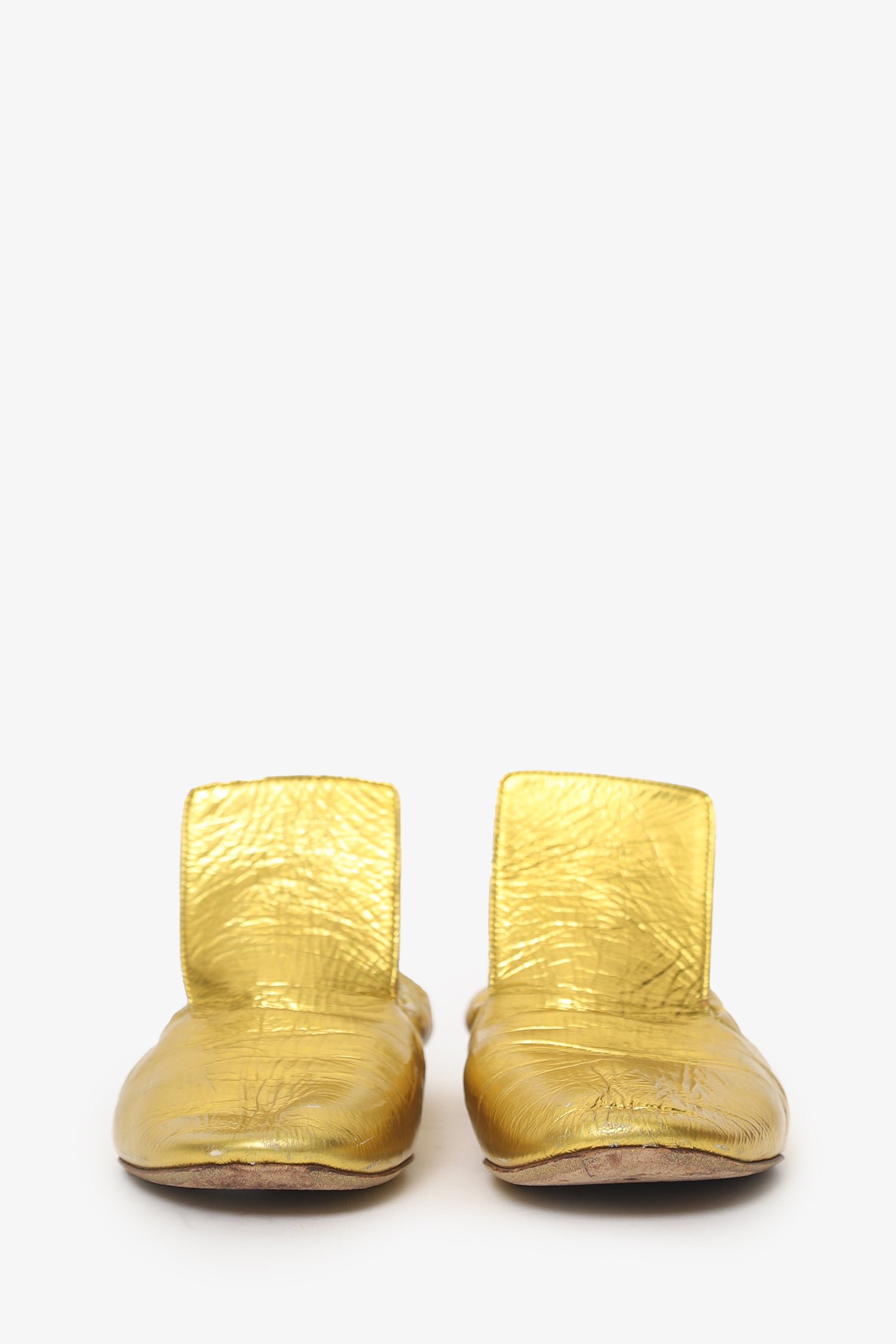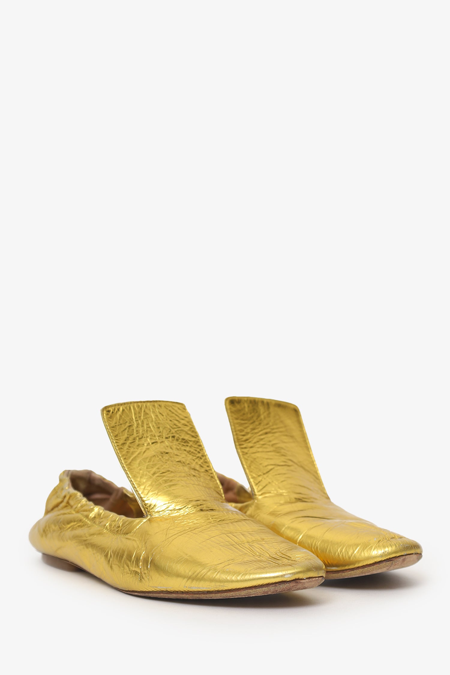 Refresh availabilityDries Van Noten Gold Metallic Gath Leather Ballet Flats. Pull-on. Round toe. Lined interior. Tonal stitching.