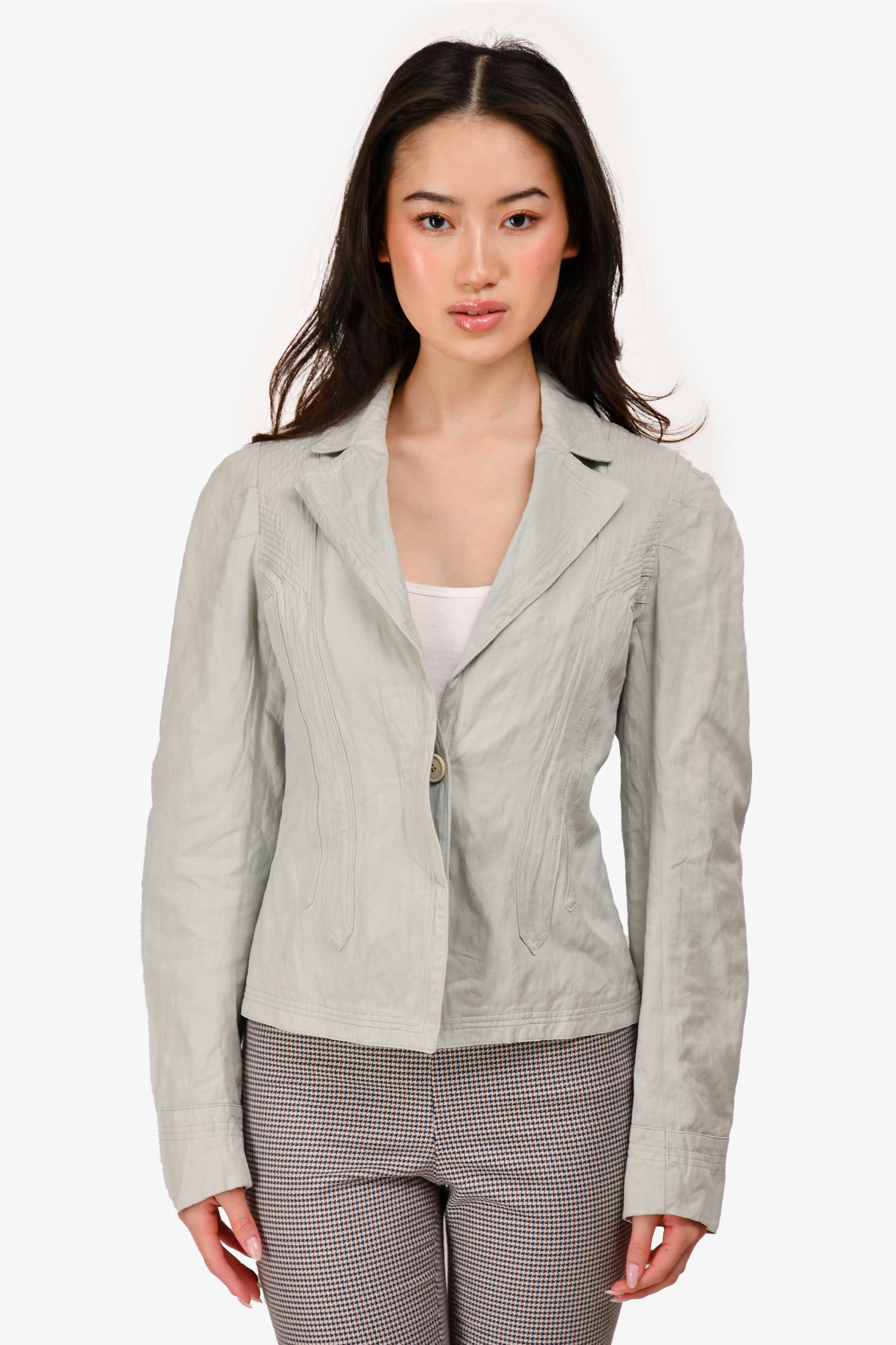Refresh availabilityDries Van Noten Mint Green Crinkle Cotton Blazer. Front button closure. Tonal hardware. Tonal stitching.