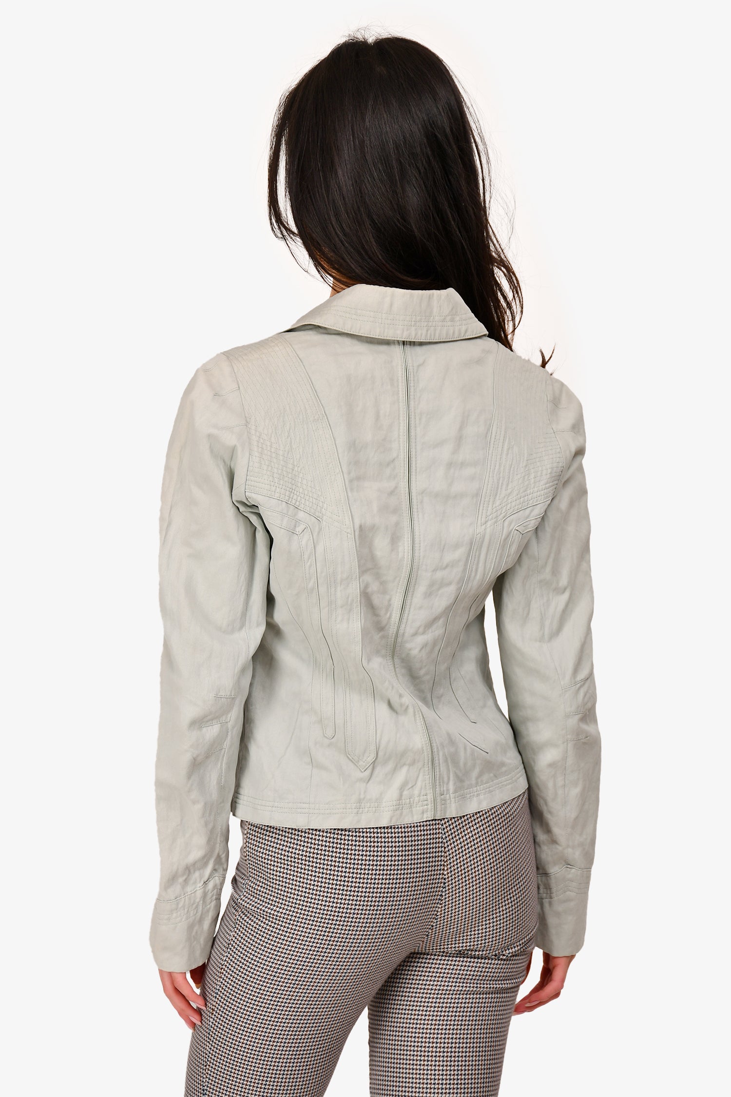 Dries Van Noten Mint Green Crinkle Cotton Blazer Size 38