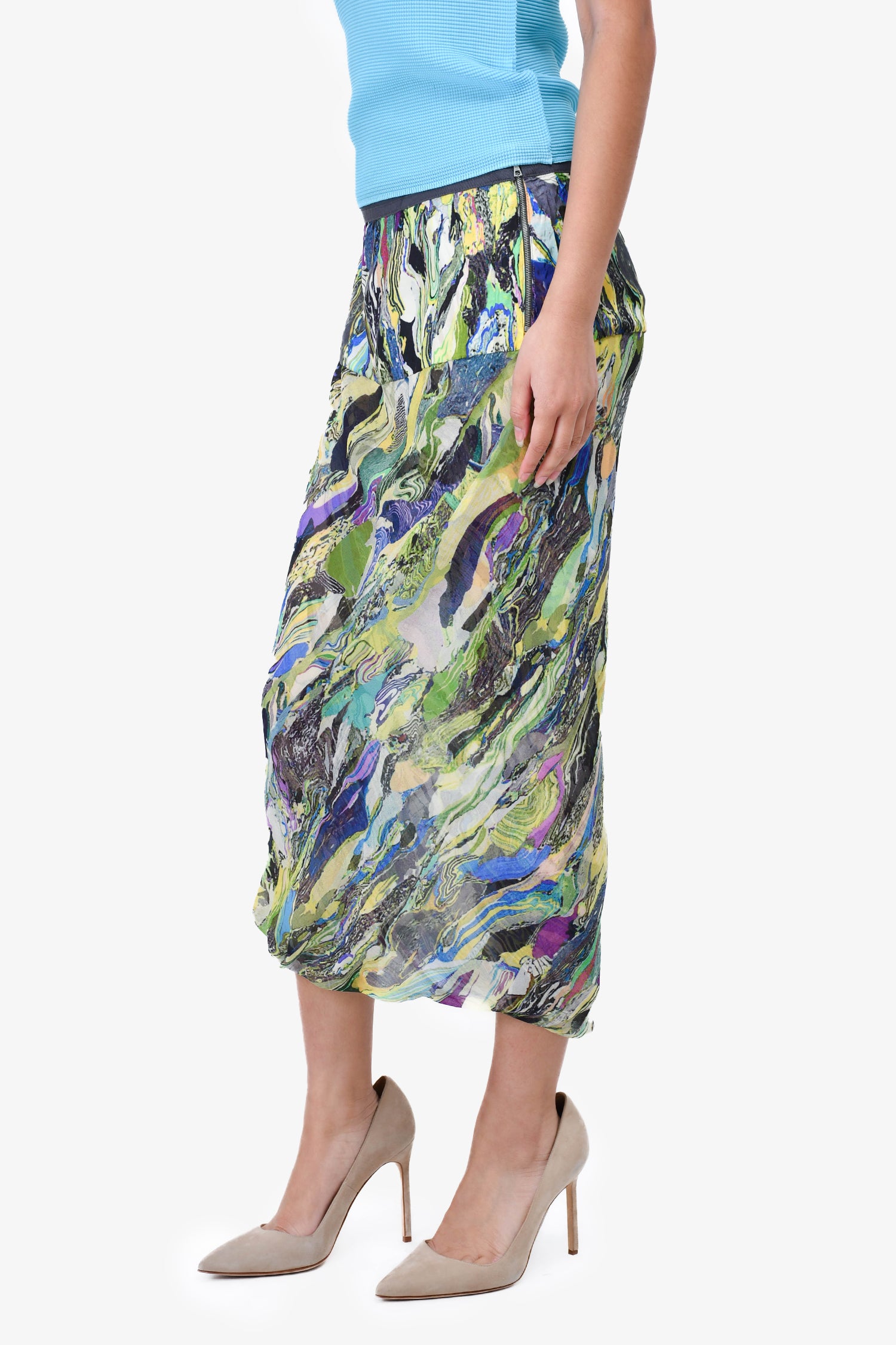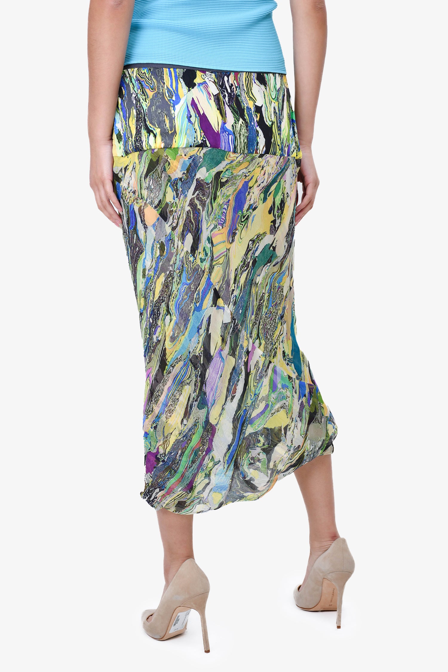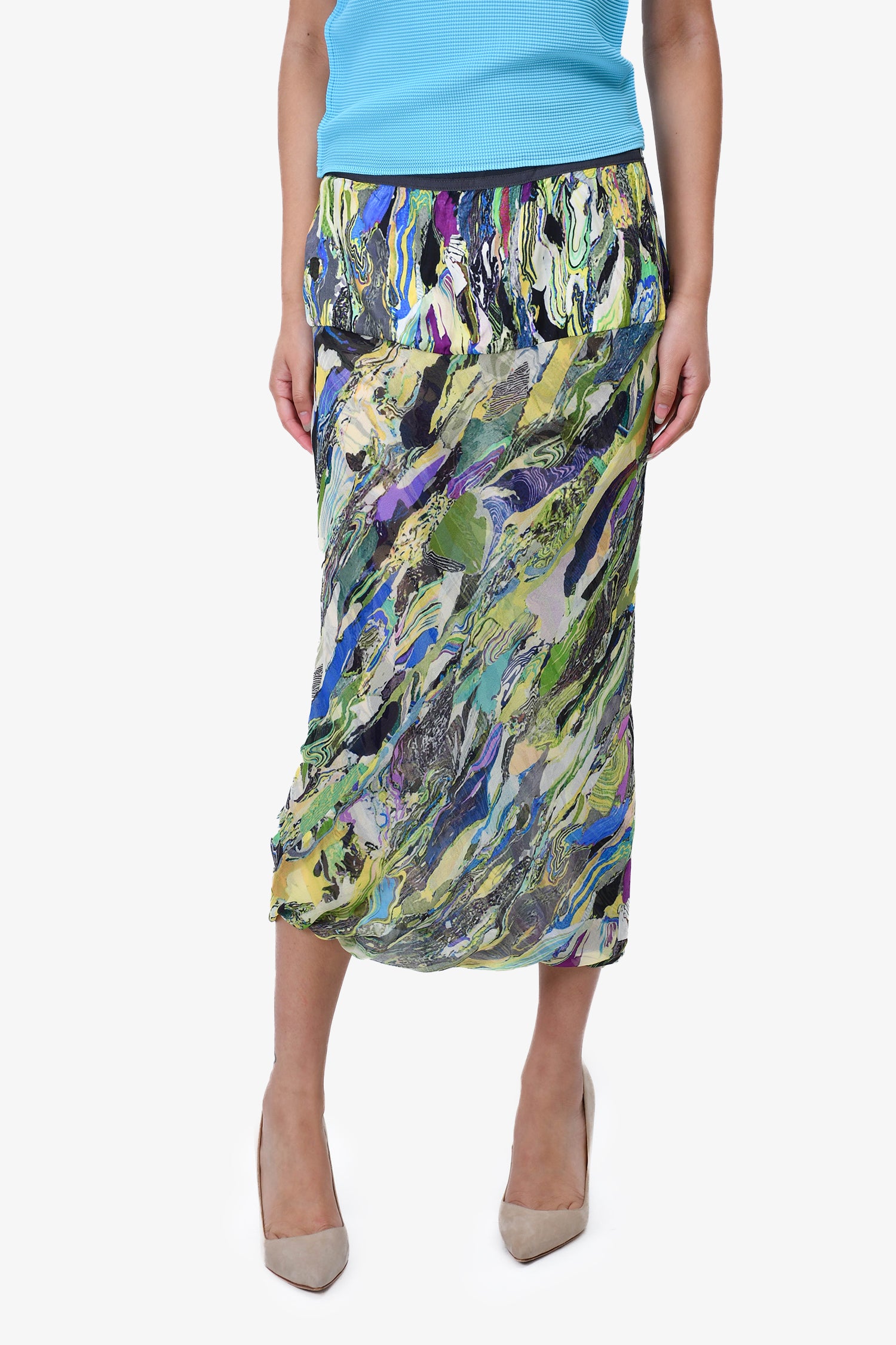 Dries Van Noten Multicolour Silk Marble Pattern Midi Skirt Size 40