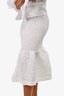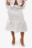 Dries Van Noten White Shirred Cotton Midi Skirt Size M