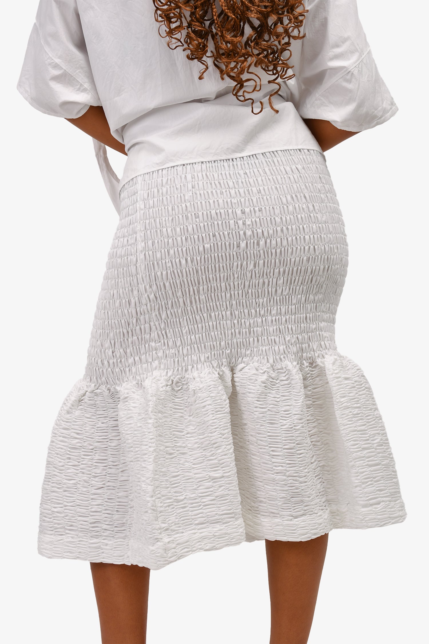 Refresh availabilityDries Van Noten White Shirred Cotton Midi Skirt. Tonal stitching. Lined interior.