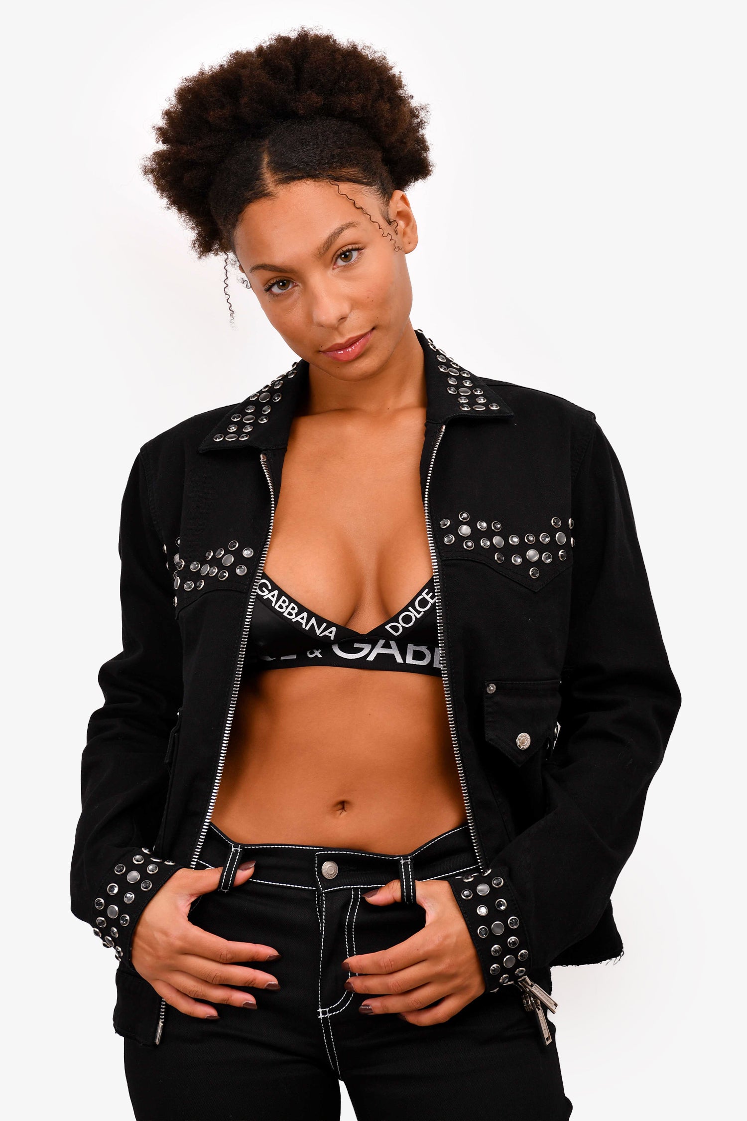 Dsquared2 Black Denim Crystal Embellished Jacket Size 48