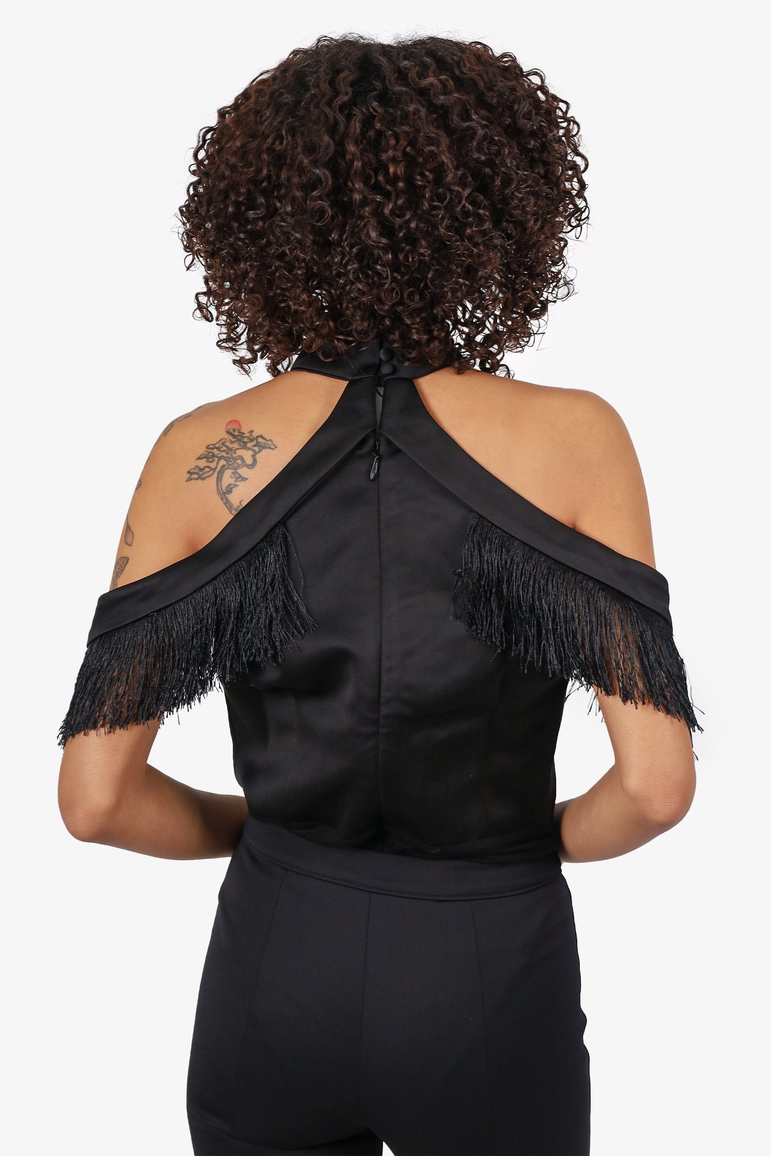 Eclect Black Fringe Cold Shoulder Bodysuit Size 12