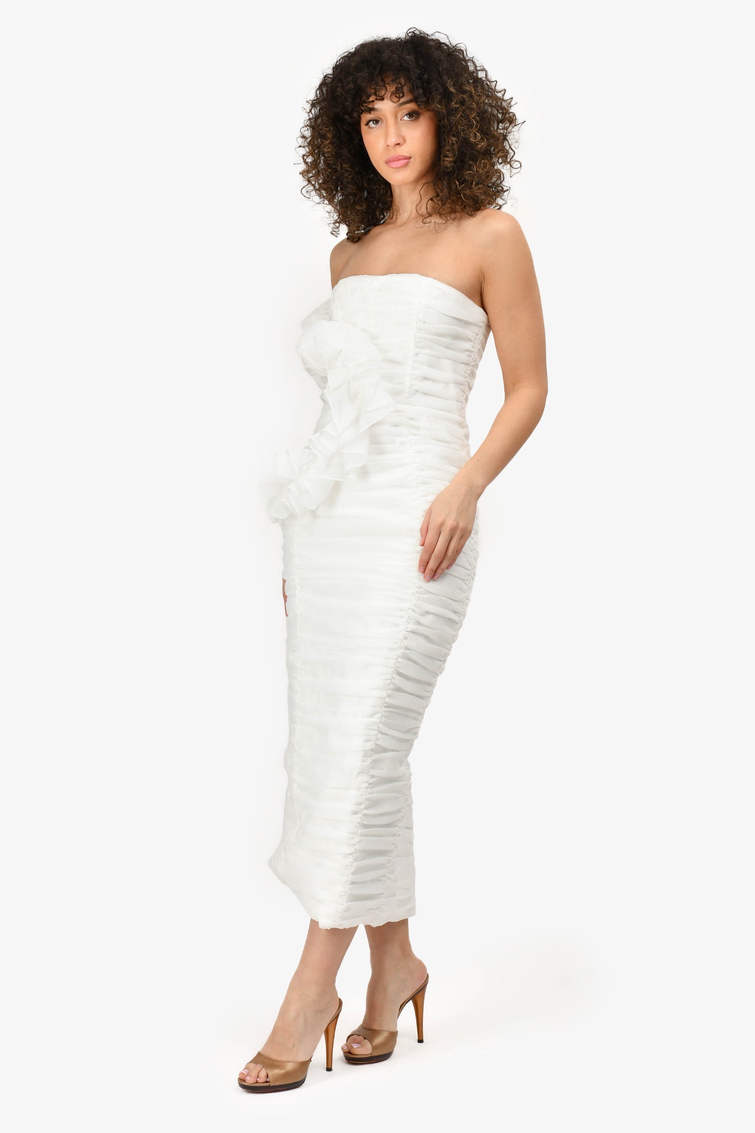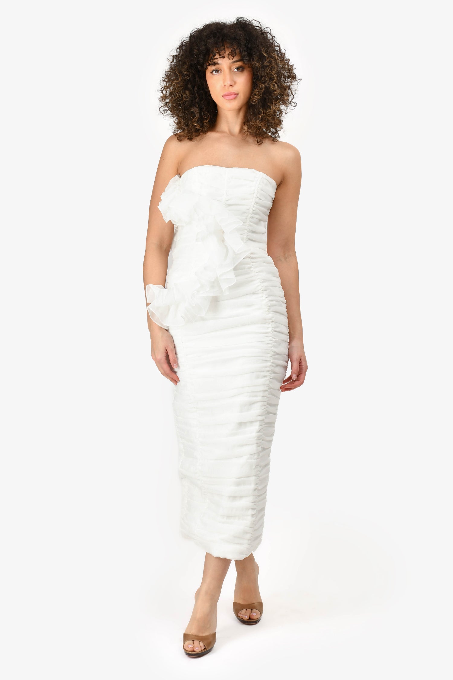 Eliya The Label White One Shoulder Rouched 'Vana' Midi Dress Size S