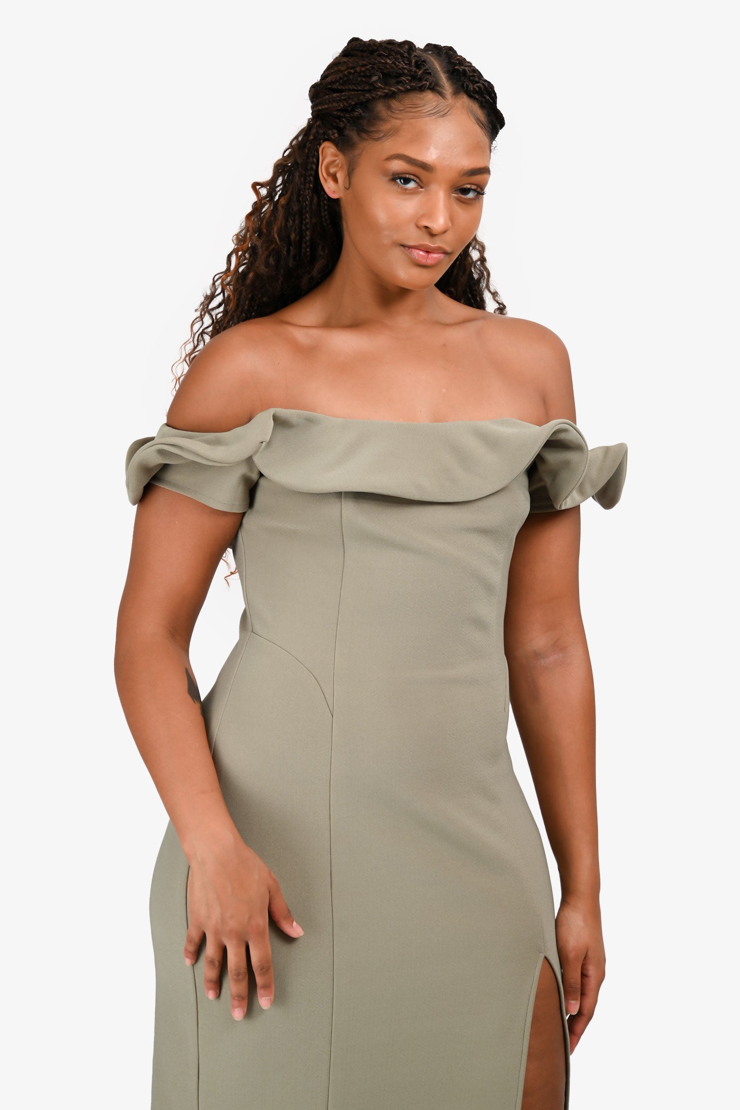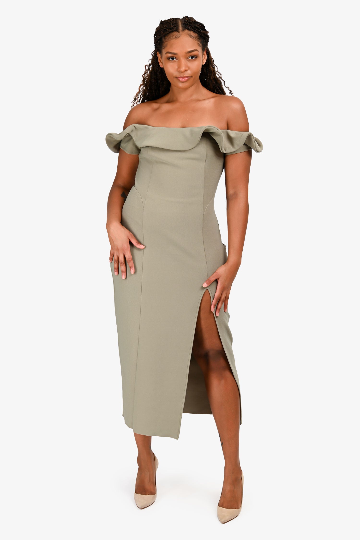 Refresh availabilityElliatt Green Dancehall Strapless Midi Dress. Slip-on. Strapless neckline. Rear zip with hook clasp closure. Side slit. Unlined. Silver-tone hardware. Tonal stitching.