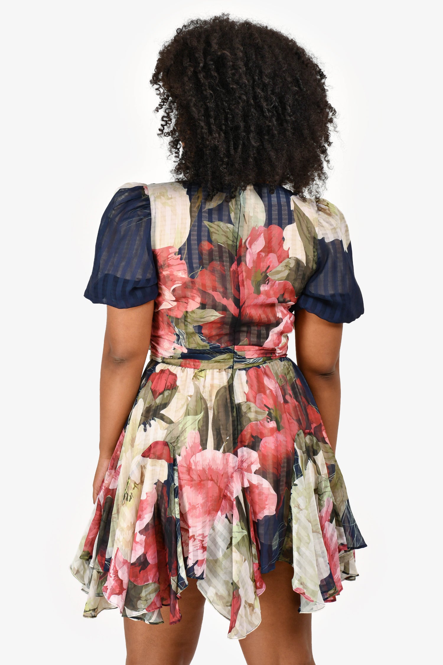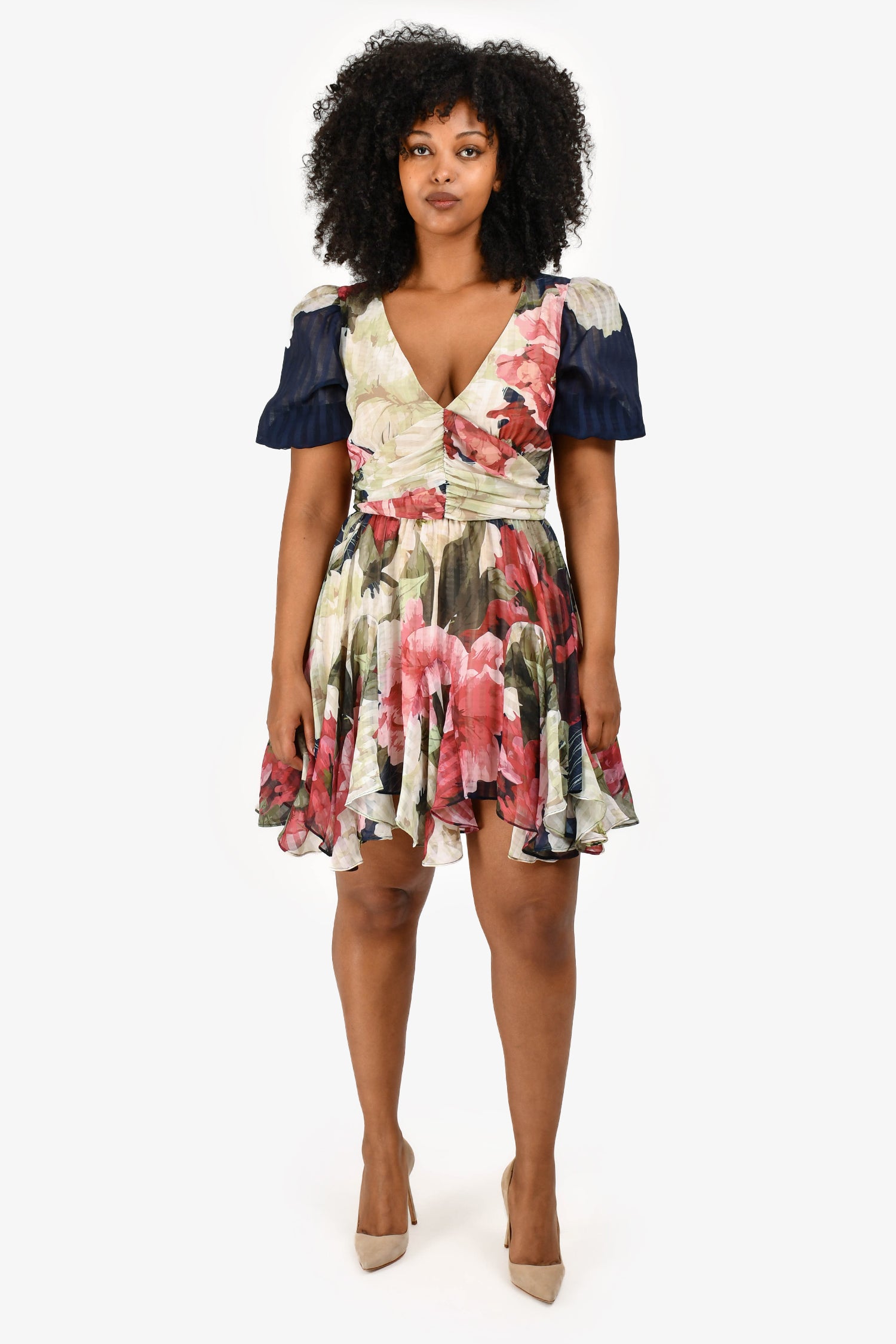 Elliatt Navy/White Floral Puff Sleeve 'Nevada' Dress Size L