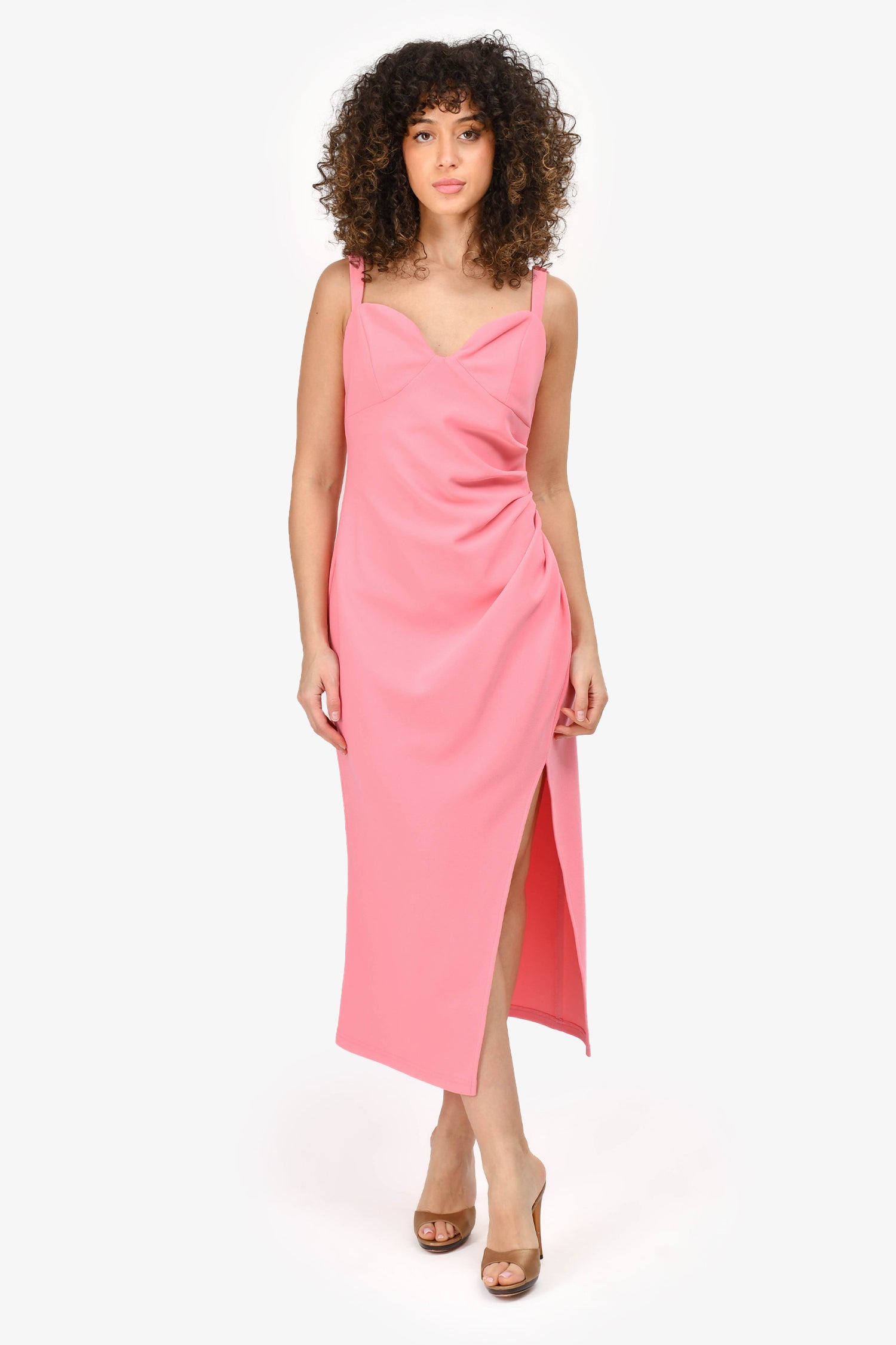 Refresh availabilityElliatt Pink Bustier 'Cora' Midi Dress. Back zip-up closure. Adjustable shoulder straps. Features a small slit at the leg. Unlined. Tonal stitching.