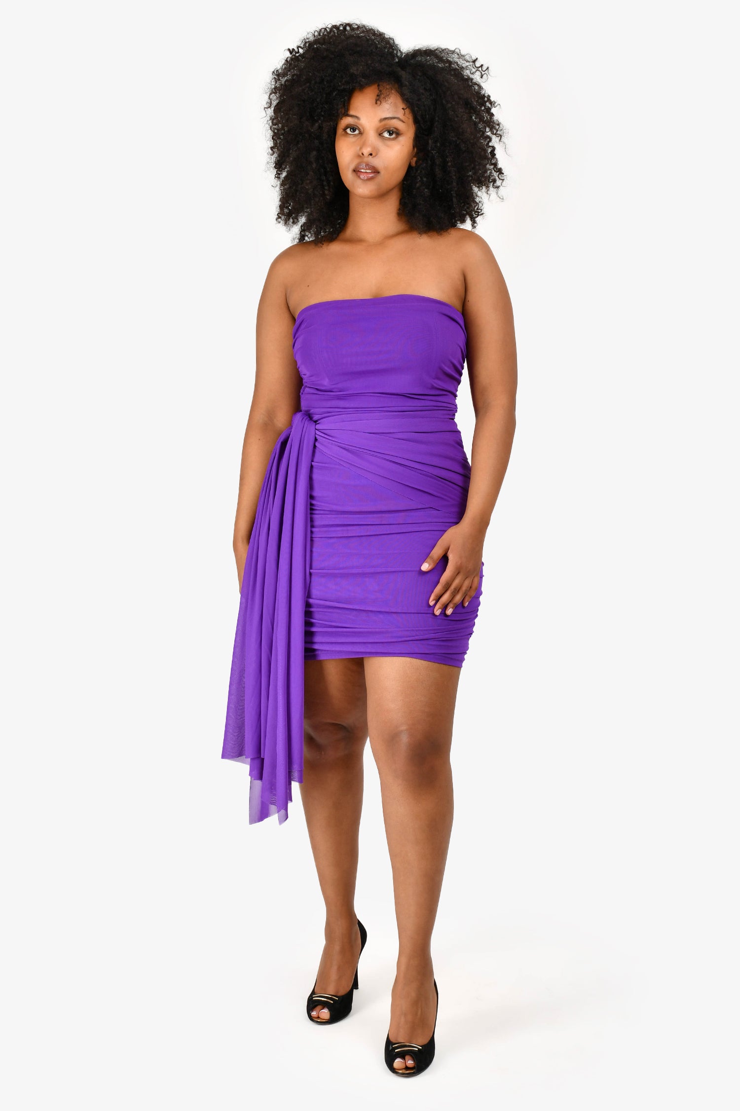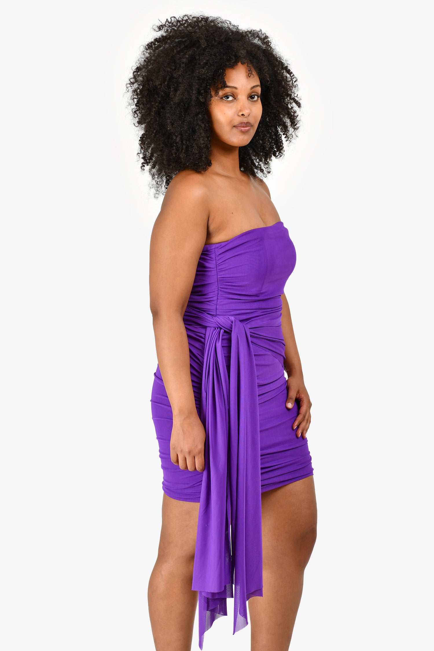 Refresh availabilityElliatt Purple 'Alma' Mini Dress Size. Side tonal zip-up closure. Silicone grip along the top edge to prevent slipping. Flowing fabric detail. Tonal stitching.