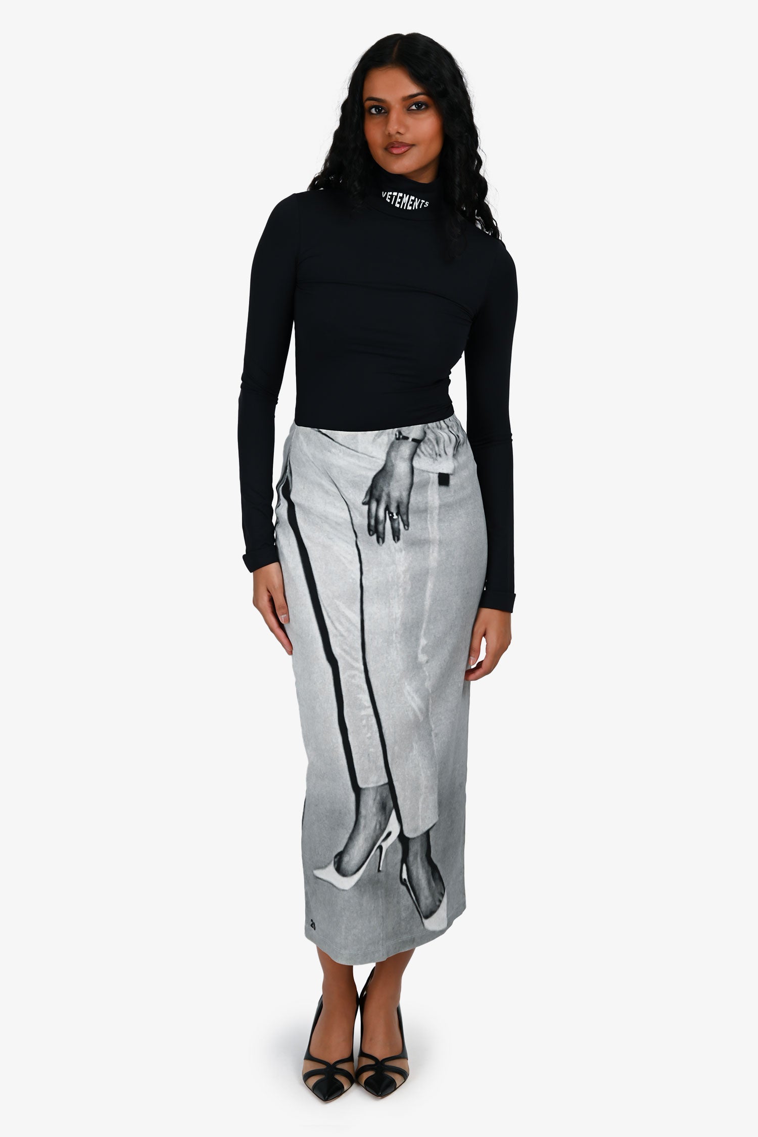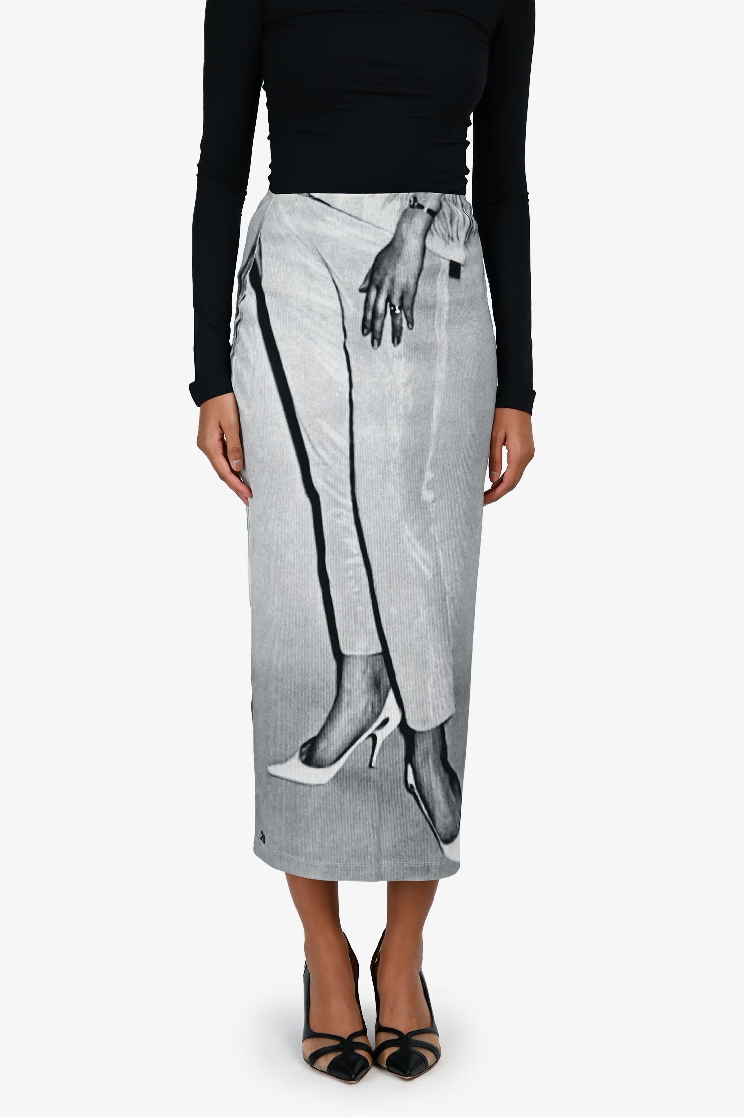 Elliss Grey Cotton 'Dancing Girl' Midi Skirt Size S