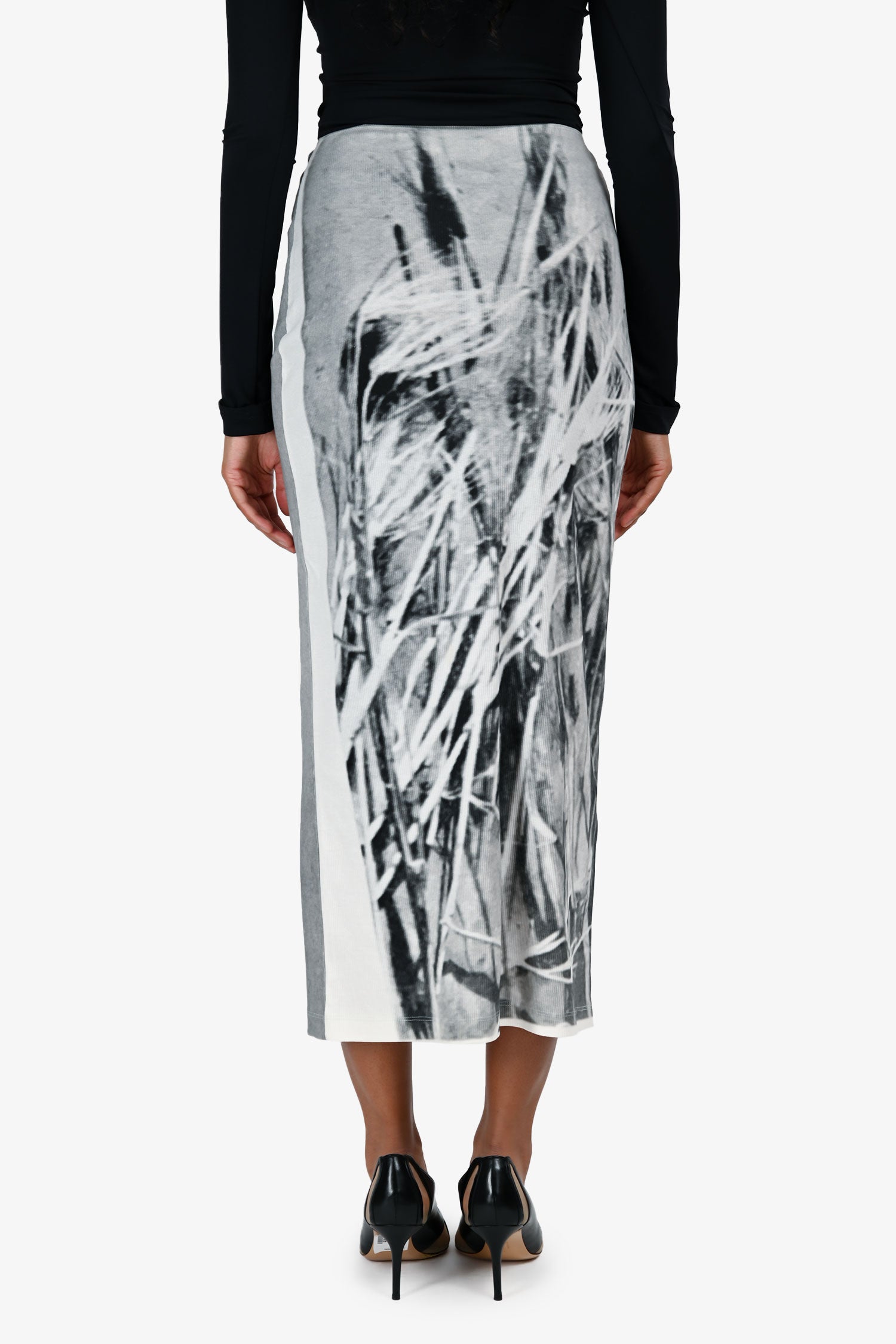 Refresh availabilityElliss Grey Cotton ‘Dancing Girl’ Midi Skirt. Pull-on. Tonal stitching.