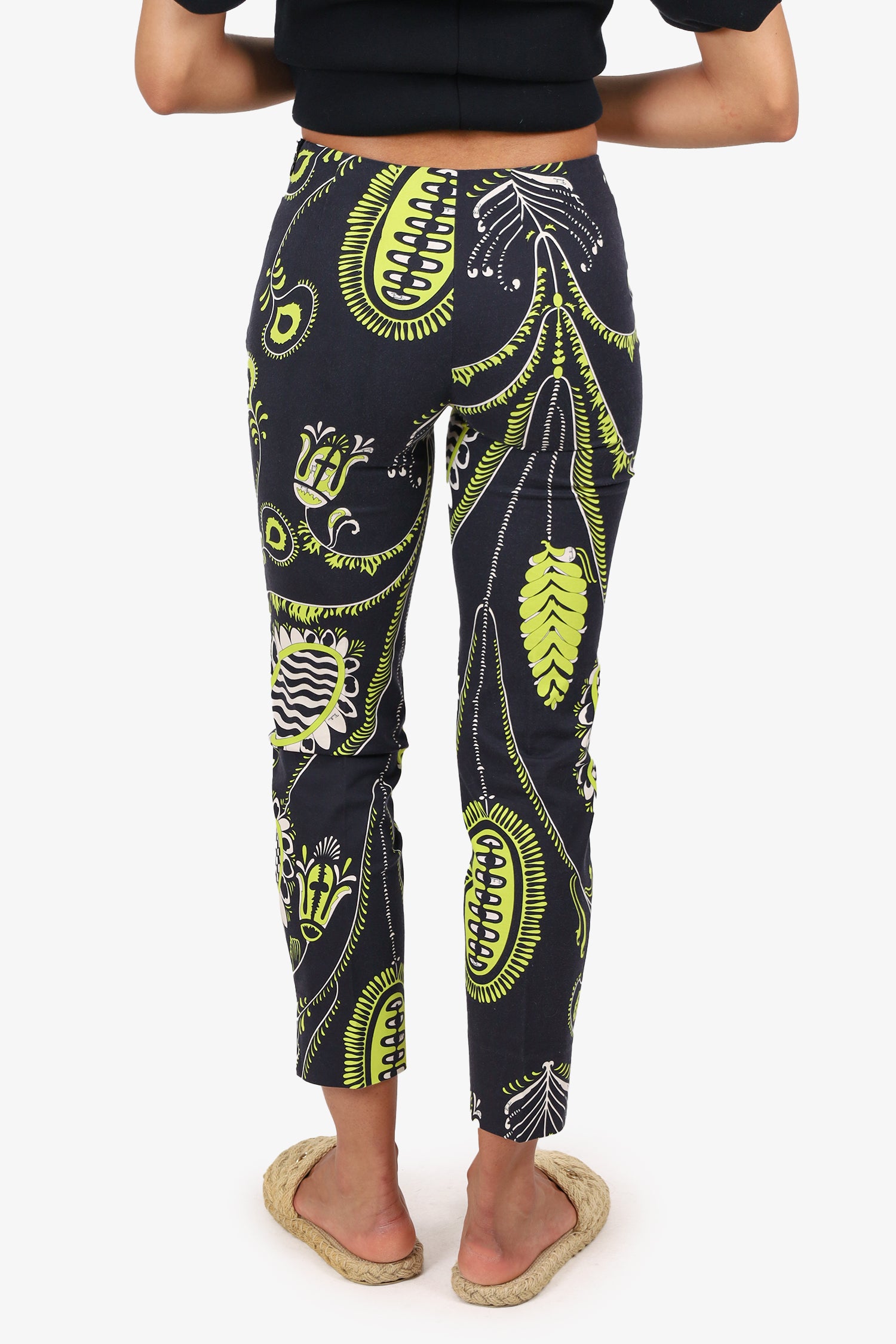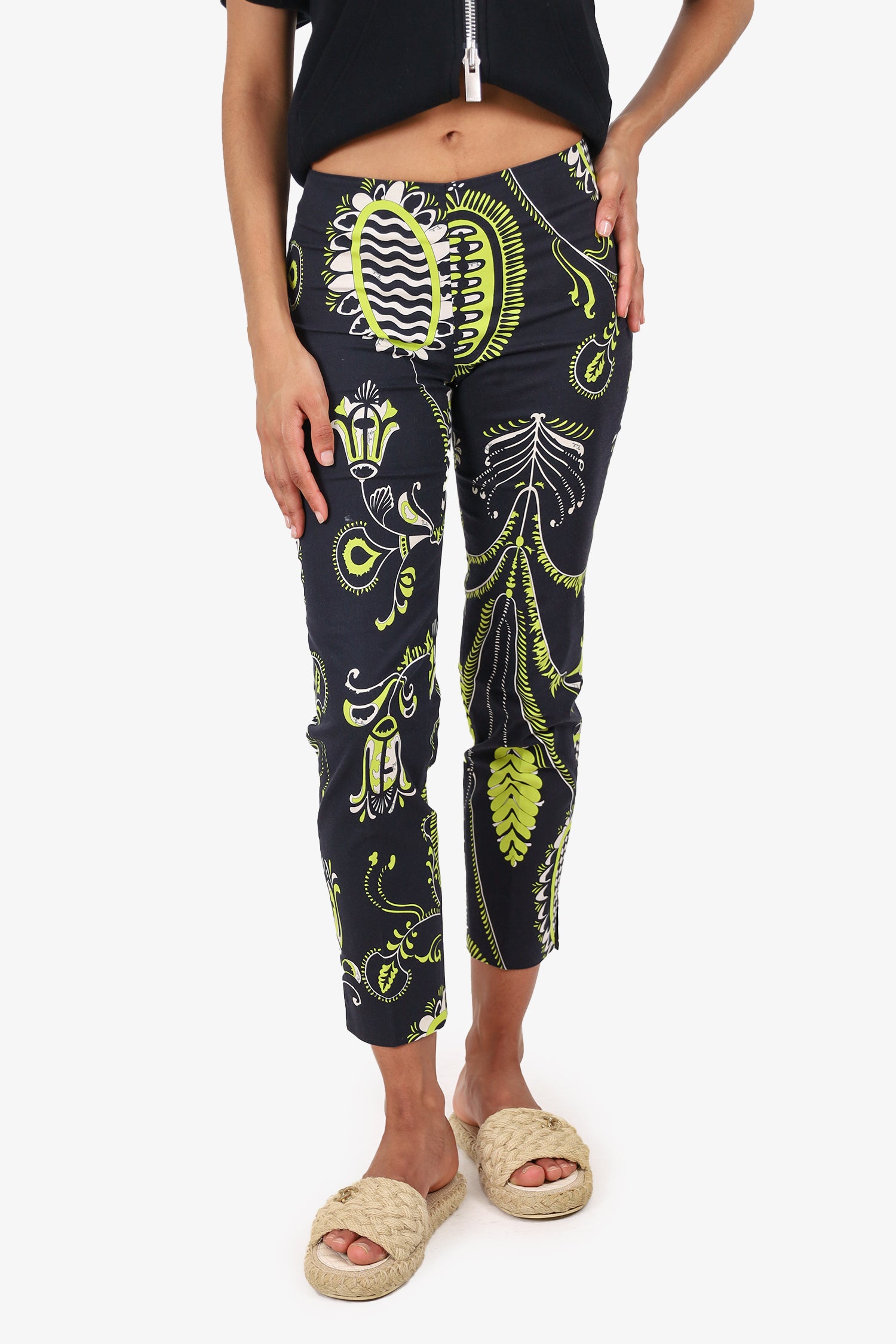 Refresh availabilityEmilio Pucci Black/Green Floral Print Straight Leg Trousers. Slip-on. Side zip and hook closure. Tonal stitching.