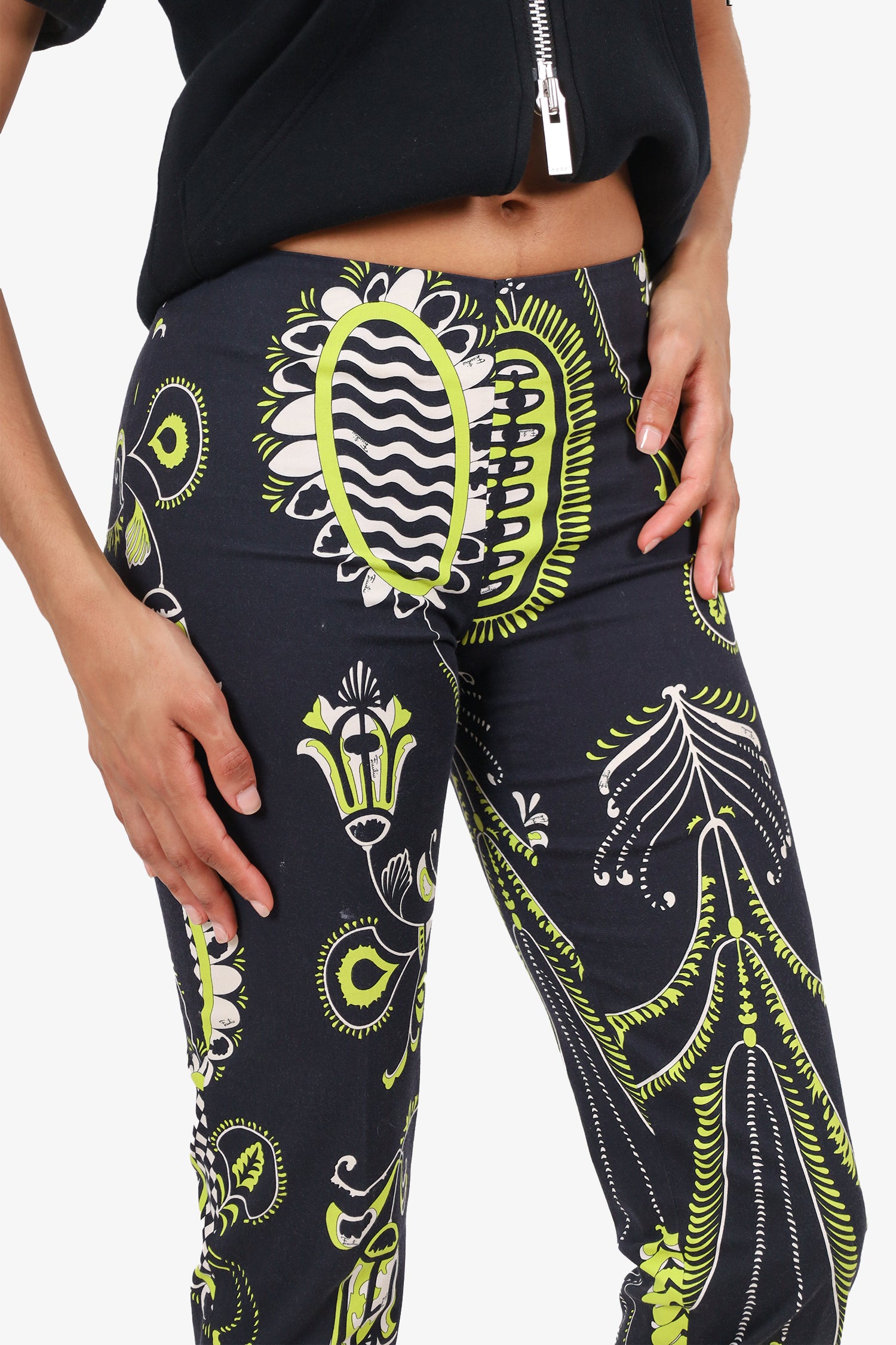 Emilio Pucci Black/Green Floral Print Straight Leg Trousers Size 6
