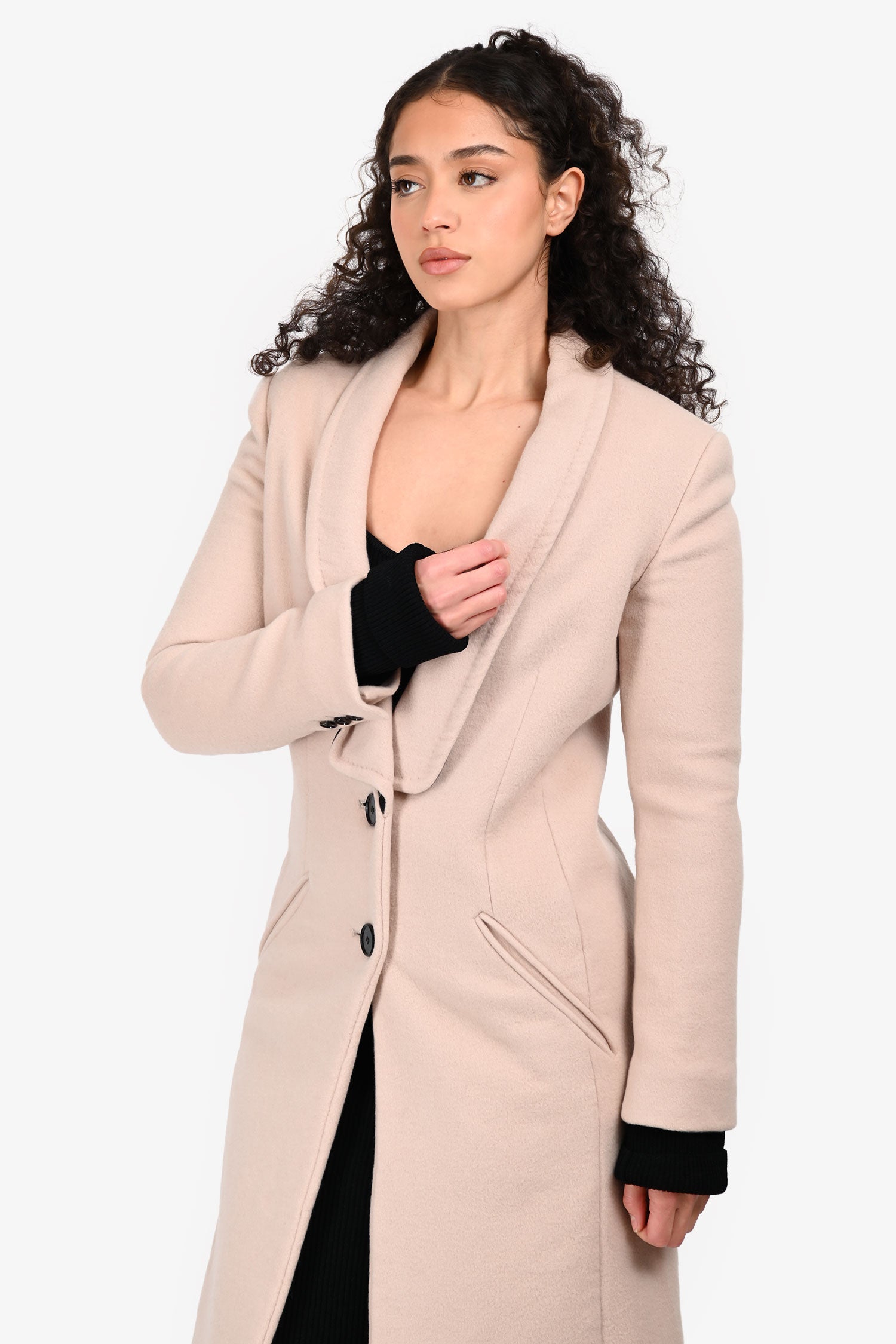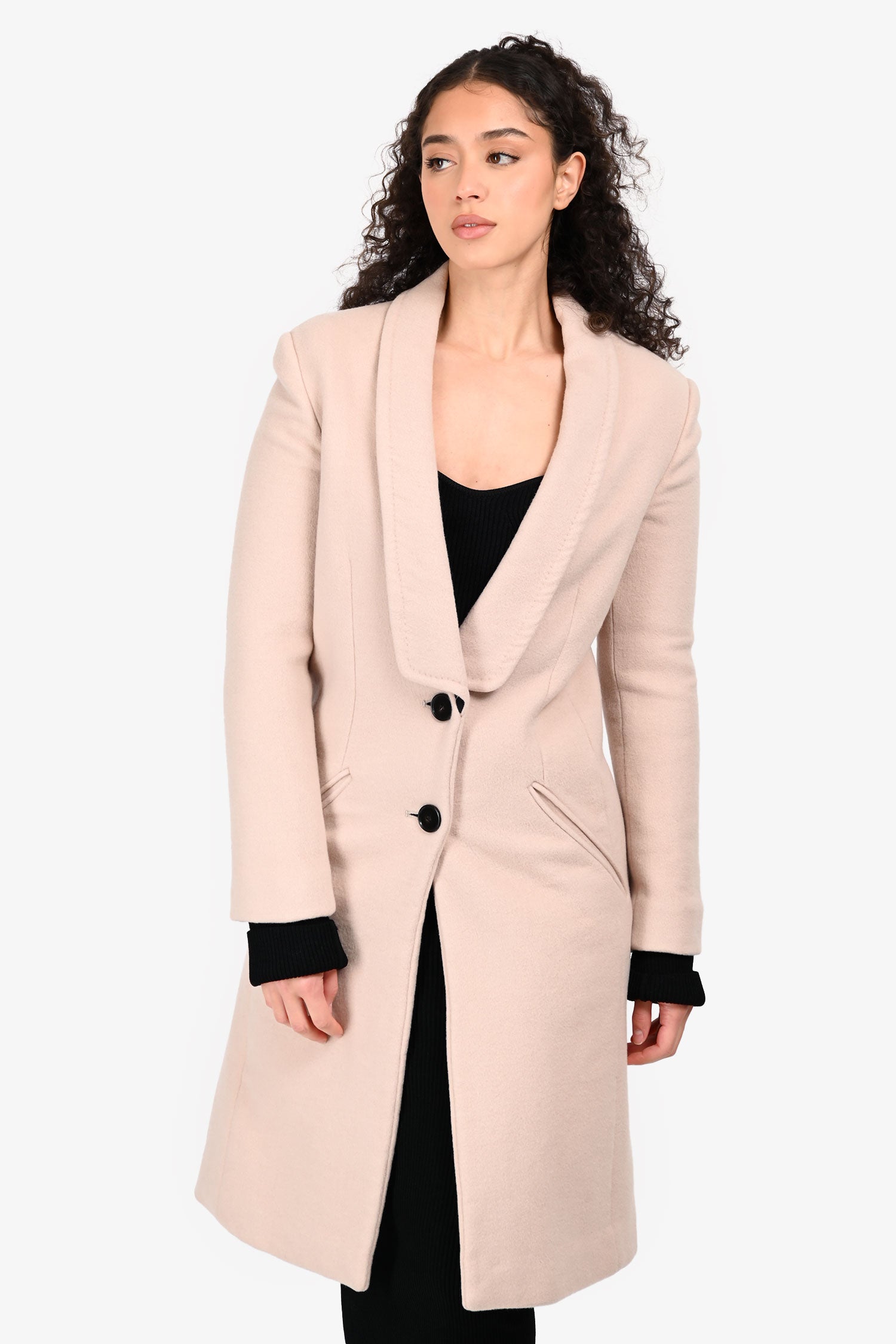 Refresh availabilityEmilio Pucci Blush-Beige Wool/Cashmere Blend Coat. Slip-on. Shawl lapel. Front button-up closure. Cuffs with button-up closure. 2 exterior pockets. Rear vent. Lined interior. Tonal stitching.