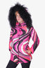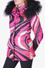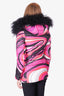 Emilio Pucci Pink/Black Patterned Puffer Jacket with Fur Size 36