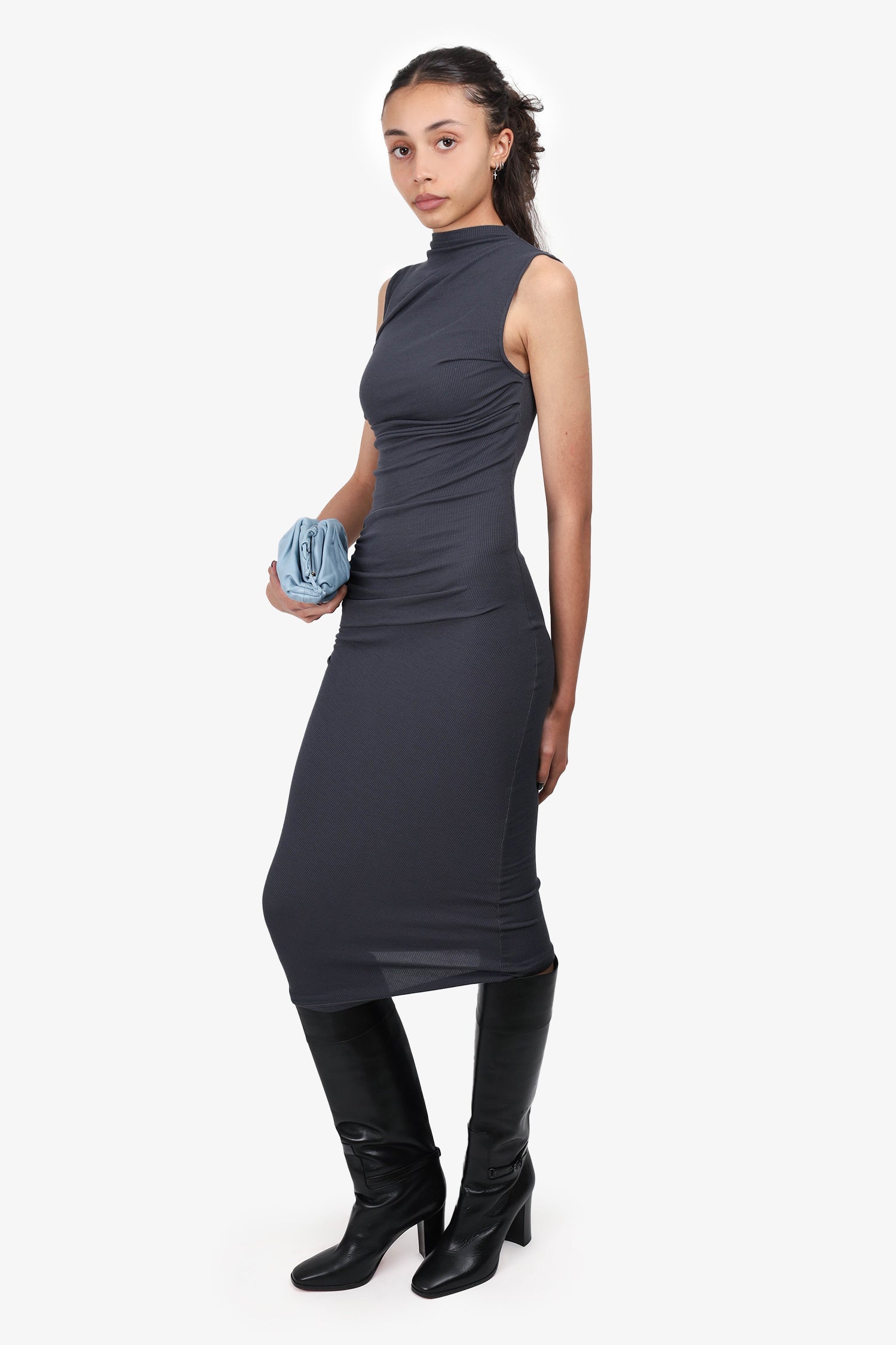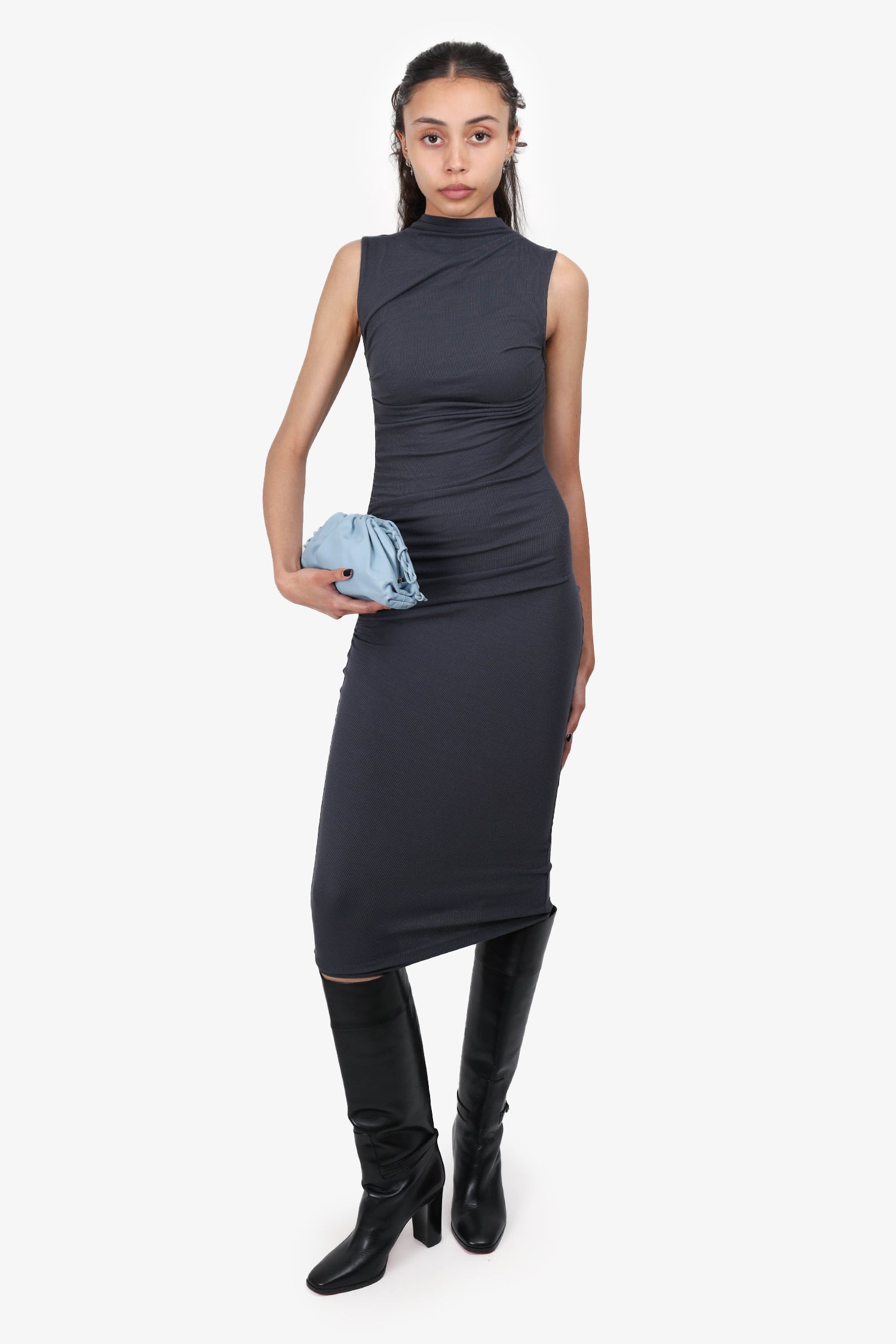 Refresh availabilityEnza Costa Grey Ribbed Dress. Sleeve-less. High neckline. Pull-on. Tonal stitching.