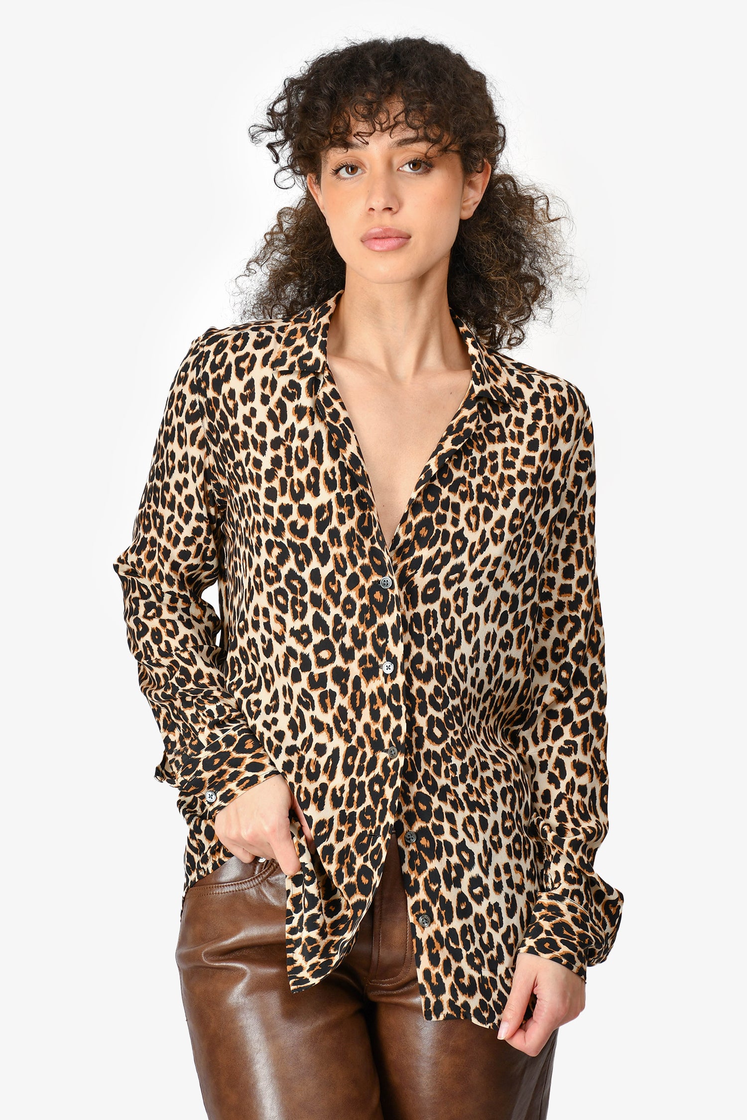 Refresh availabilityEquipment Leopard Print Silk Button Down Shirt. Front button-up closure. Button closure on the cuffs. Unlined. Tonal stitching.