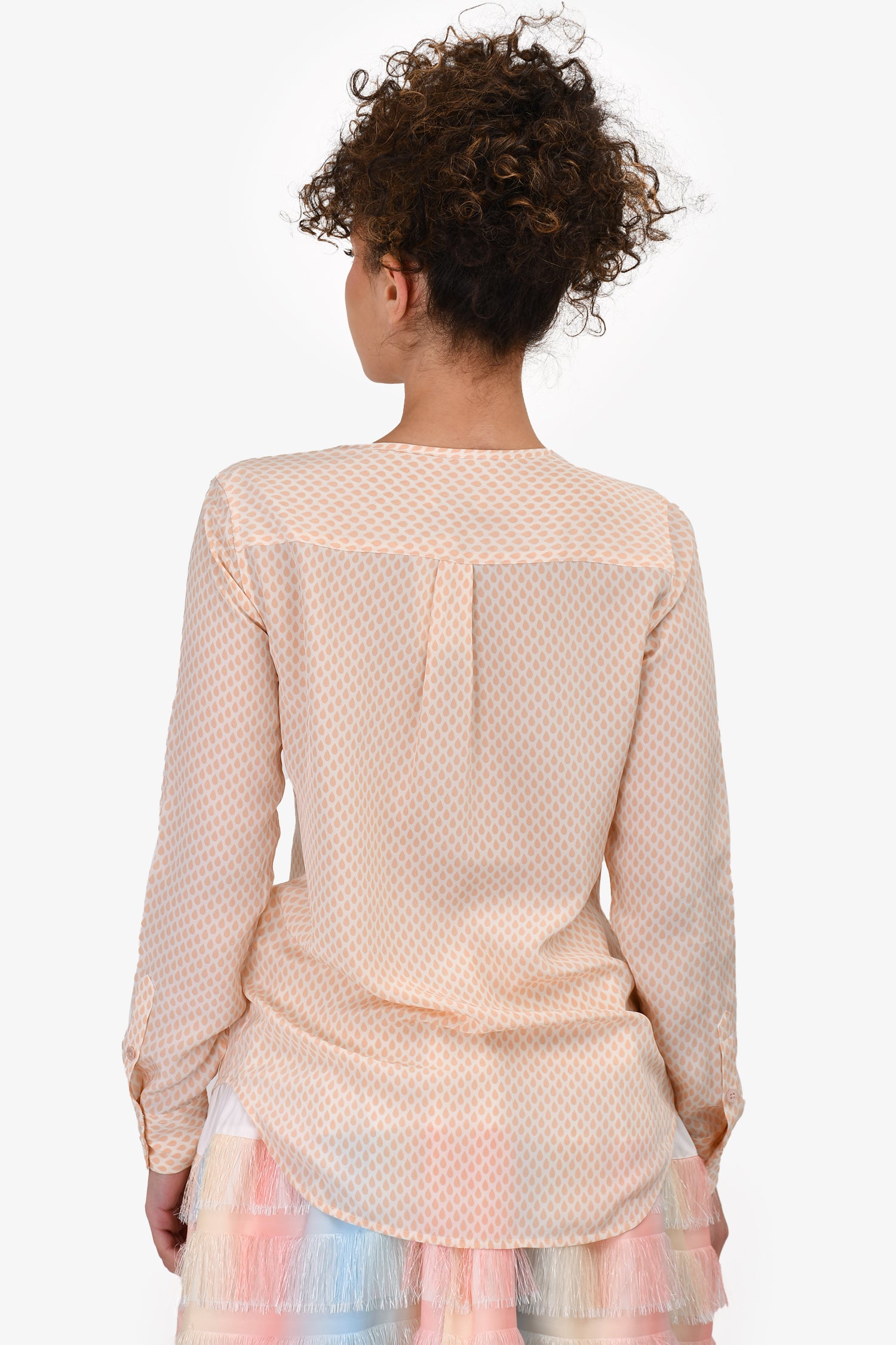 Refresh availabilityEquipment White/Pink Silk Water Drop Printed Blouse. Front button-up closure. Front chest pockets. Button closure on the cuffs.