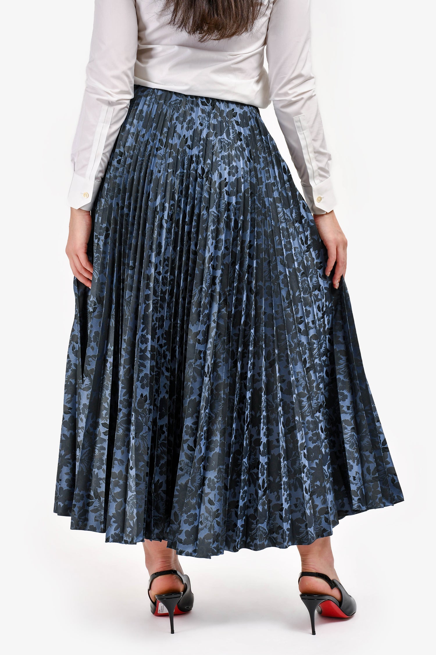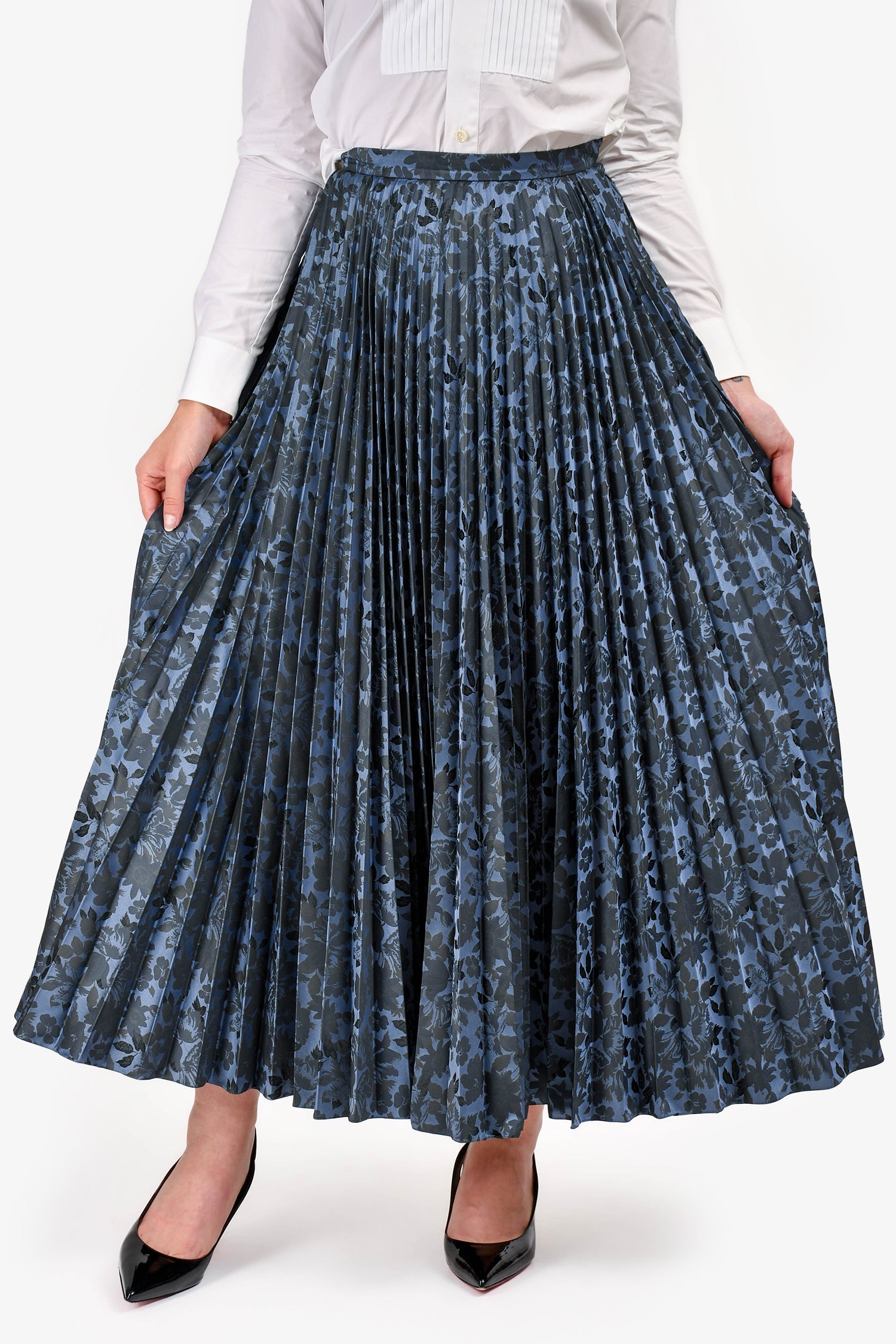 Refresh availabilityErdem Blue/Black Floral Pleated Midi Skirt. Concealed side zip closure. Lightweight fabric. Tonal stitching.