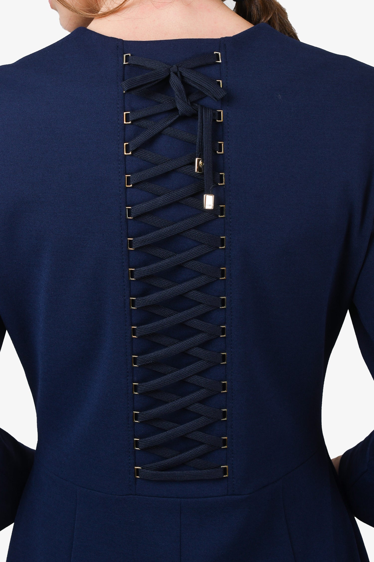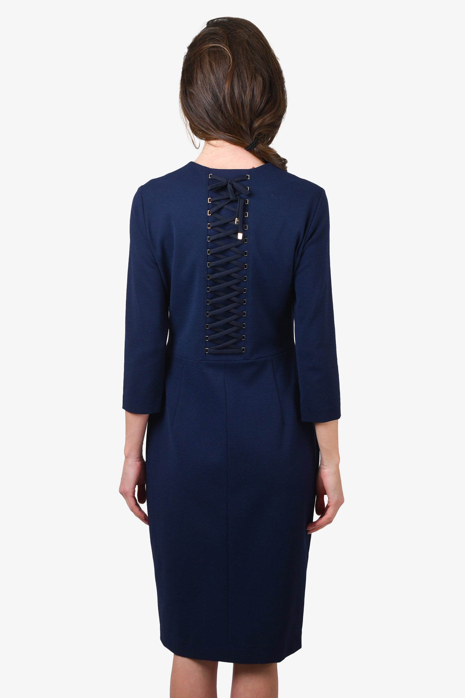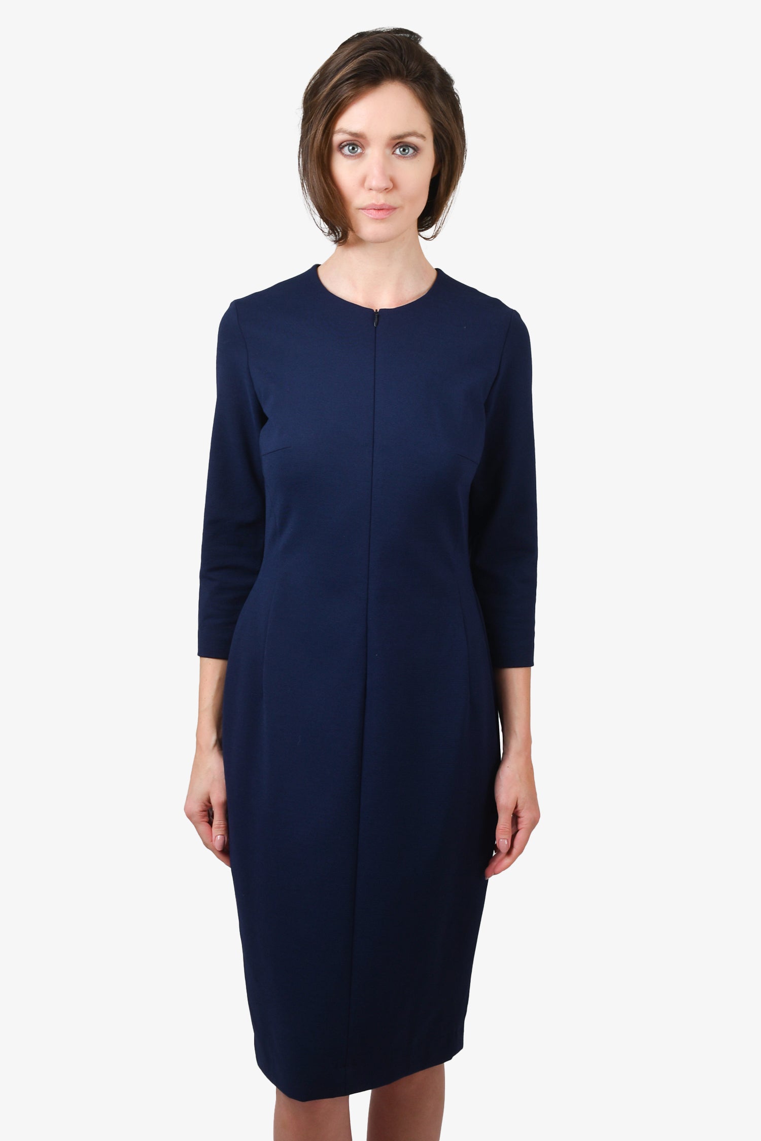 Refresh availabilityEscada Blue Zip-Up Shift Dress. Round neck. Lined. Tonal stitching.