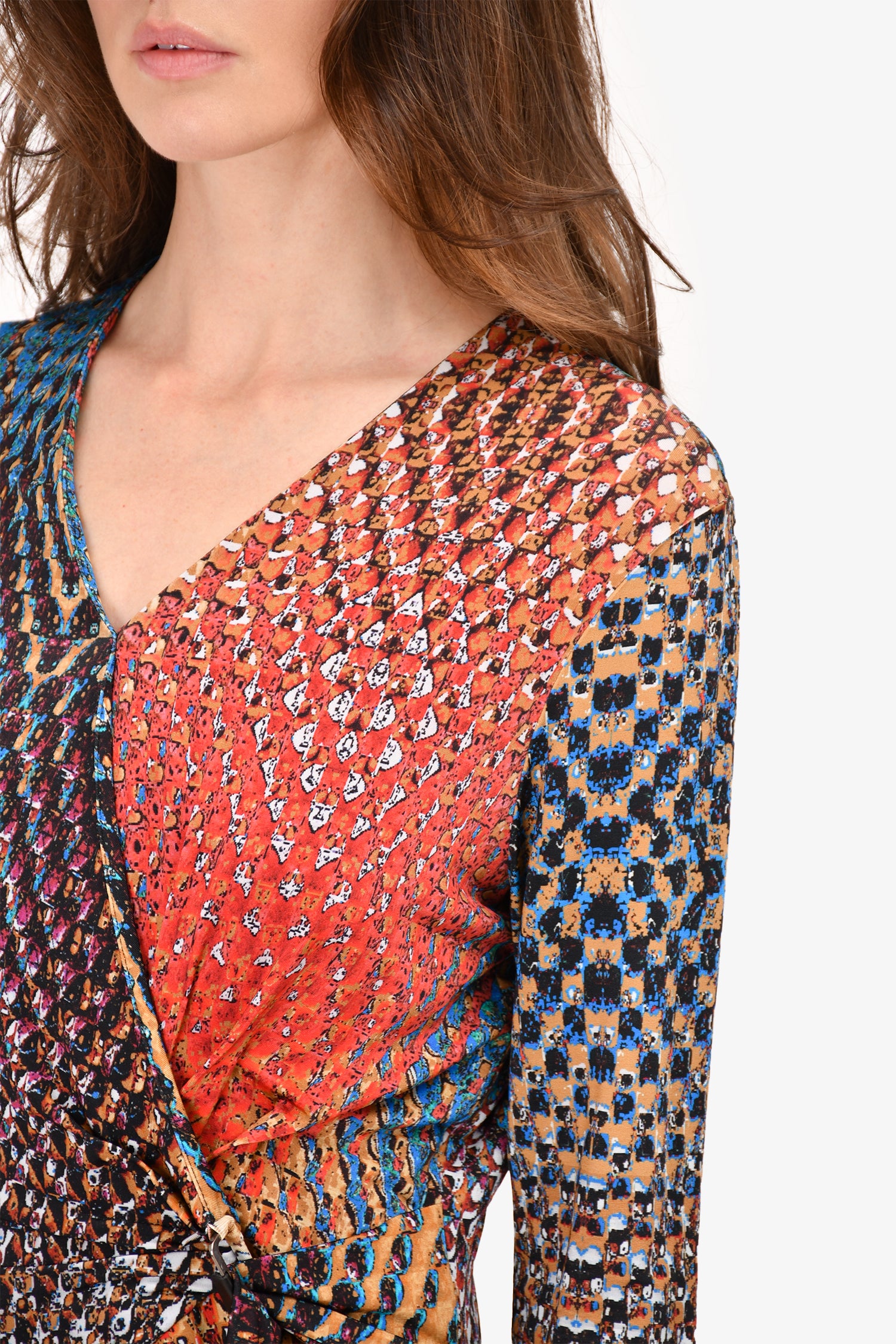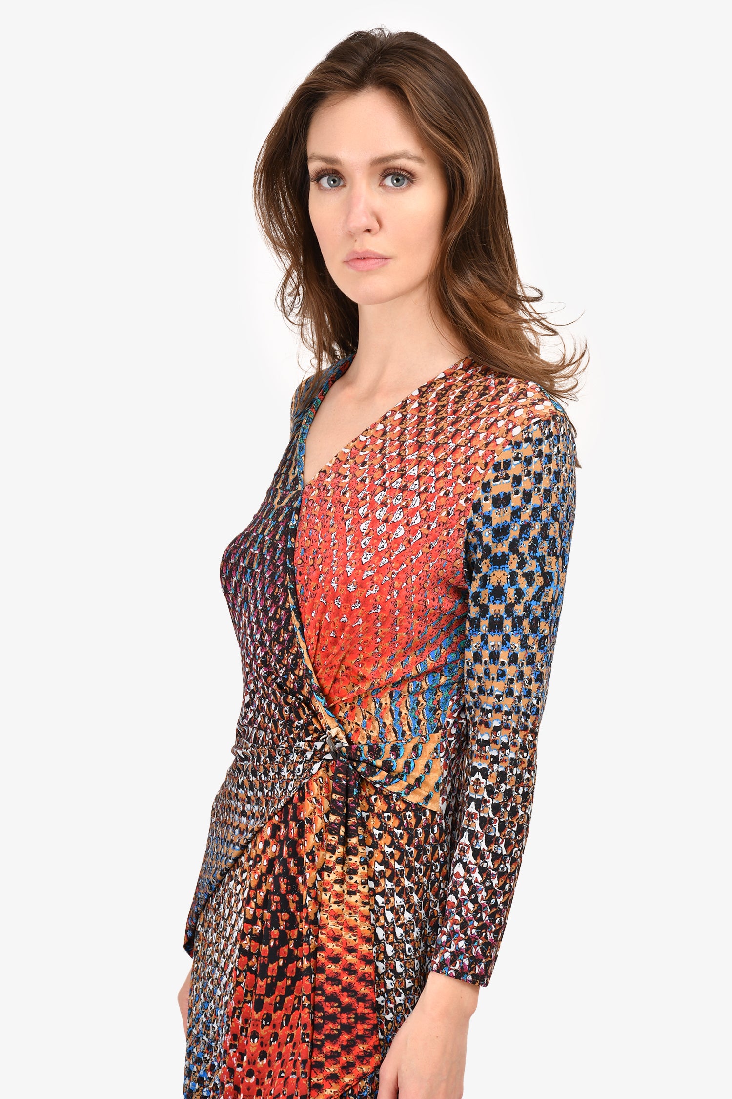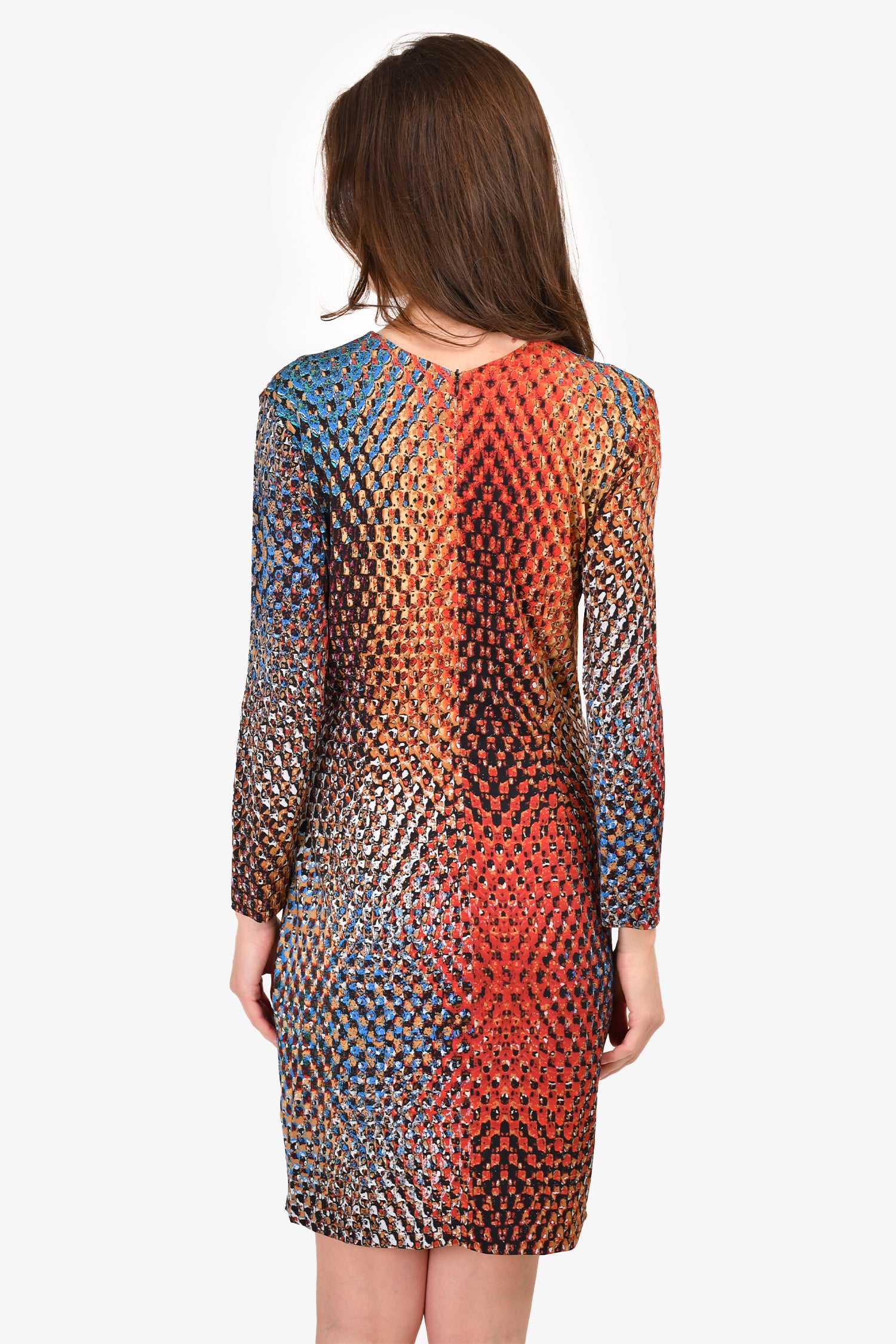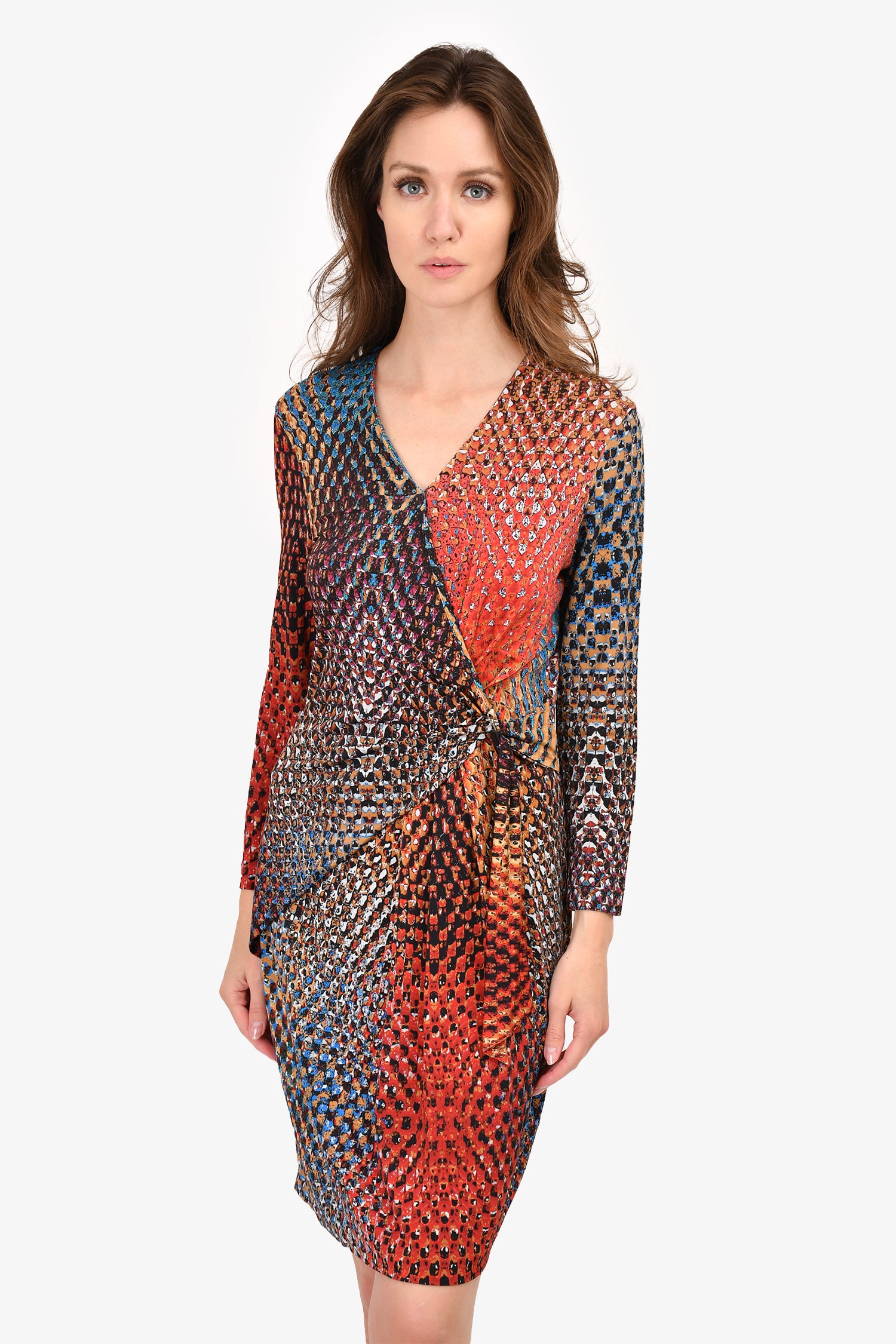 Refresh availabilityEscada Red/Purple Printed Dress. V-neck. Rear zip closure. Unlined.