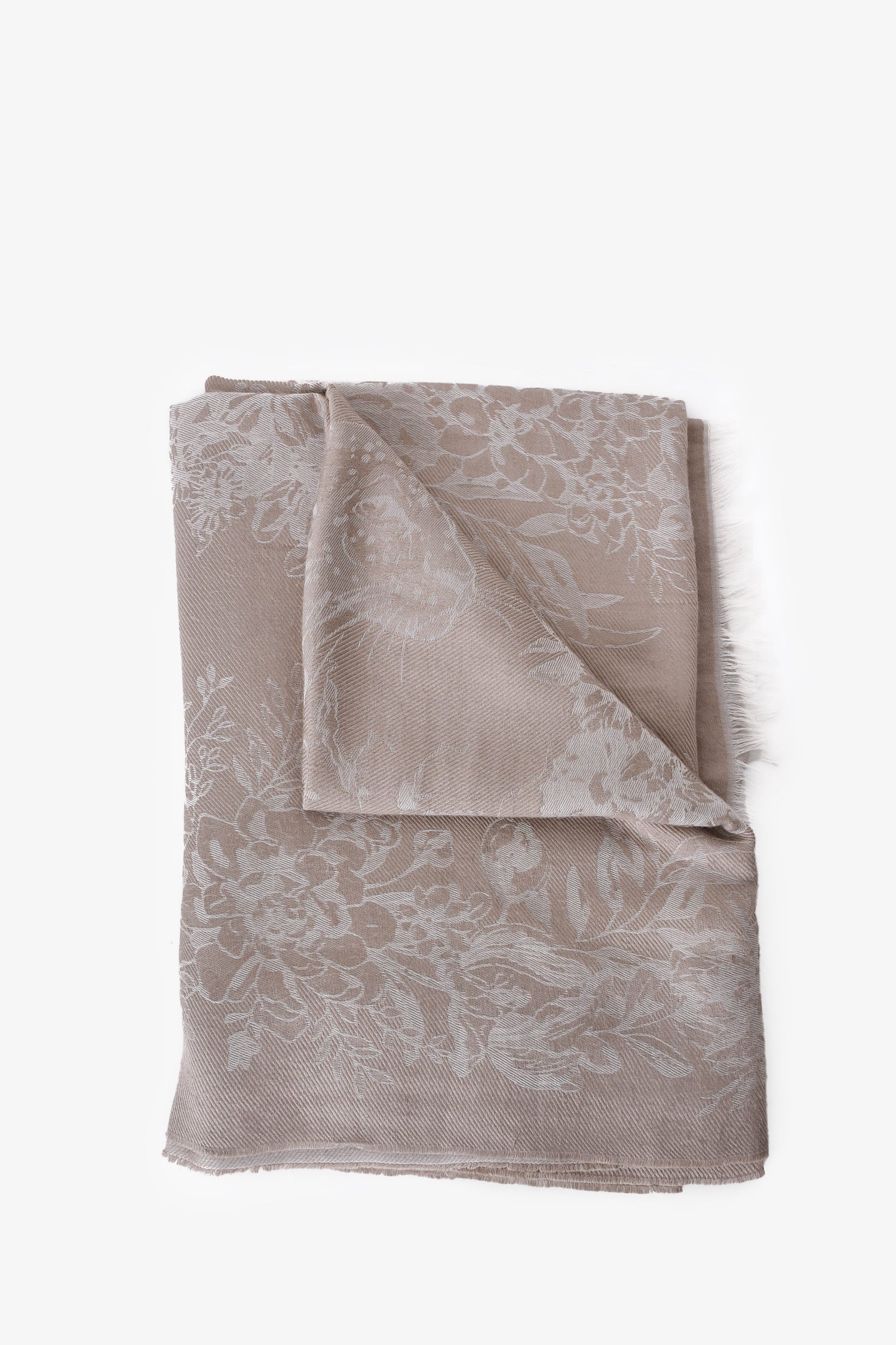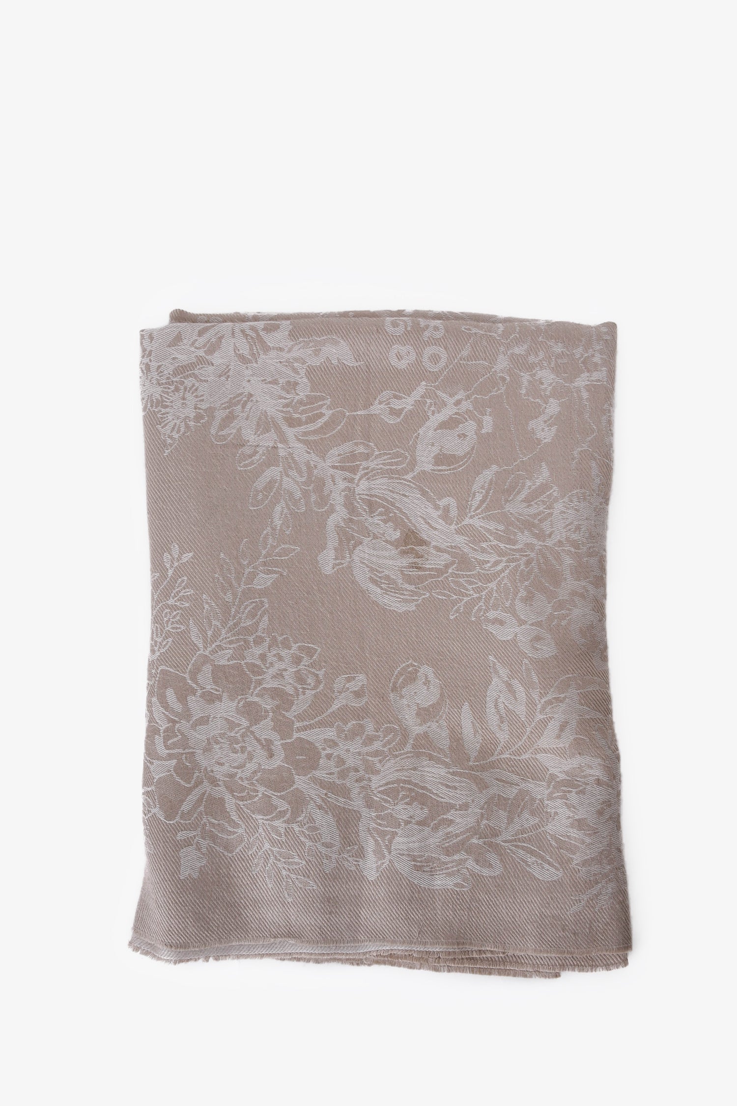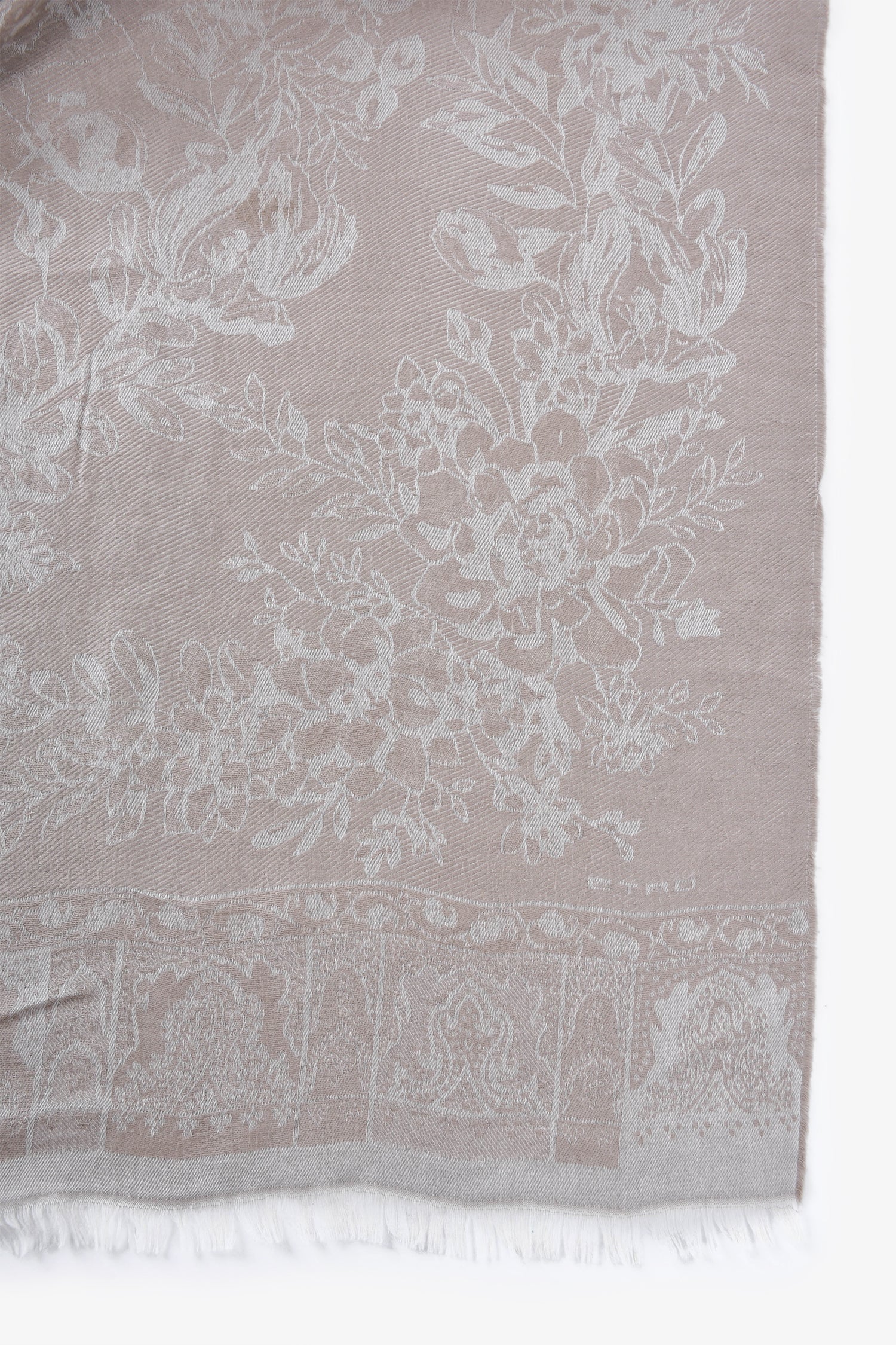 Refresh availabilityEtro Beige Floral Printed Raw Hem Scarf. Tonal stitching.
