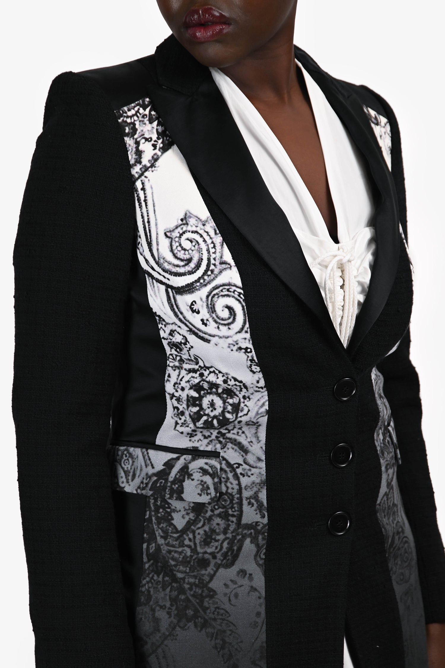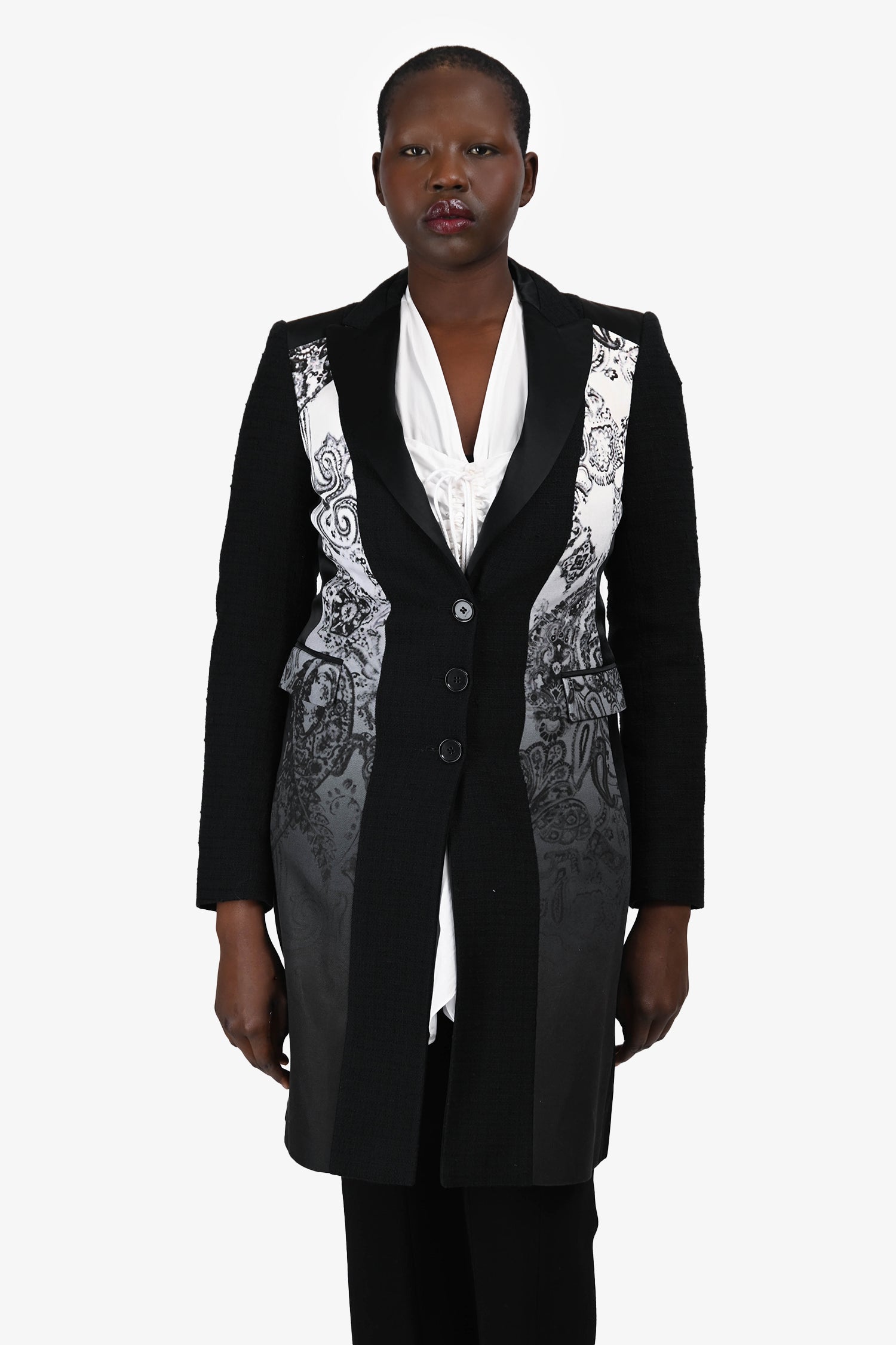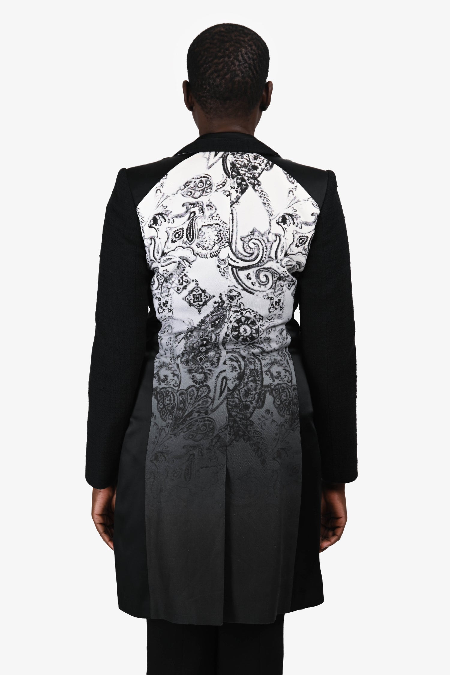 Etro Black Graphic Print Shoulder Padded Blazer Coat Size 42 IT