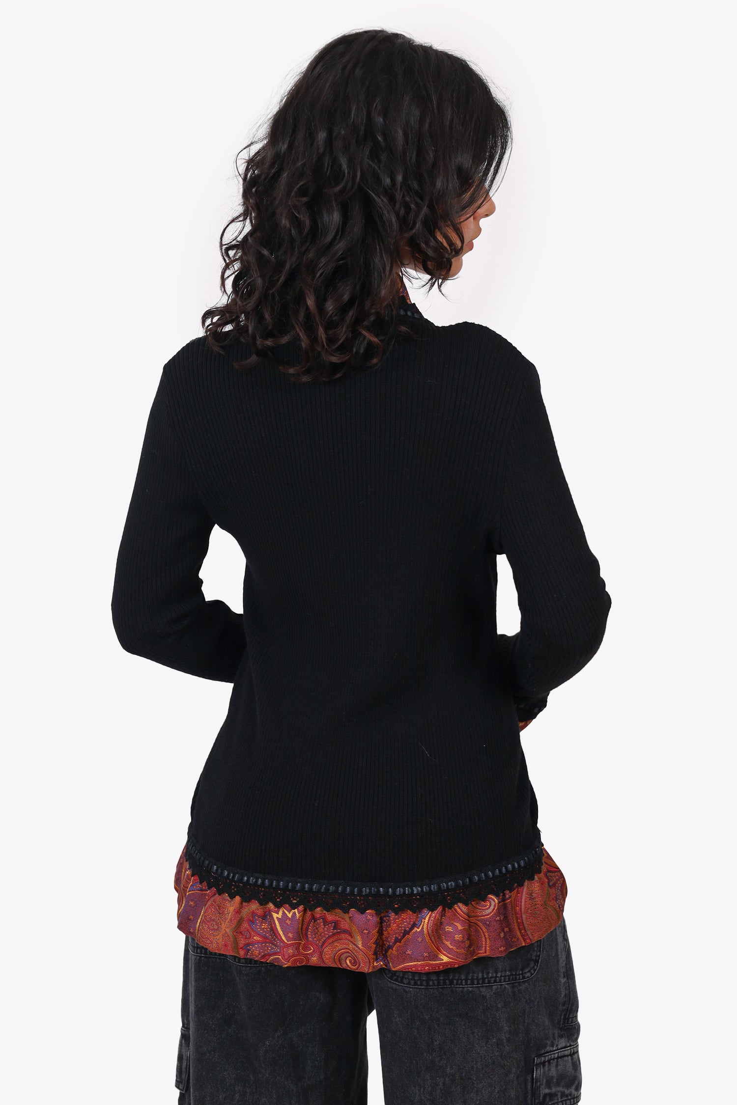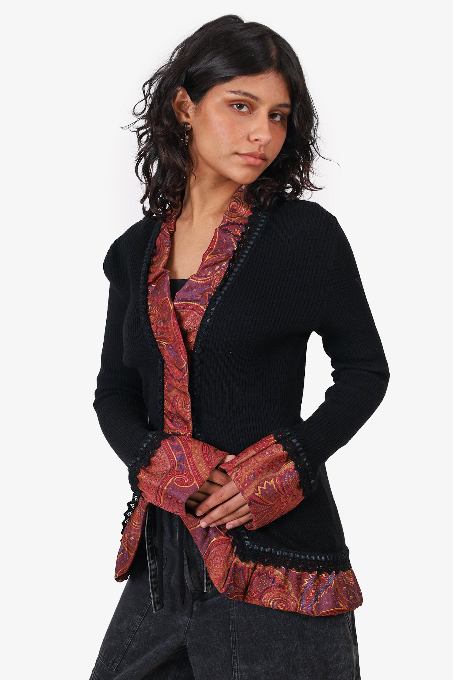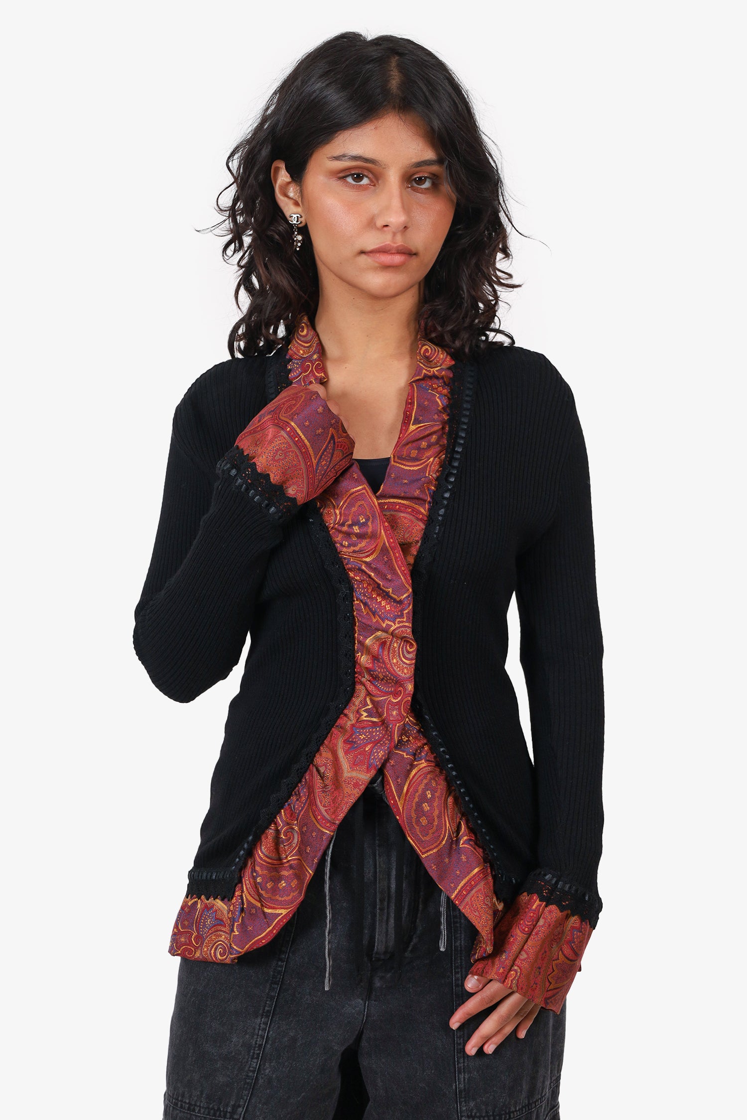 Etro Black/Red Paisley Trim Long Sleeve Cardigan Size 42