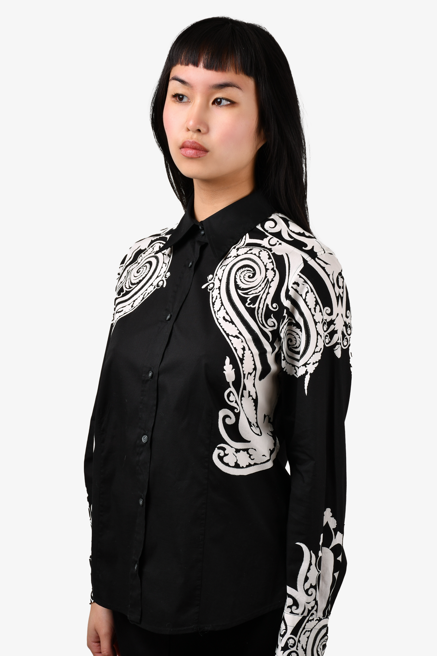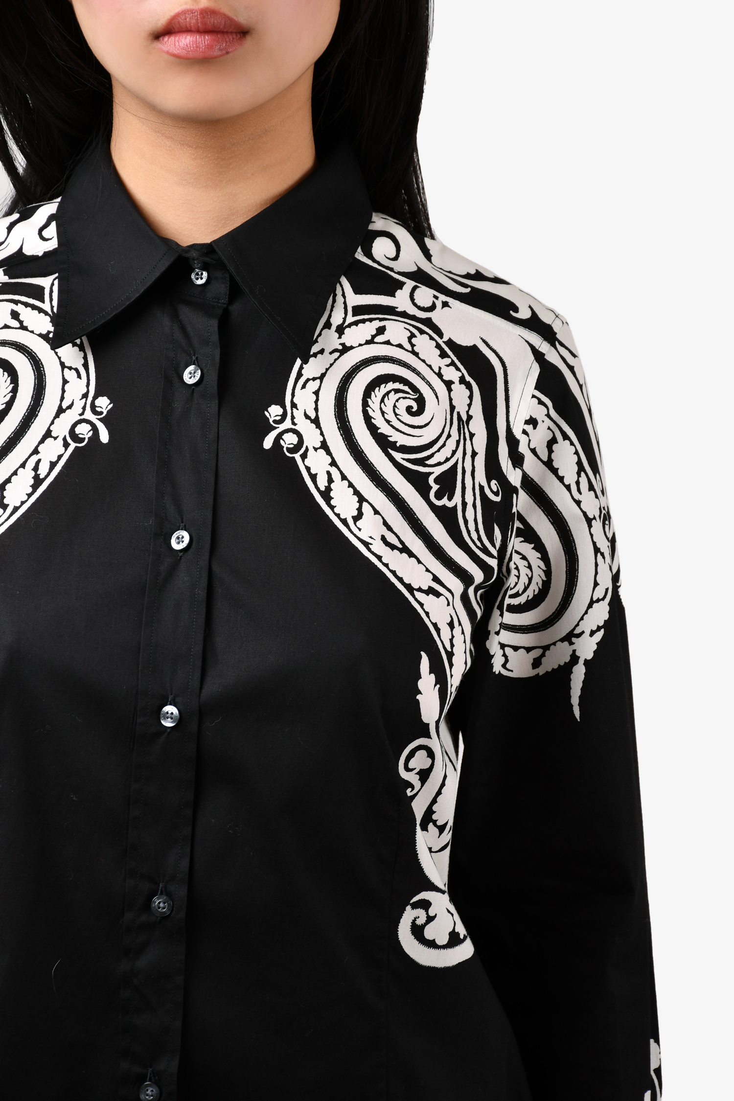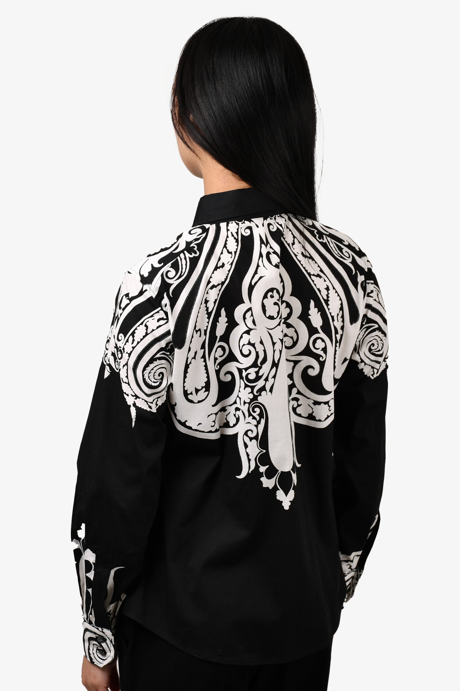 Refresh availabilityEtro Black/White Patterned Collared Top. Front button-up closure. Button closures on the cuffs. Tonal stitching.