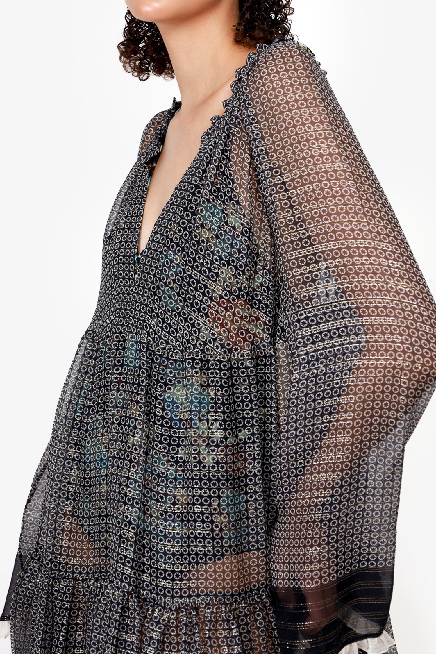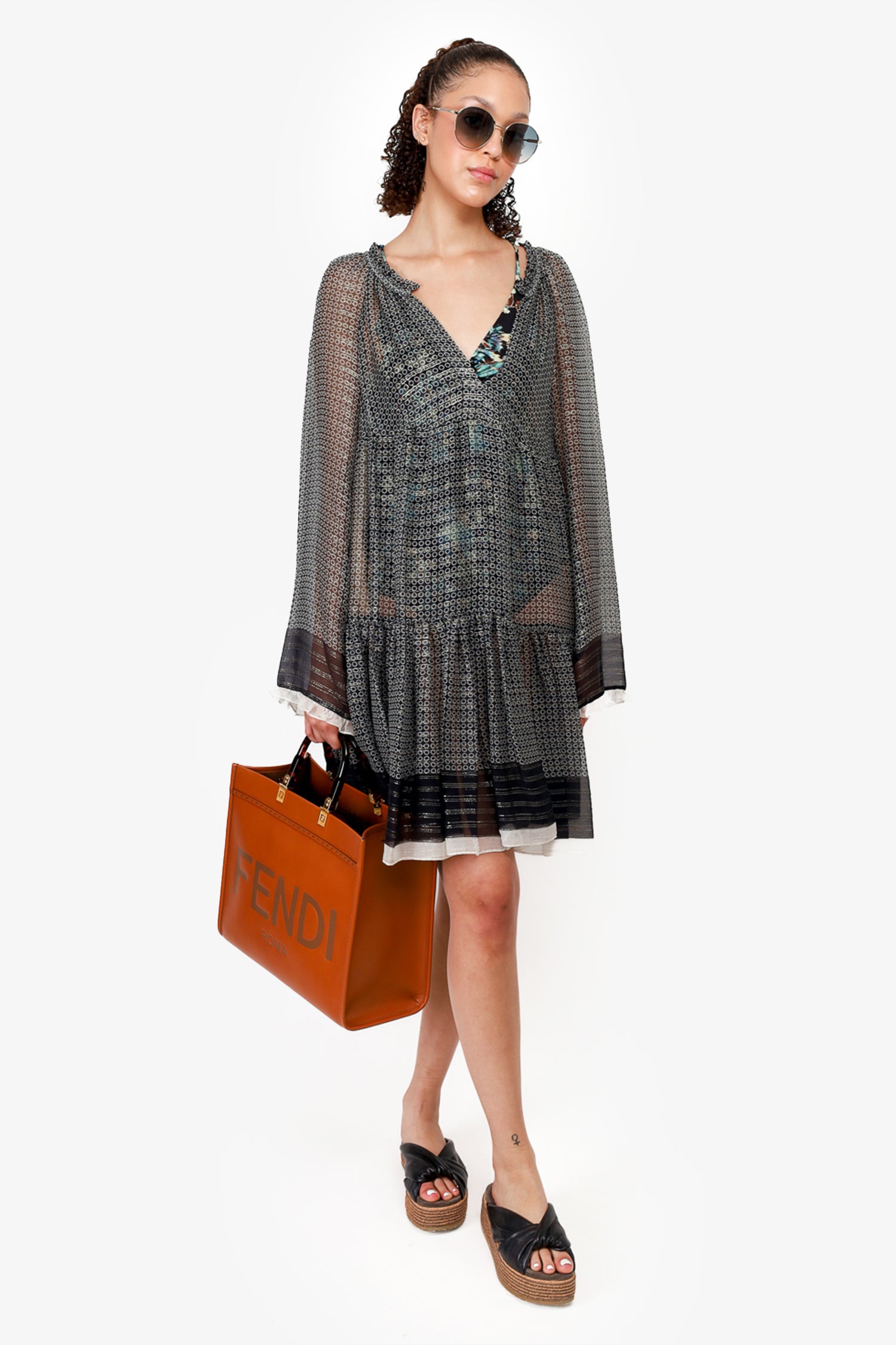Stella McCartney Black/White Silk Pattern Cover Up With Metallic Thread Size 42