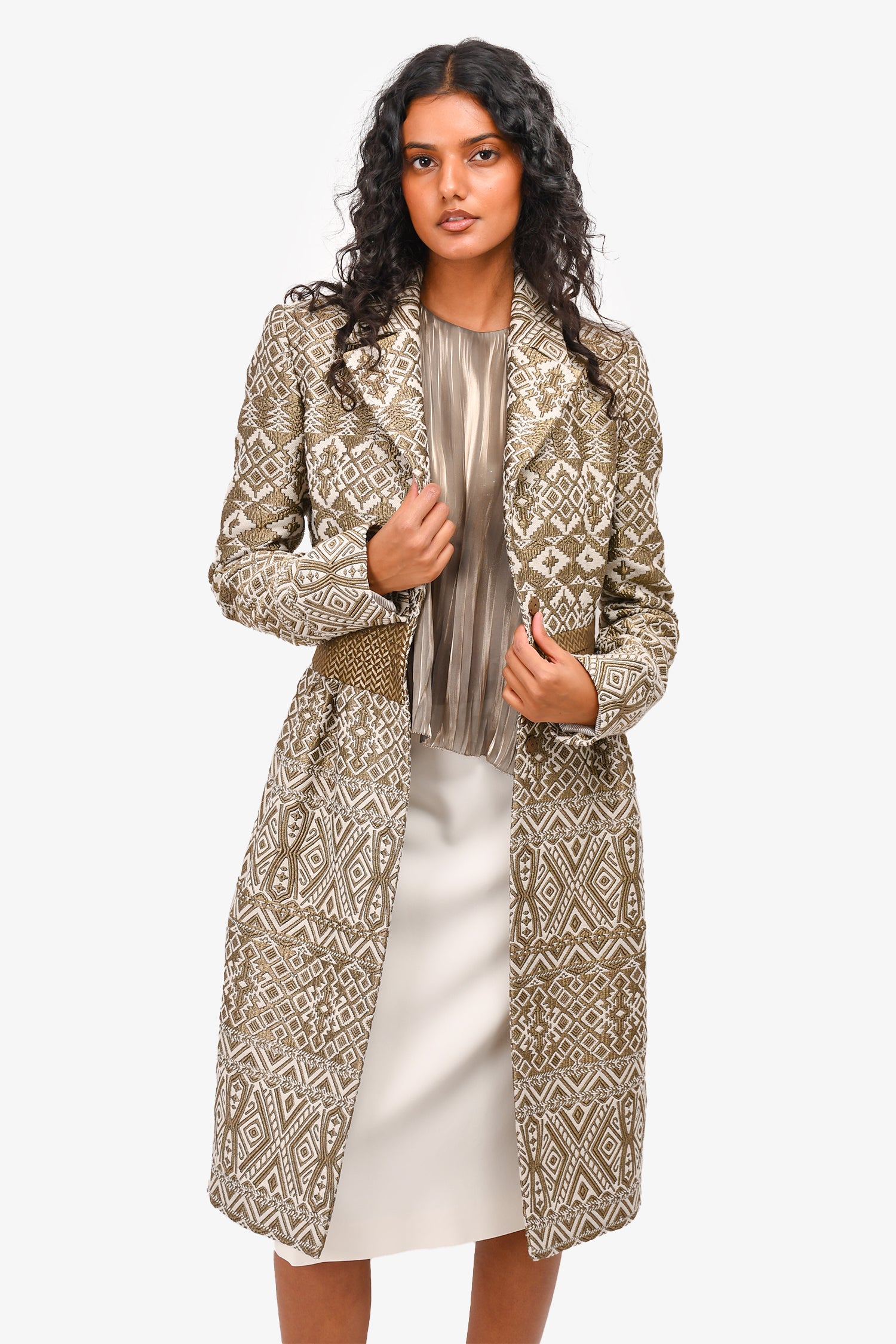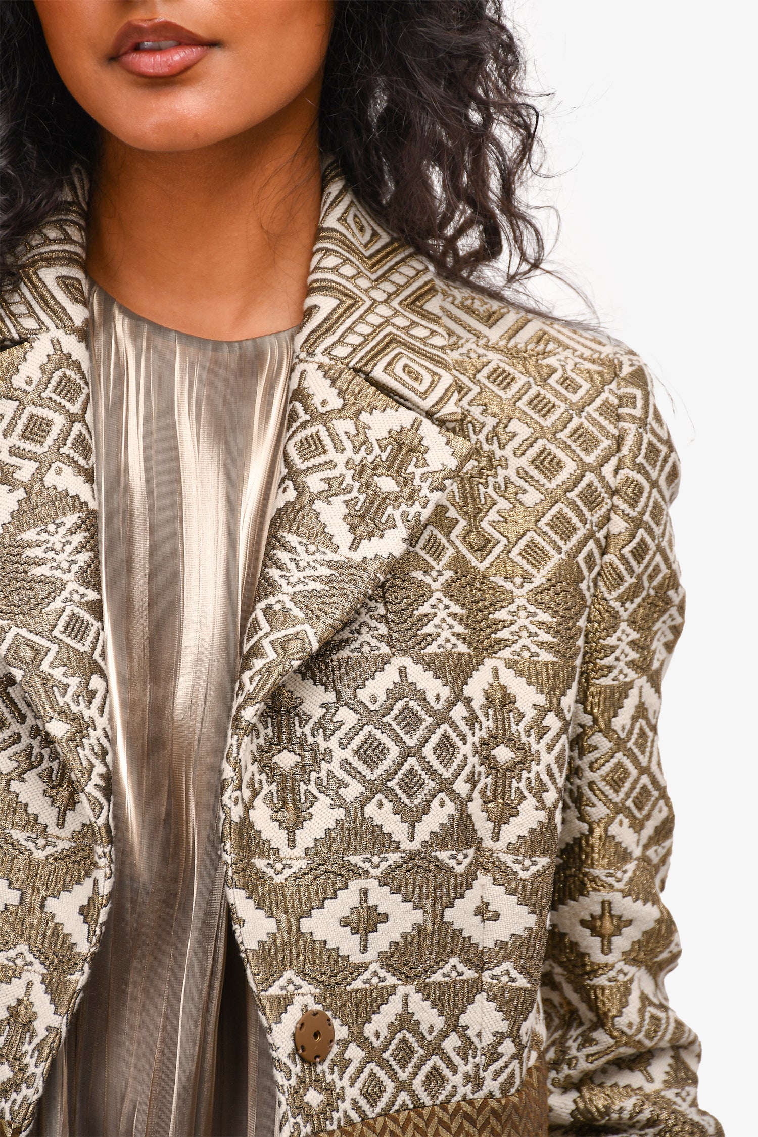 Refresh availabilityEtro Gold/White Metallic Jacquard Collard Jacket.