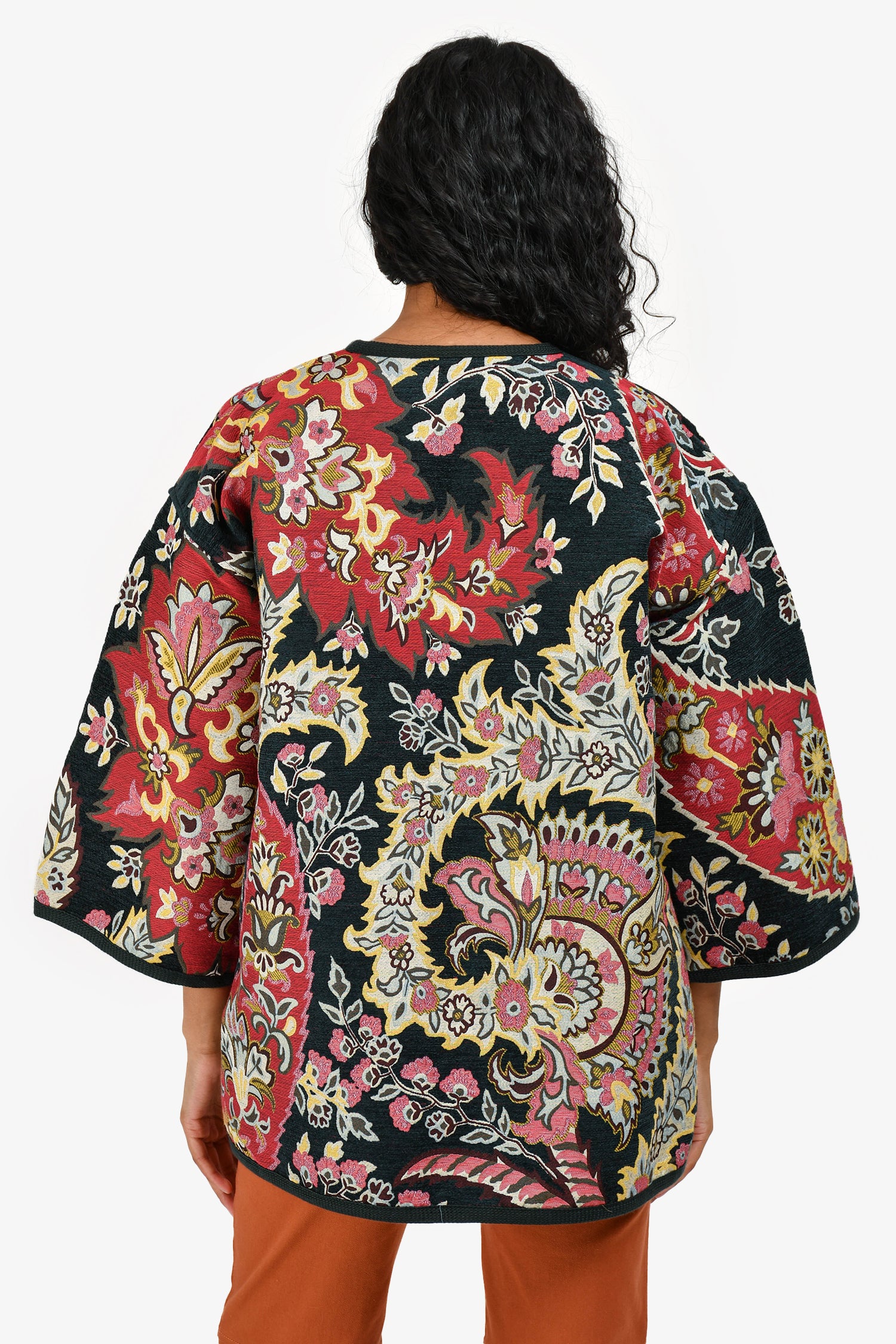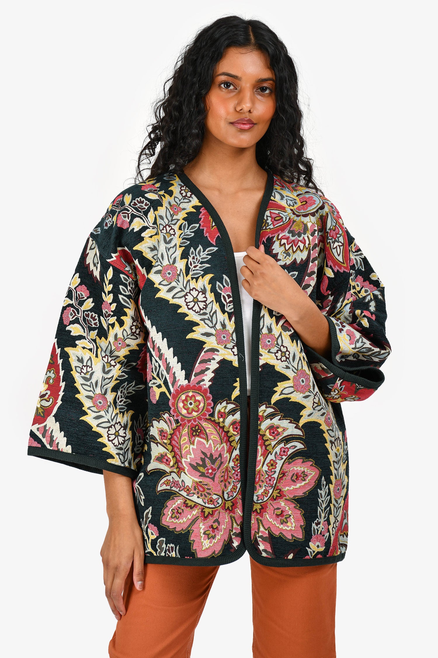 Refresh availabilityEtro Green/ Multicolour Cotton Jacquard Open Jacket OS. Open front design. Long sleeves. Relaxed silhouette. Tonal stitching.