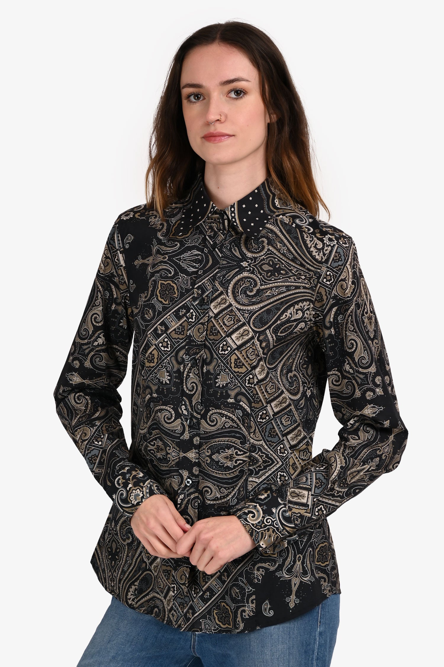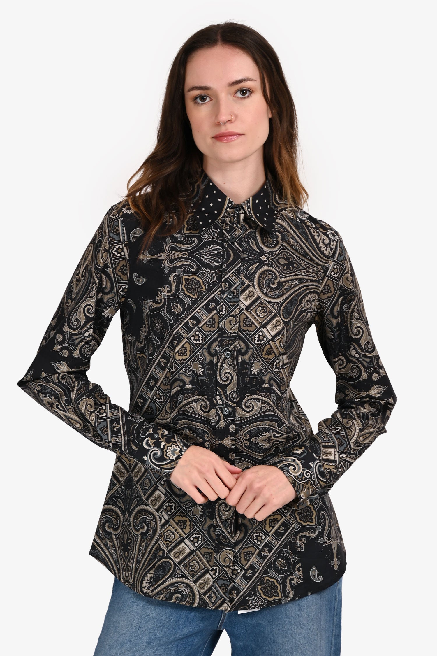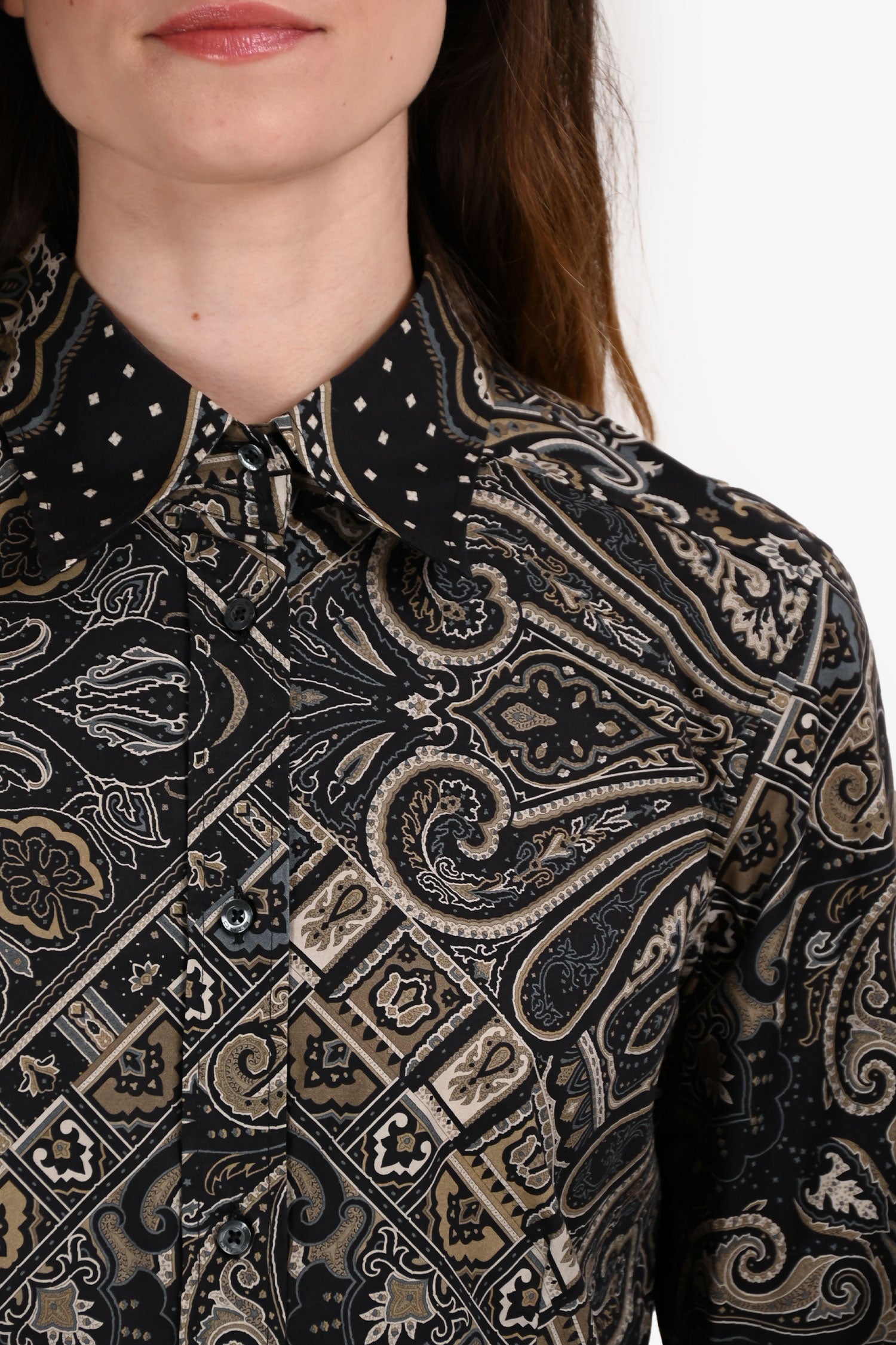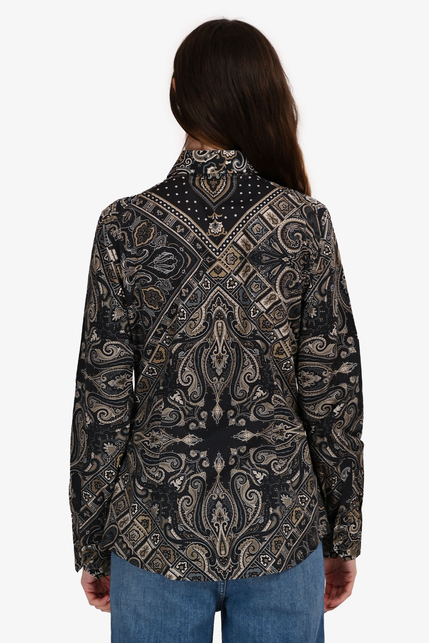 Refresh availabilityEtro Grey/Green Printed Button-Down Shirt. Pull-on. Collared neckline. Front button-up closure. Cuffs with button-up detail. Tonal stitching.