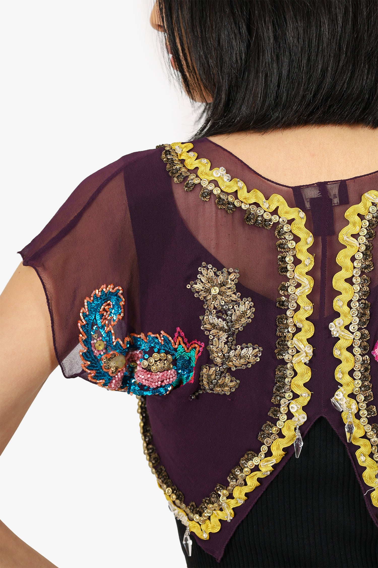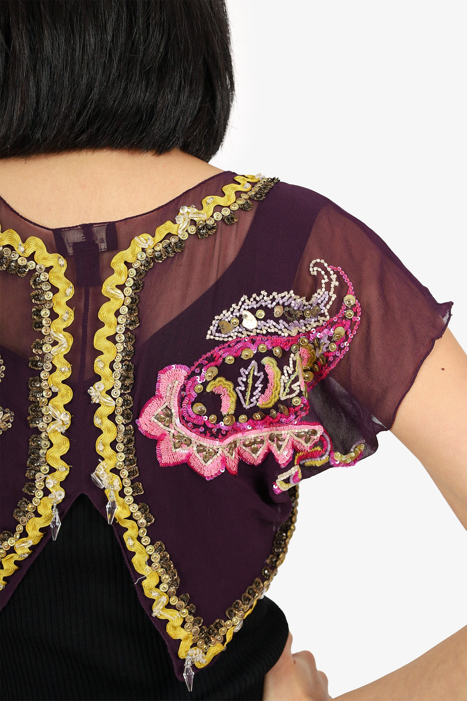 Refresh availabilityEtro Milano Purple Embroidered Silk Shawl. Pull-on. Semi-sheer body. Embellishments throughout. Tonal stitching.