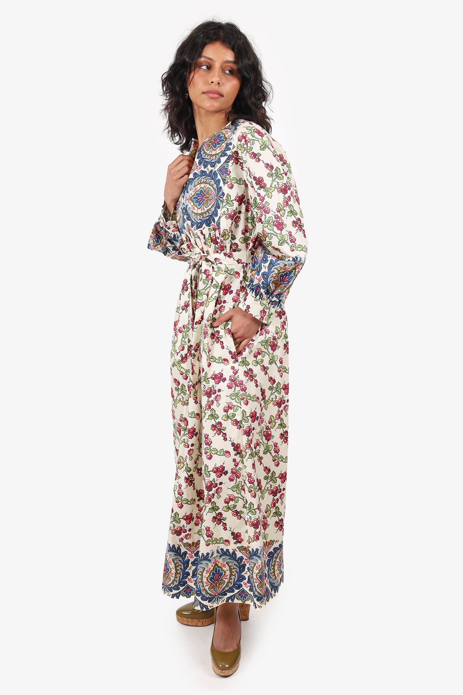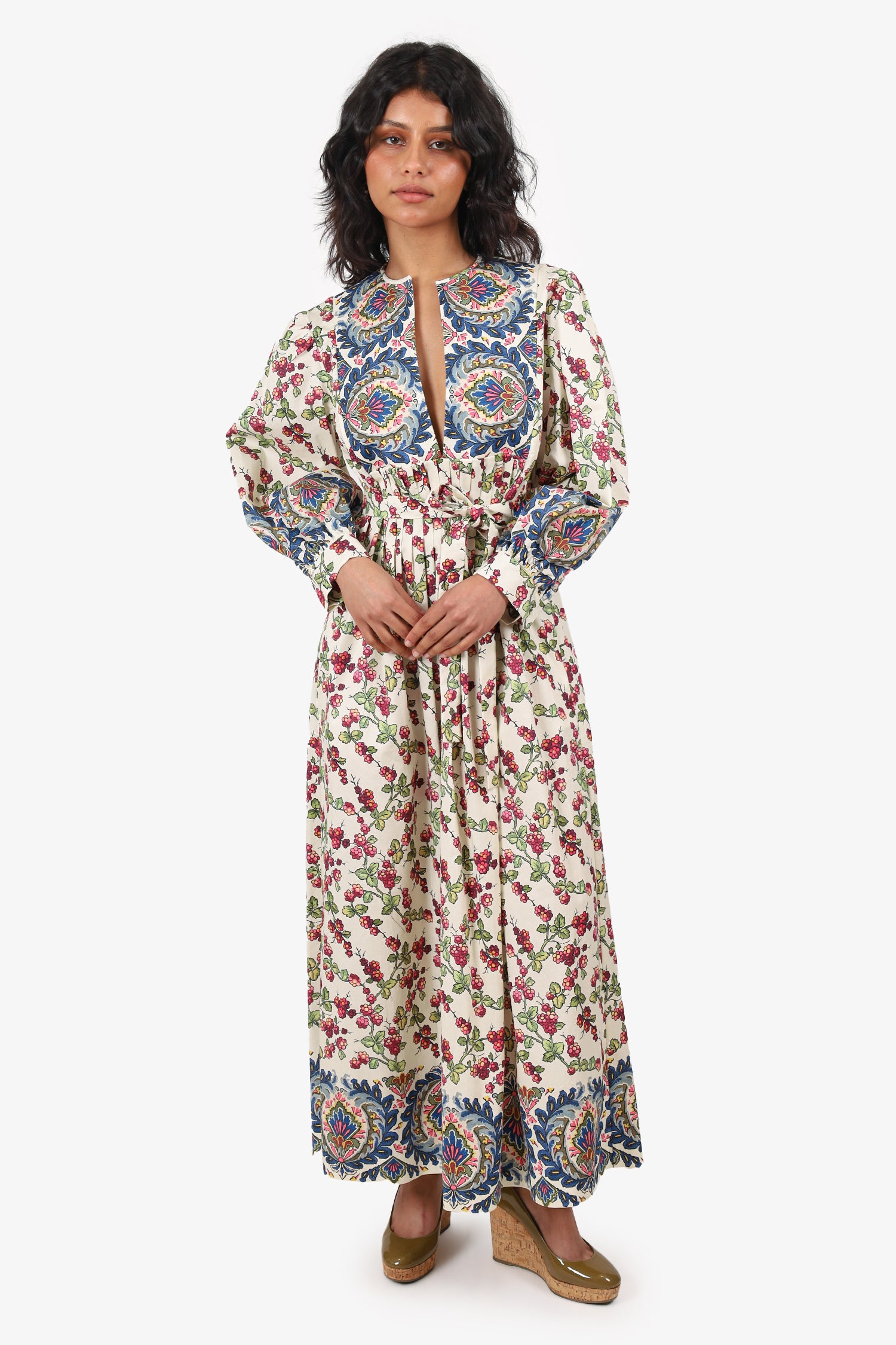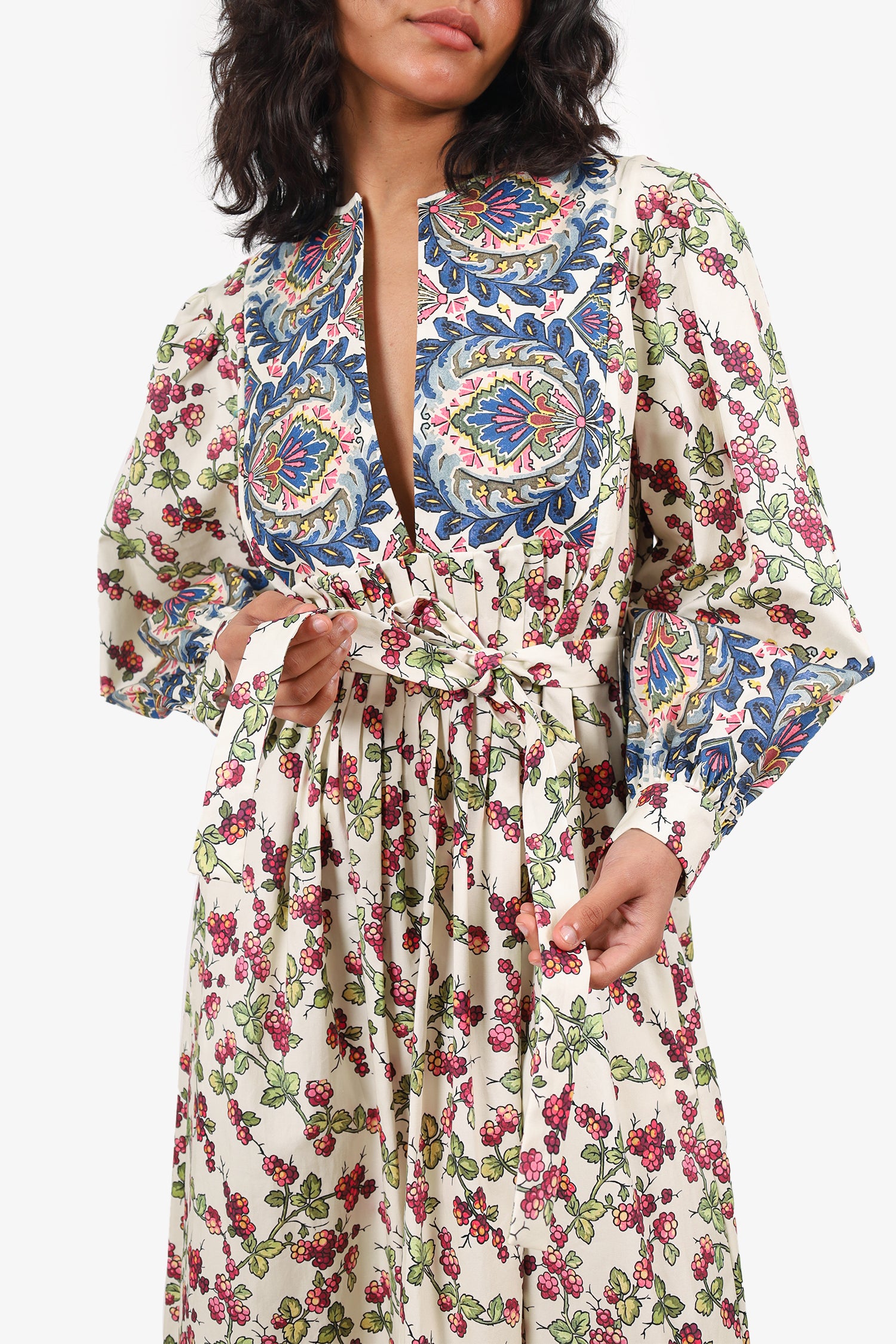 Etro Multicolour Garden Party Pleated Poplin Midi Dress Size 44